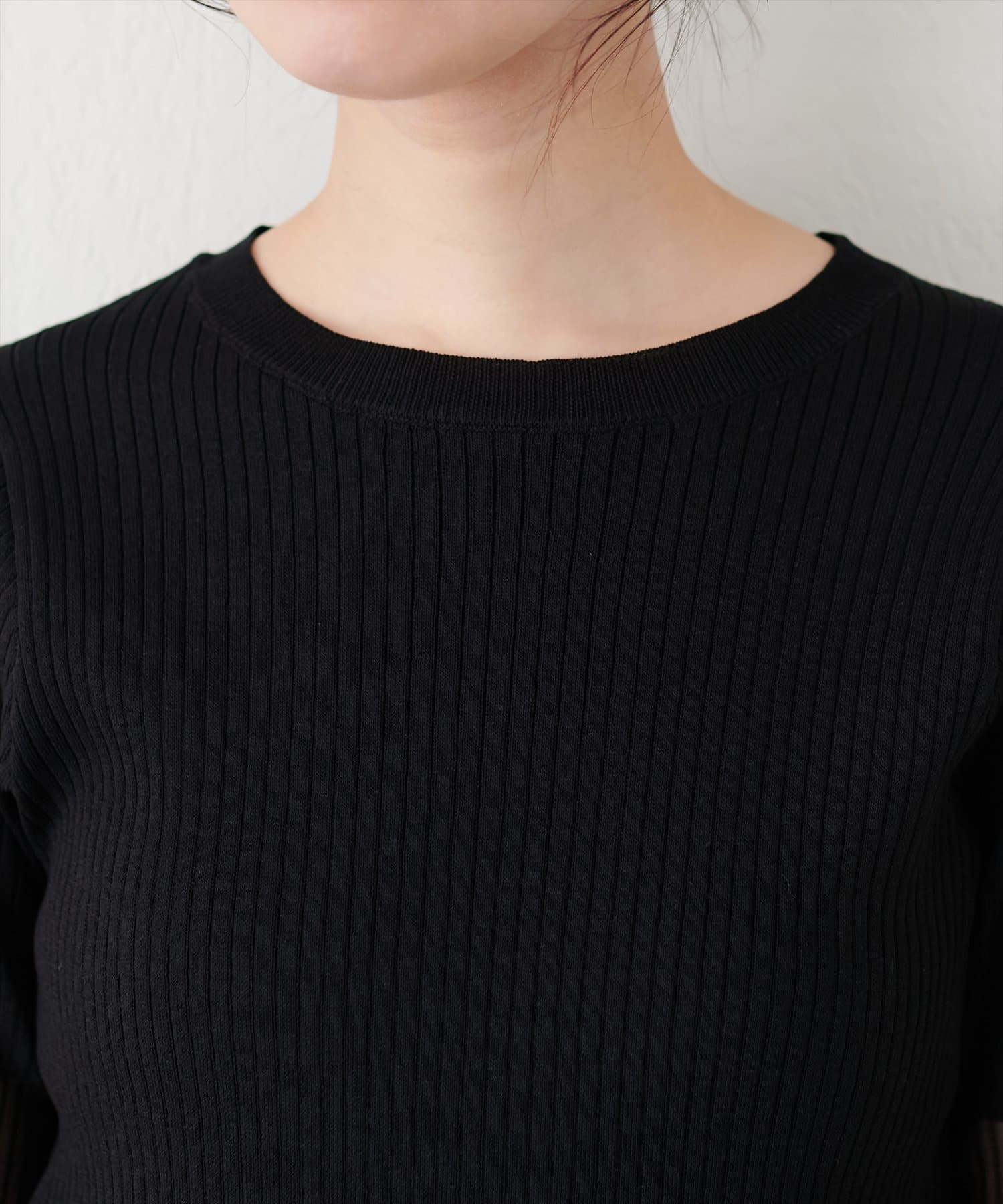 柔らかなリブ使いの、さらっとしたニット地を採用。