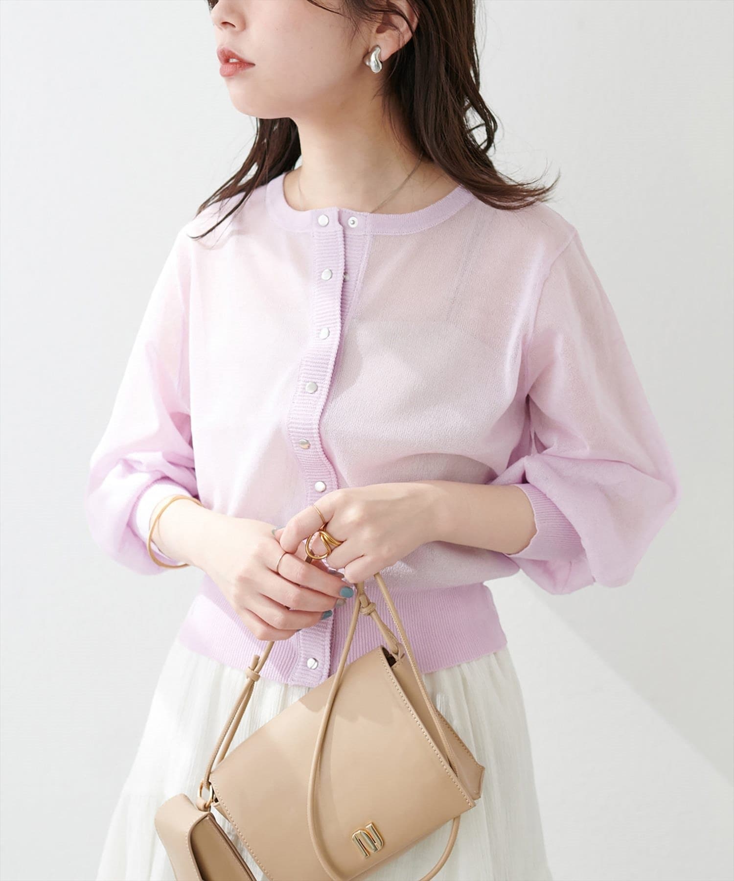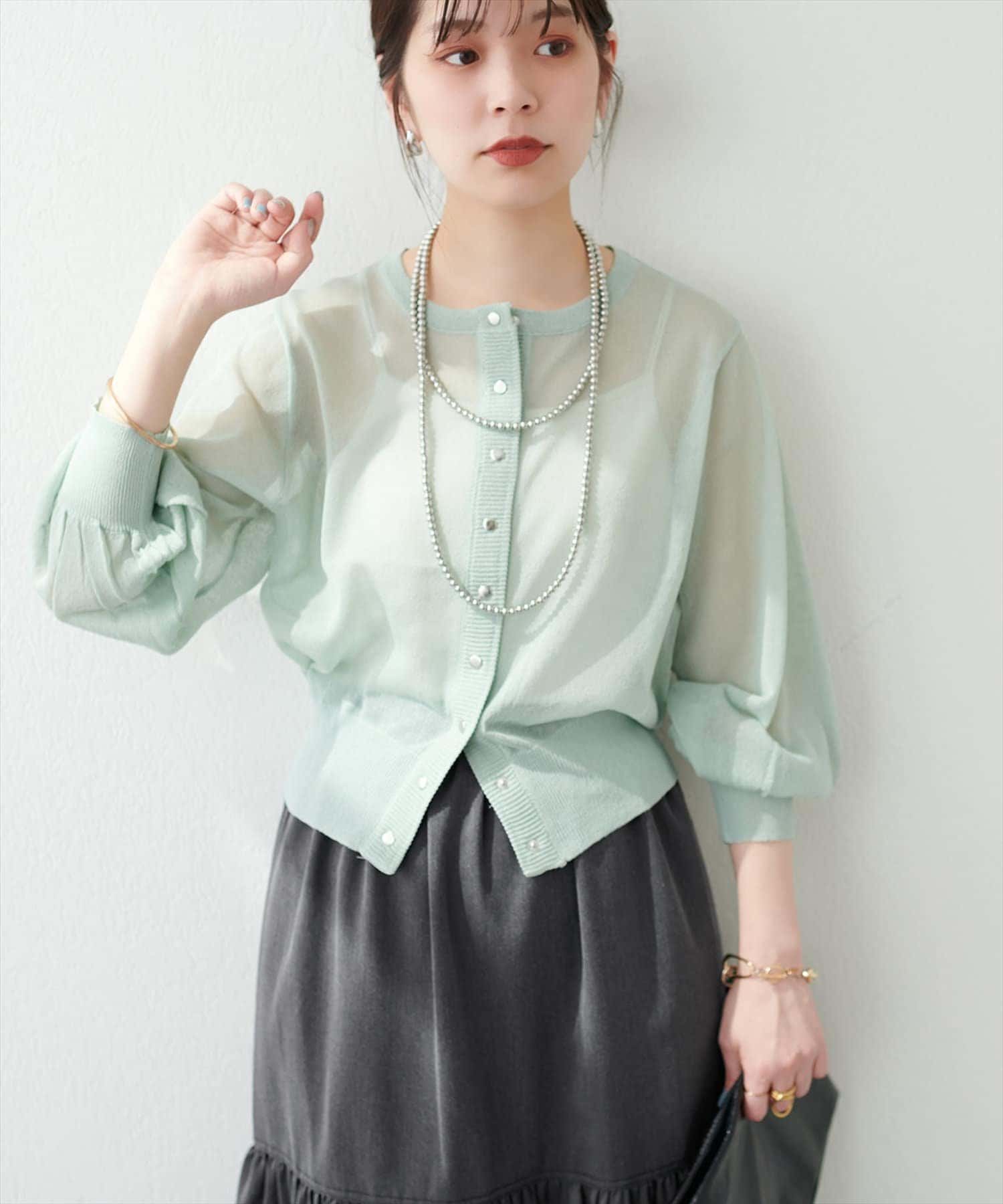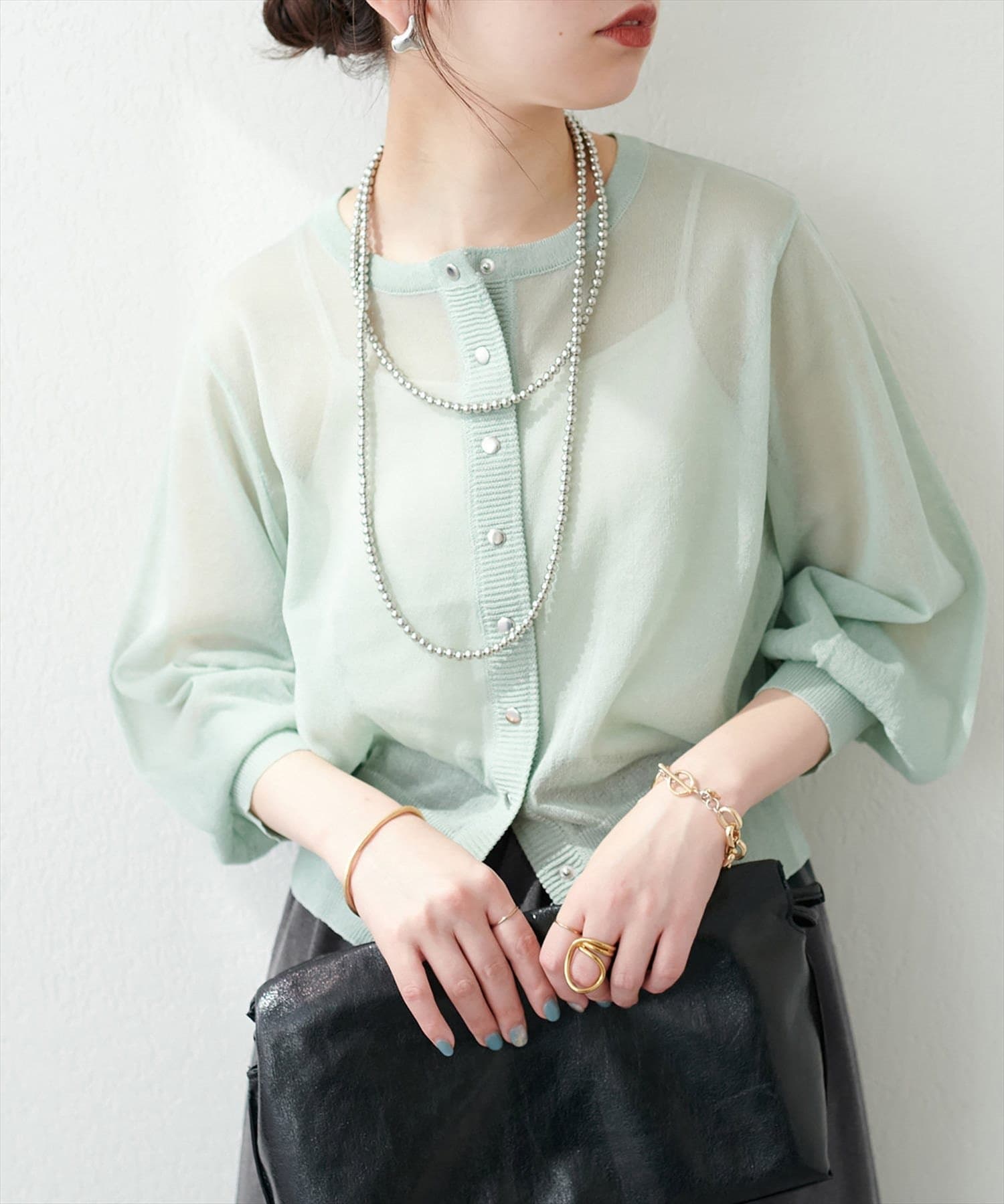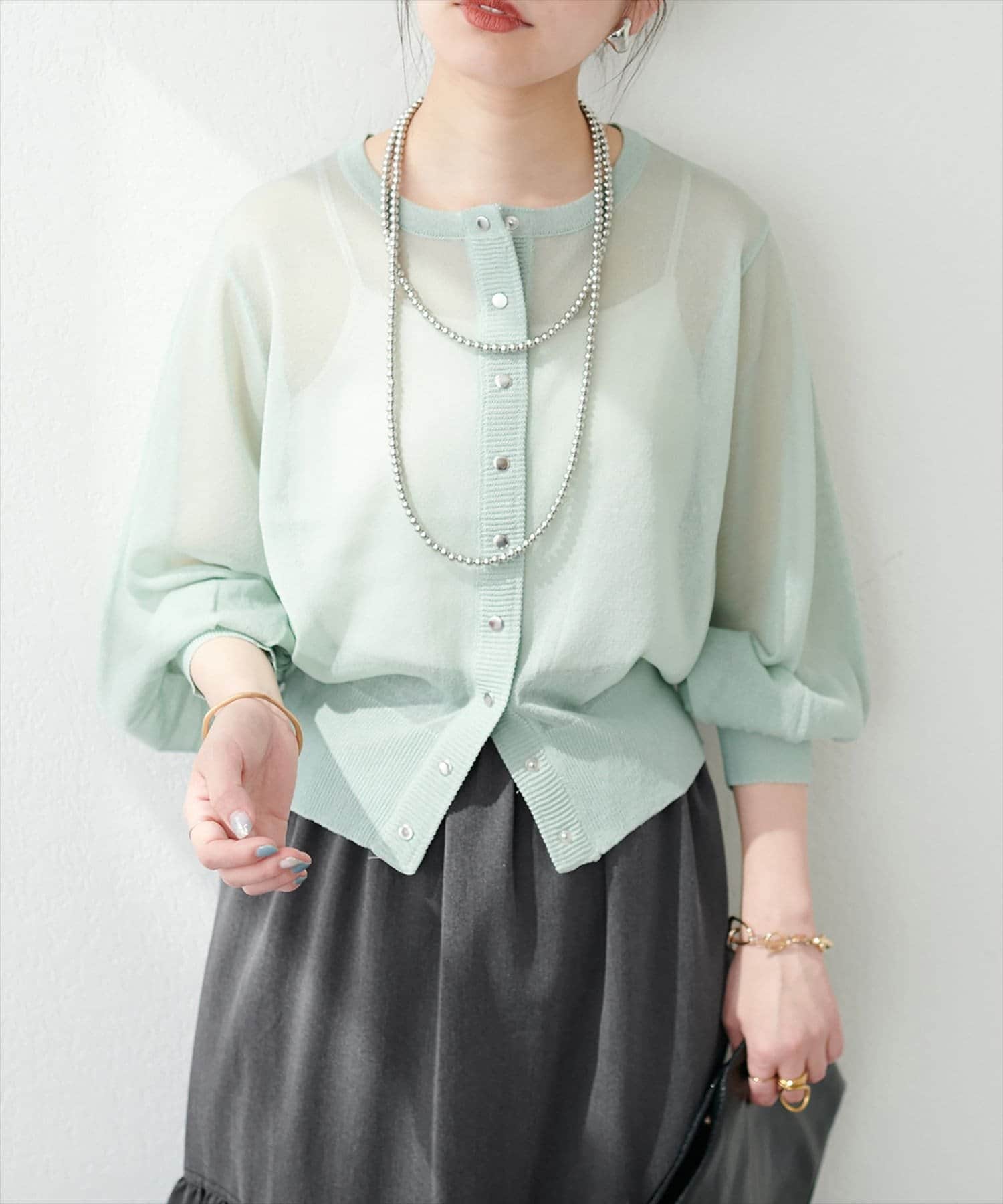 涼し気なシアー感とクリアな発色がポイントのクルーネックカーディガン