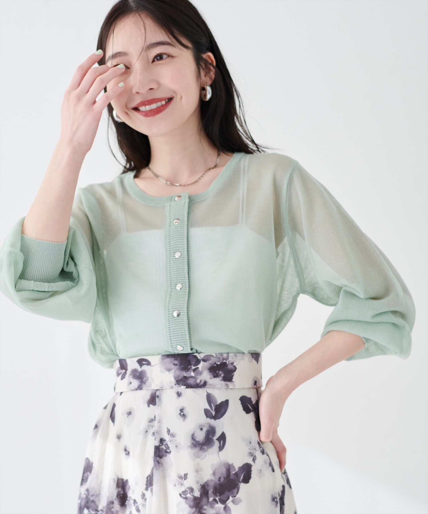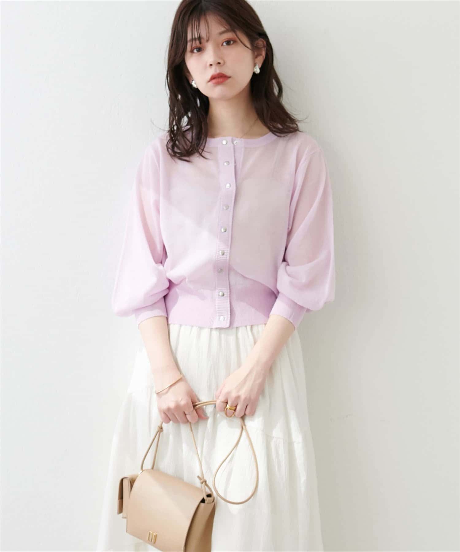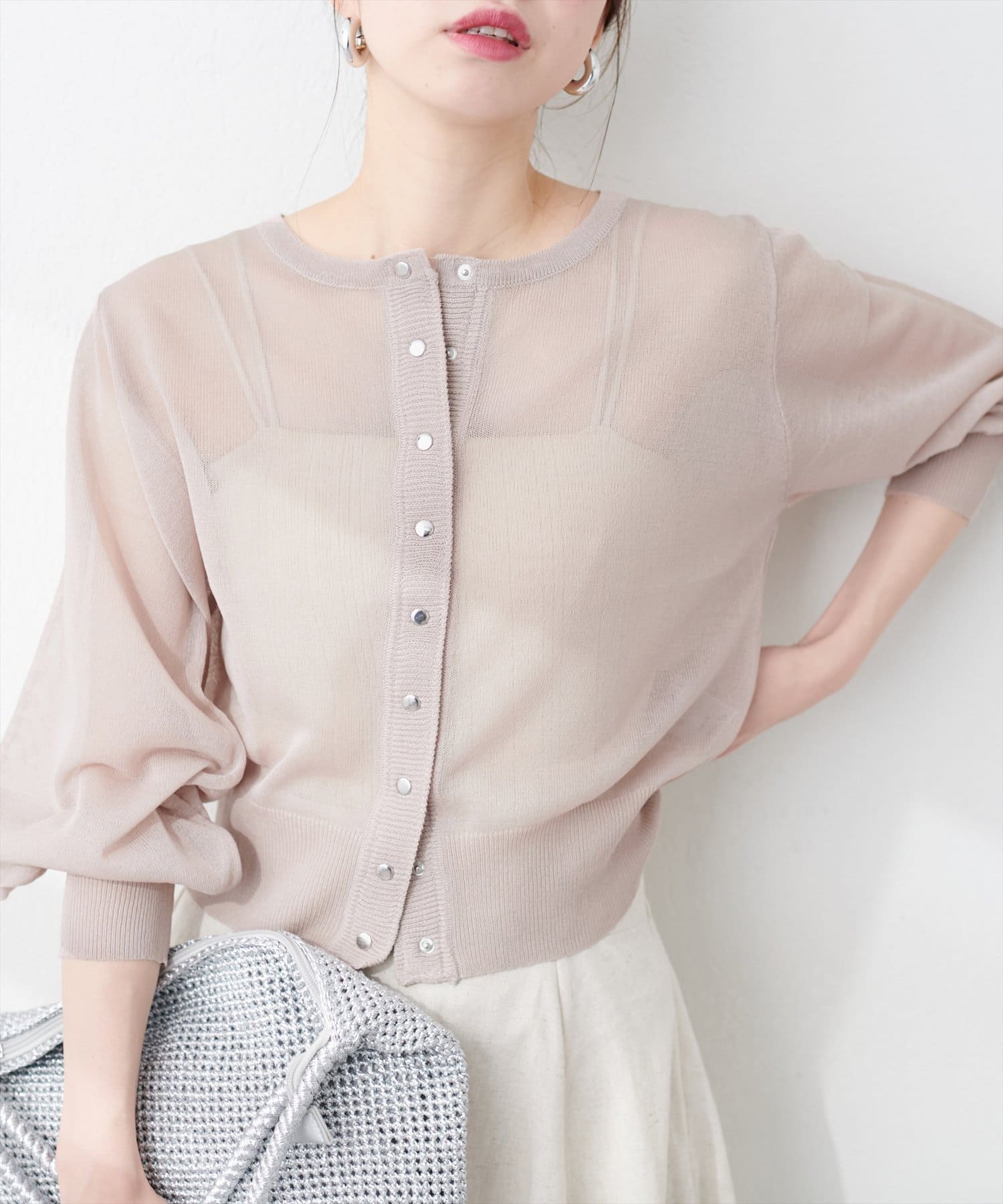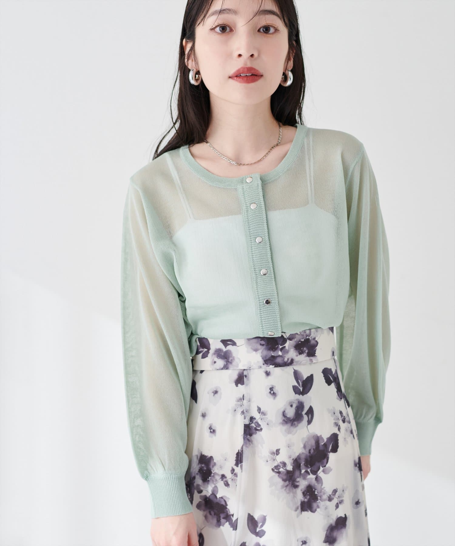 涼し気なシアー感とクリアな発色がポイントのクルーネックカーディガン
