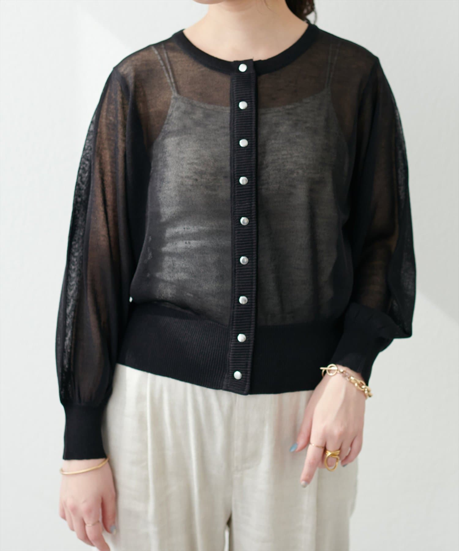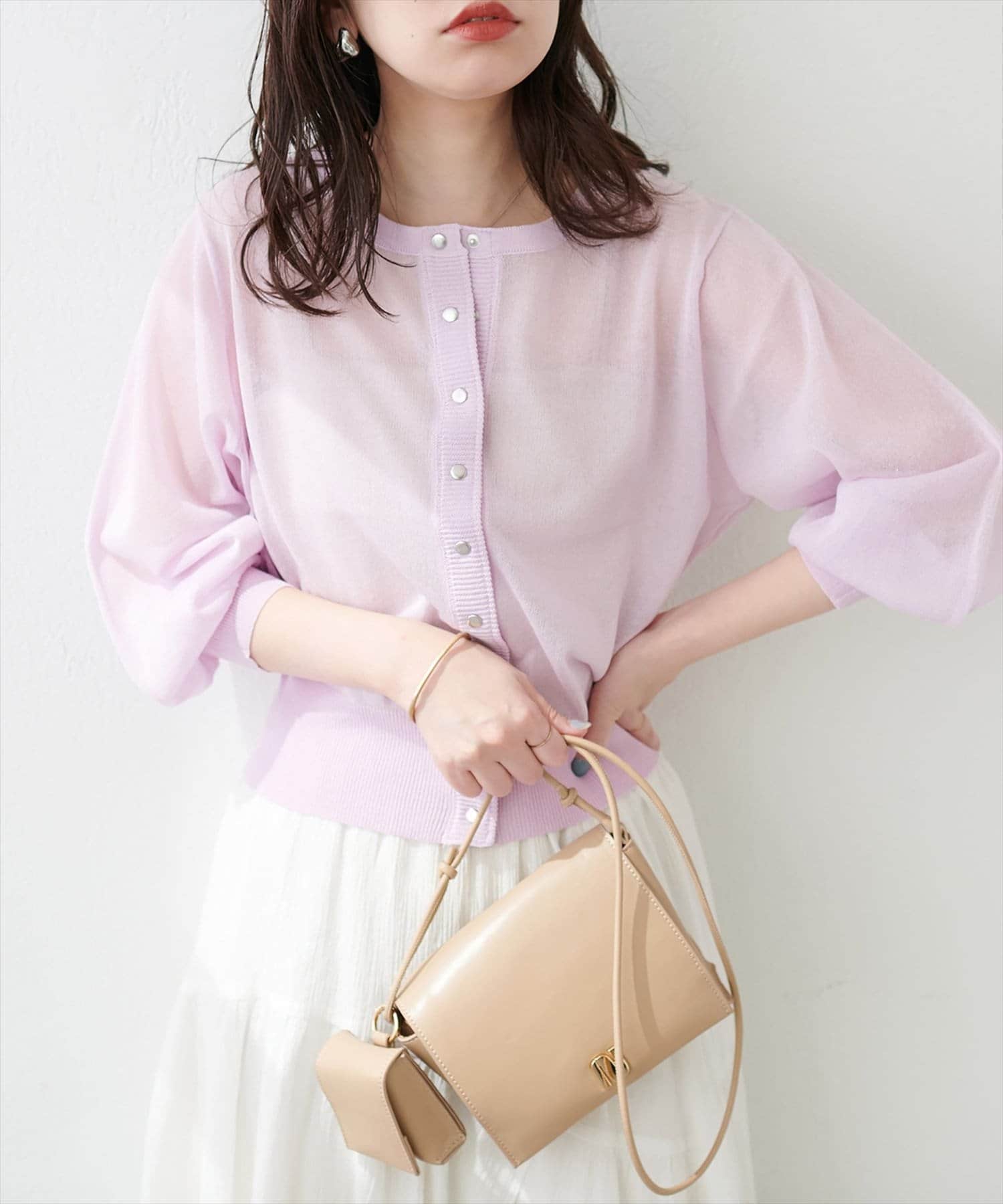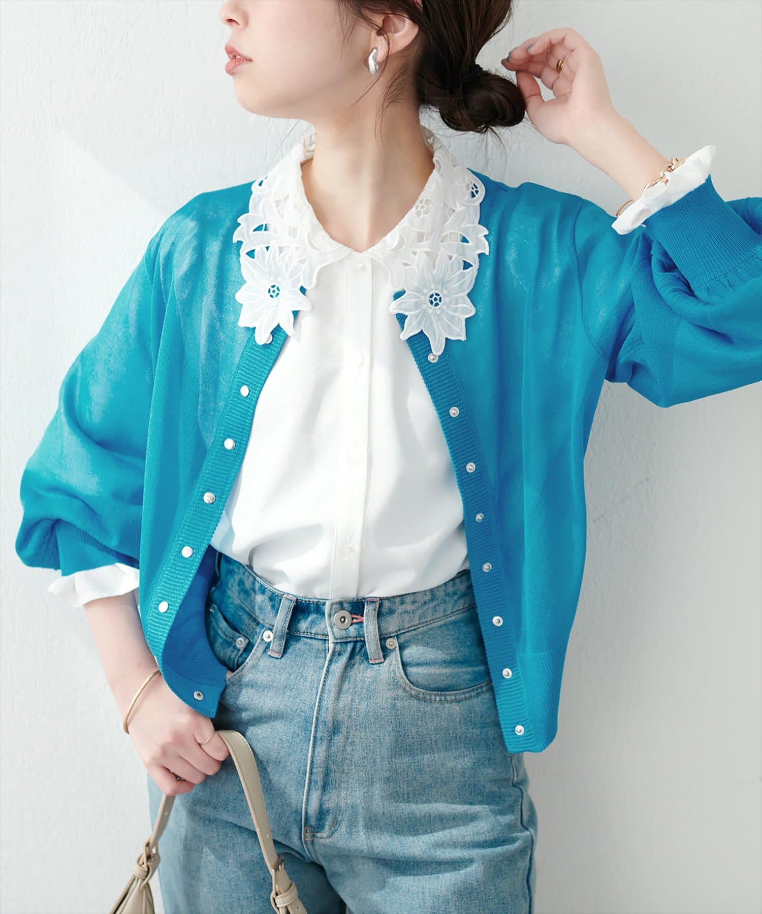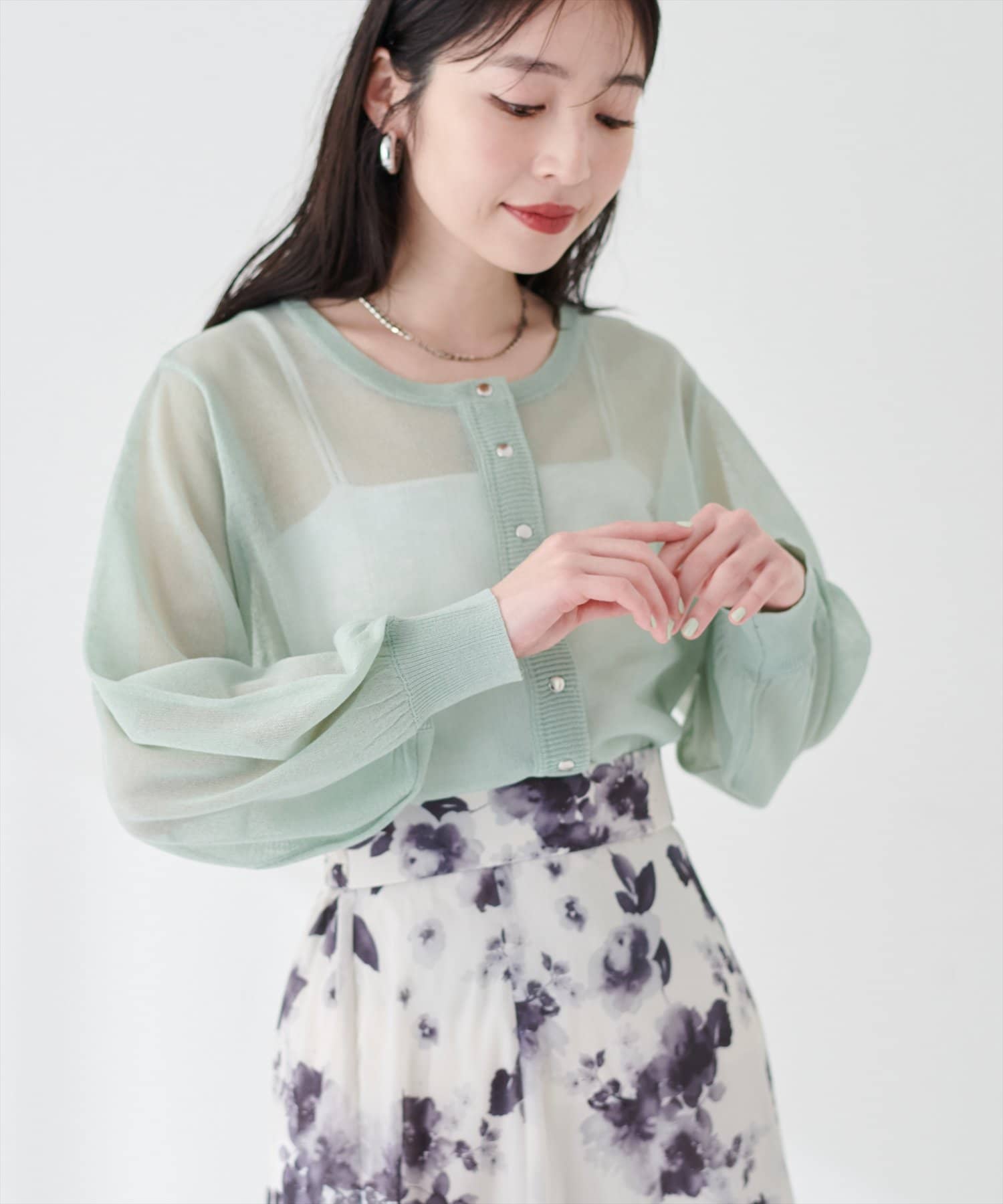 涼し気なシアー感とクリアな発色がポイントのクルーネックカーディガン