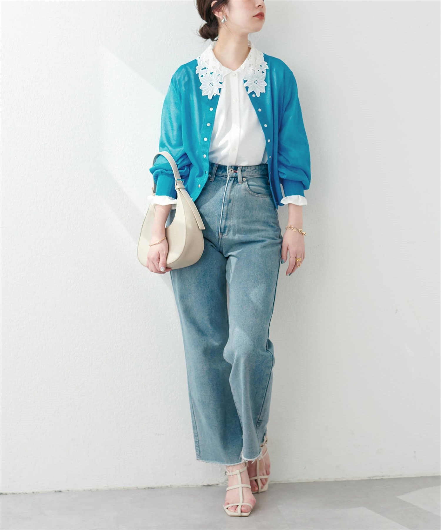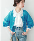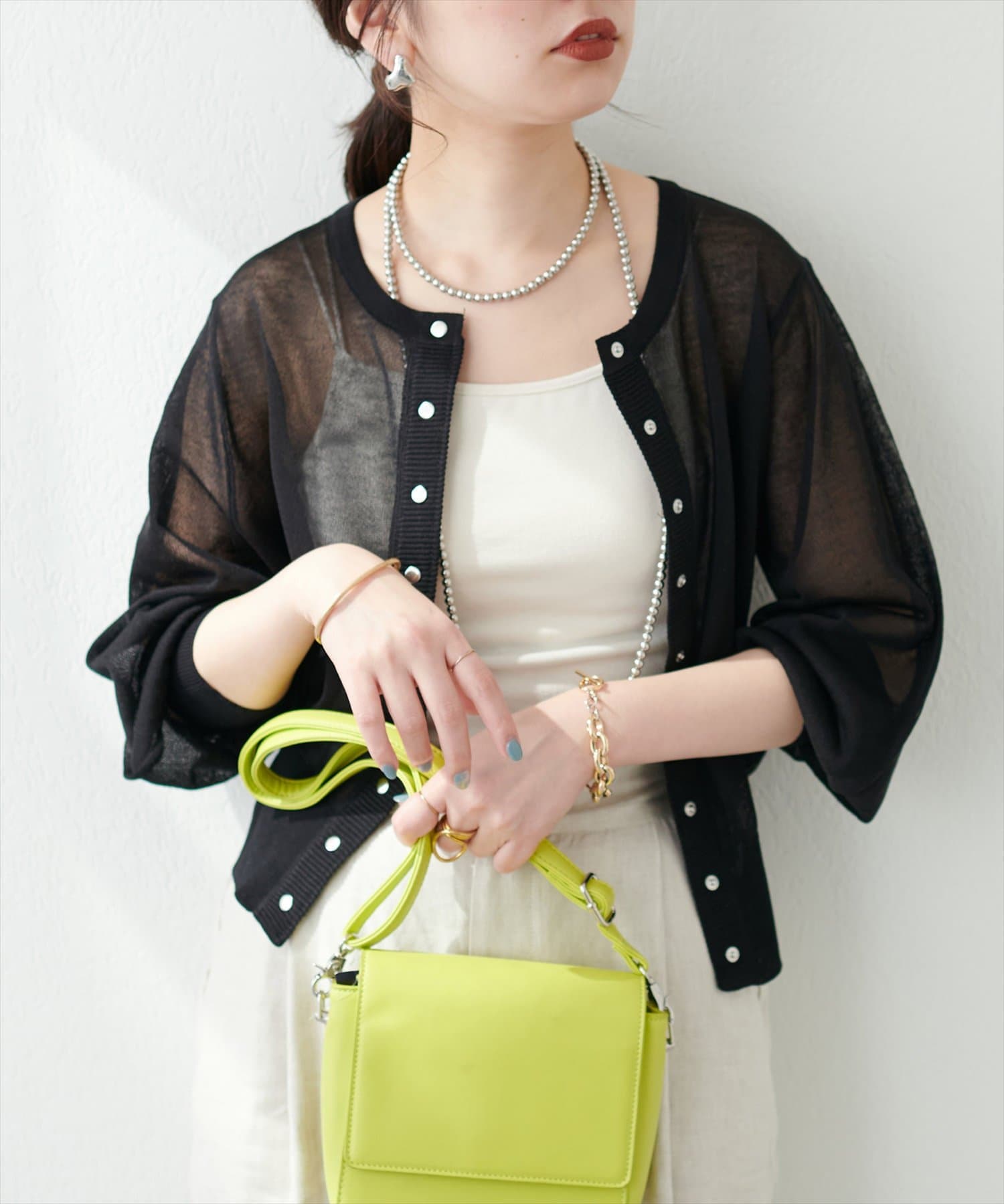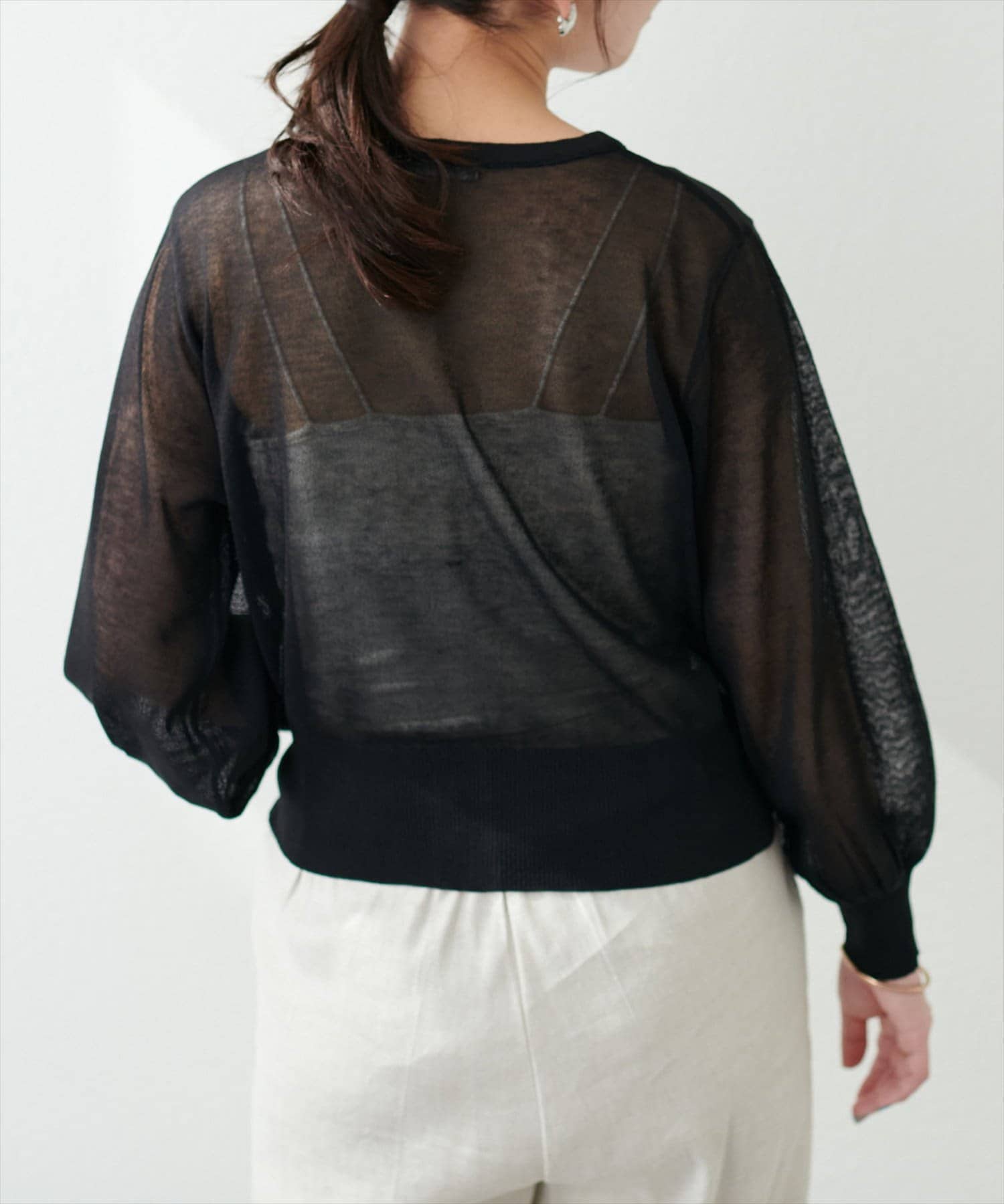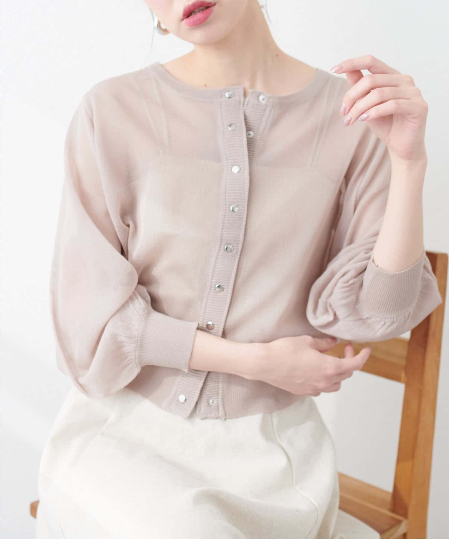 涼し気なシアー感とクリアな発色がポイントのクルーネックカーディガン