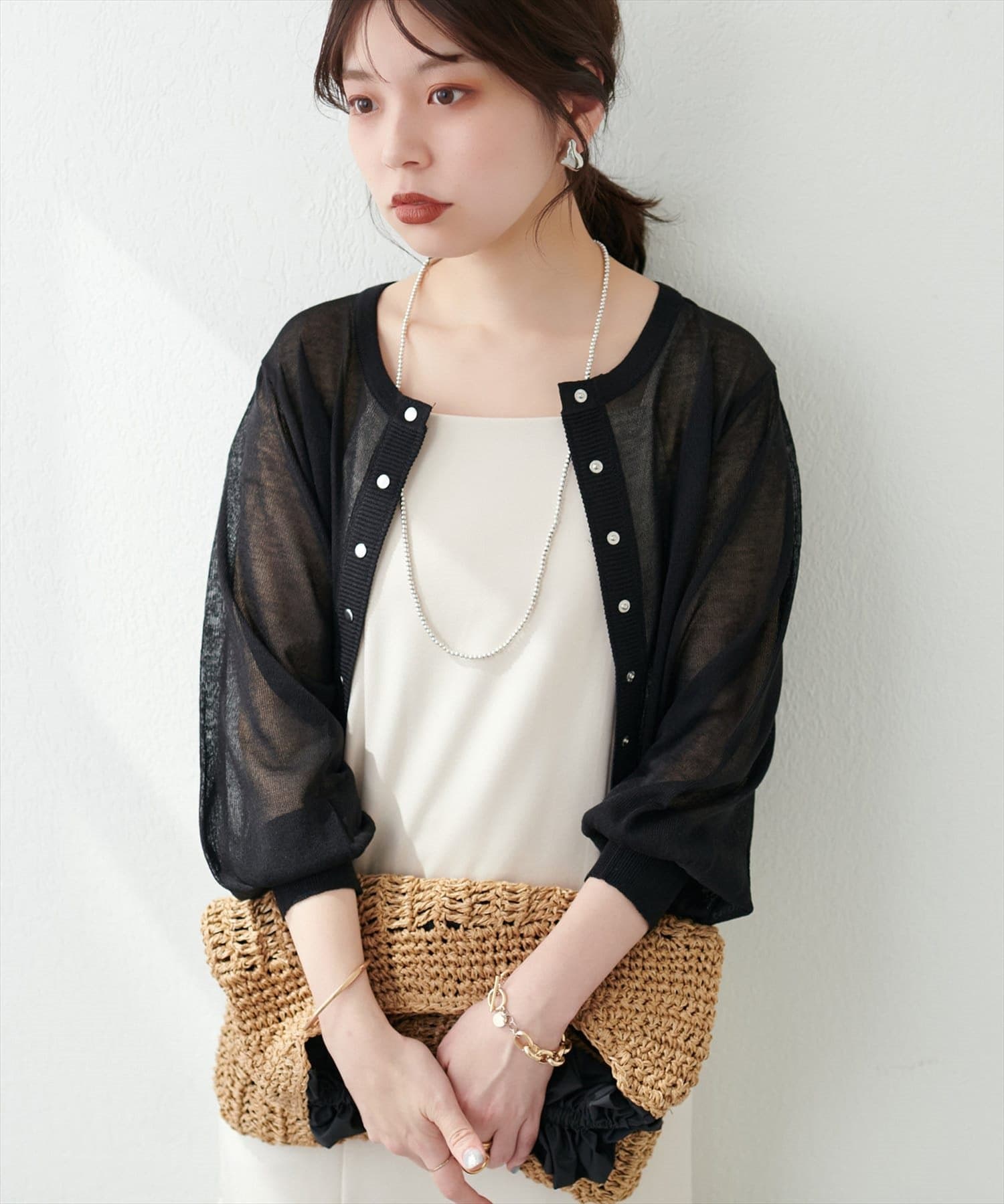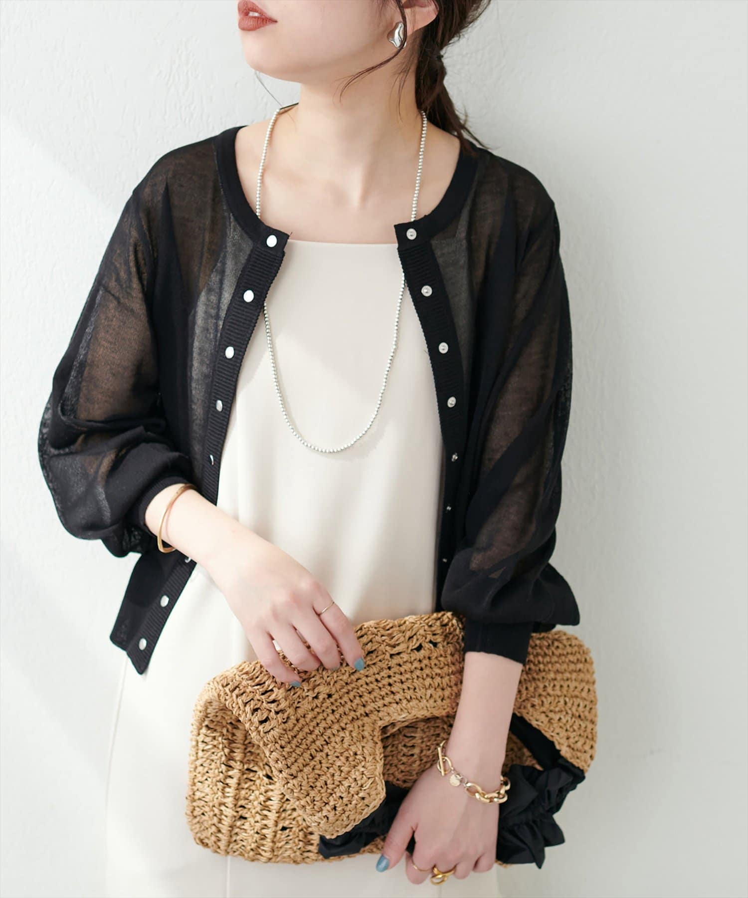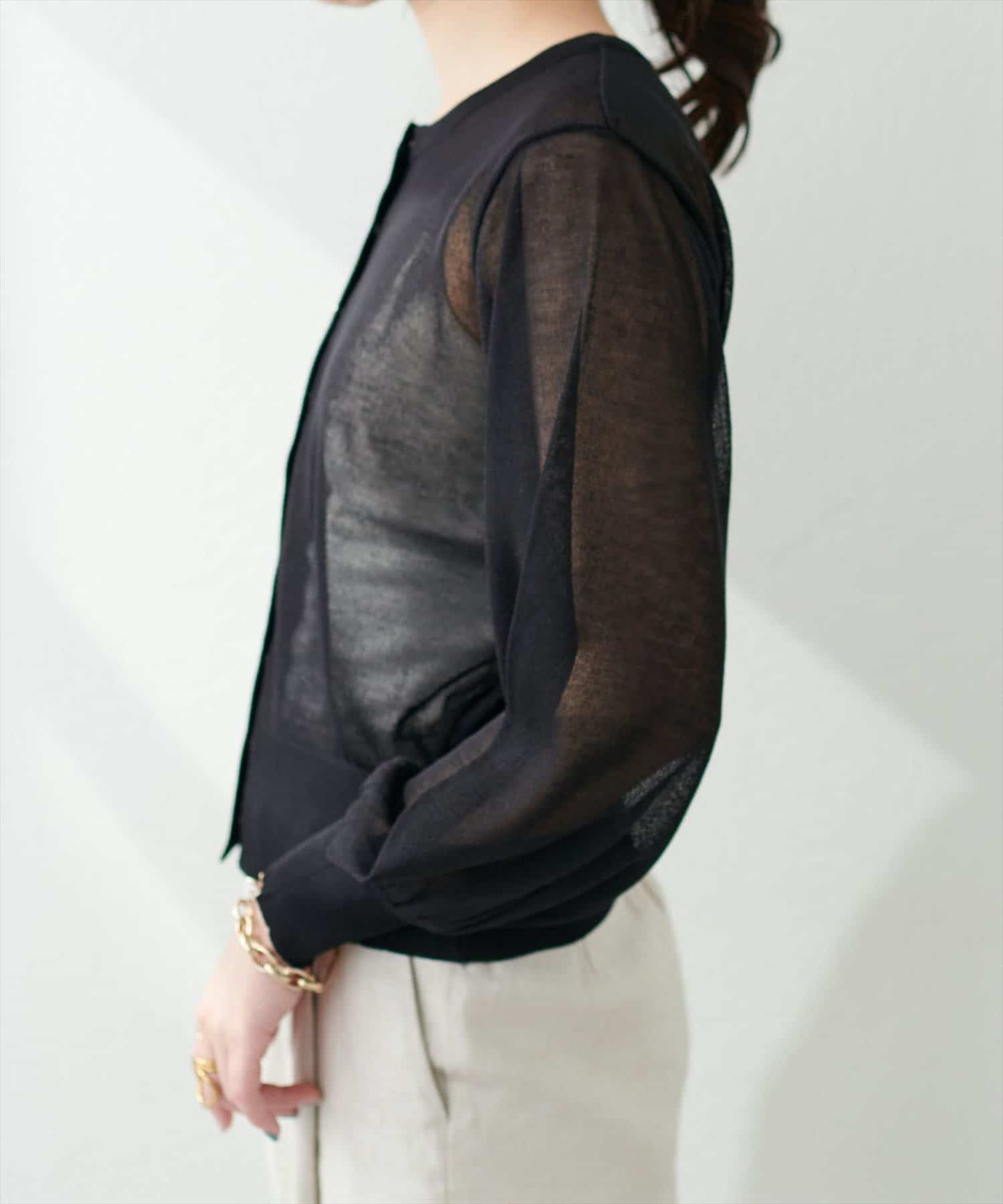 程よいシアー感とハリのある上品な大人のカーディガン。