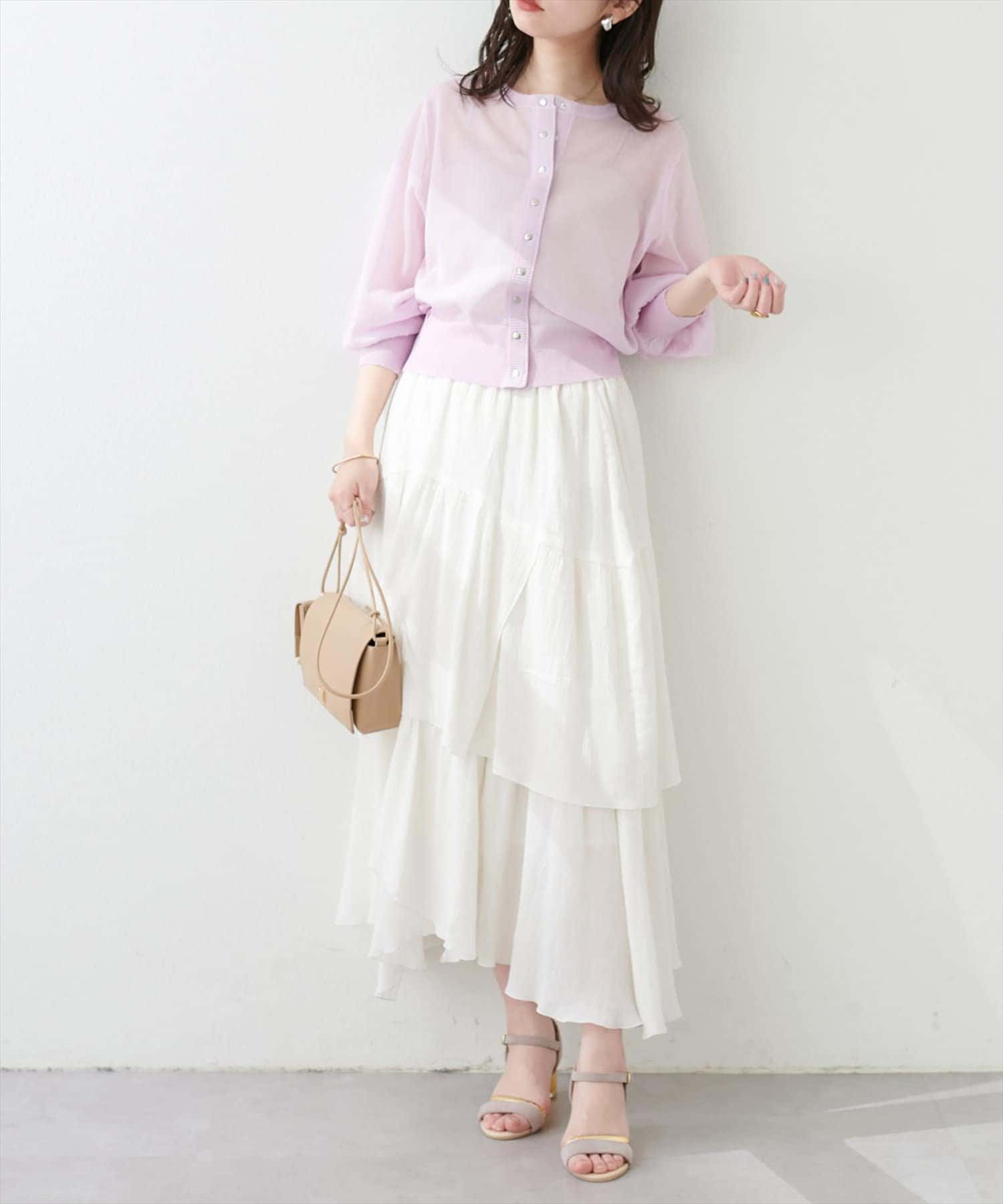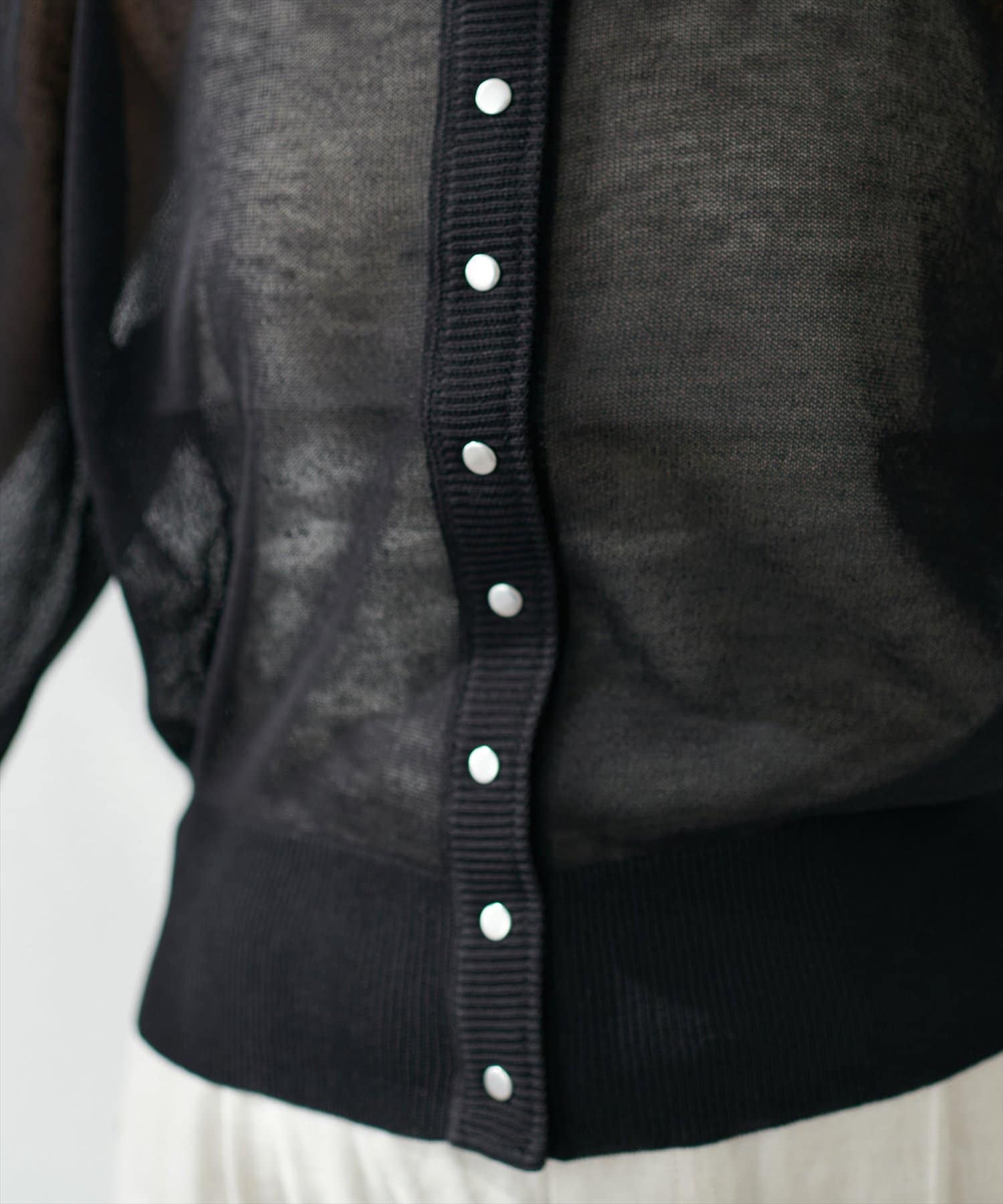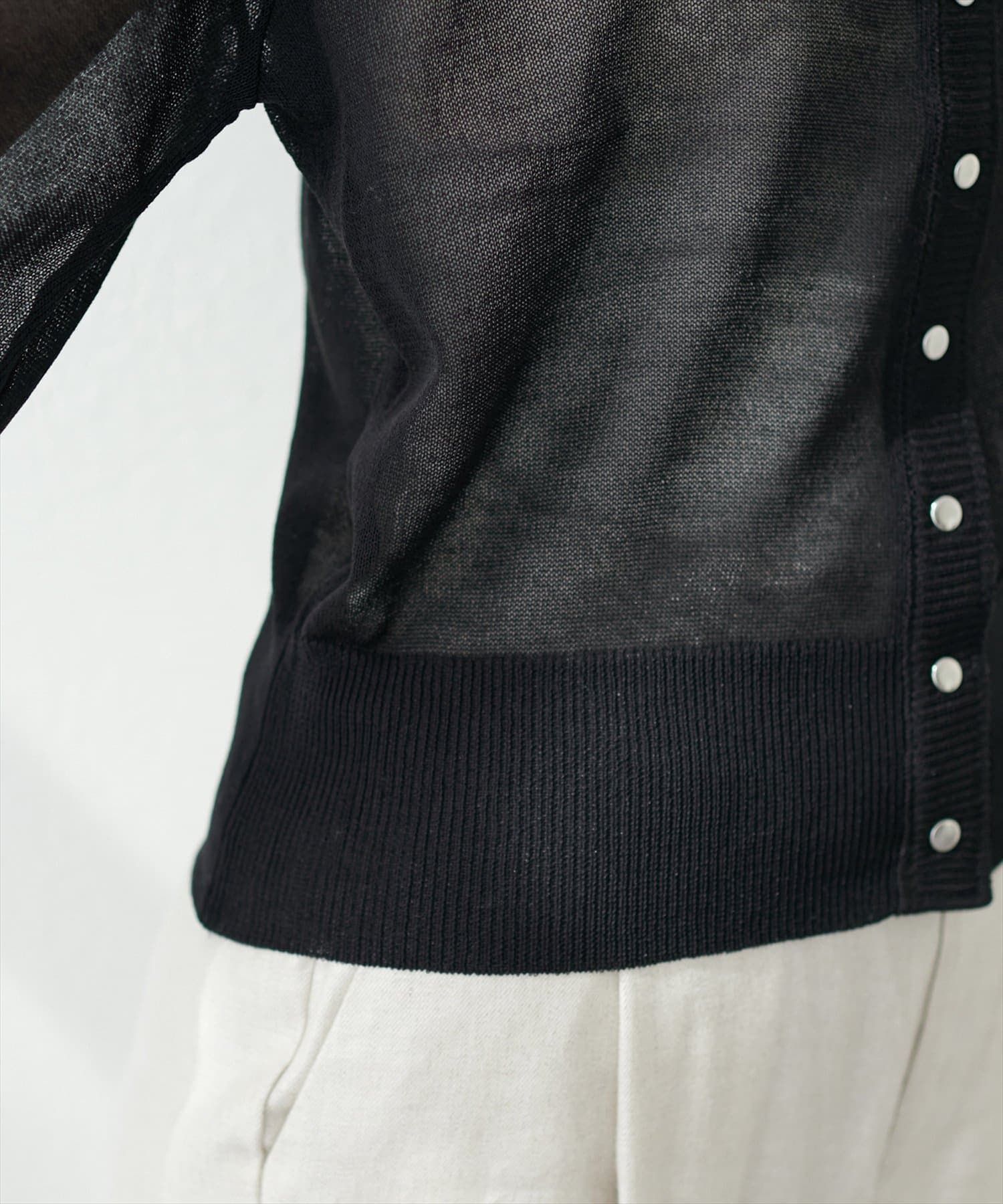 程よいシアー感とハリのある上品な大人のカーディガン。