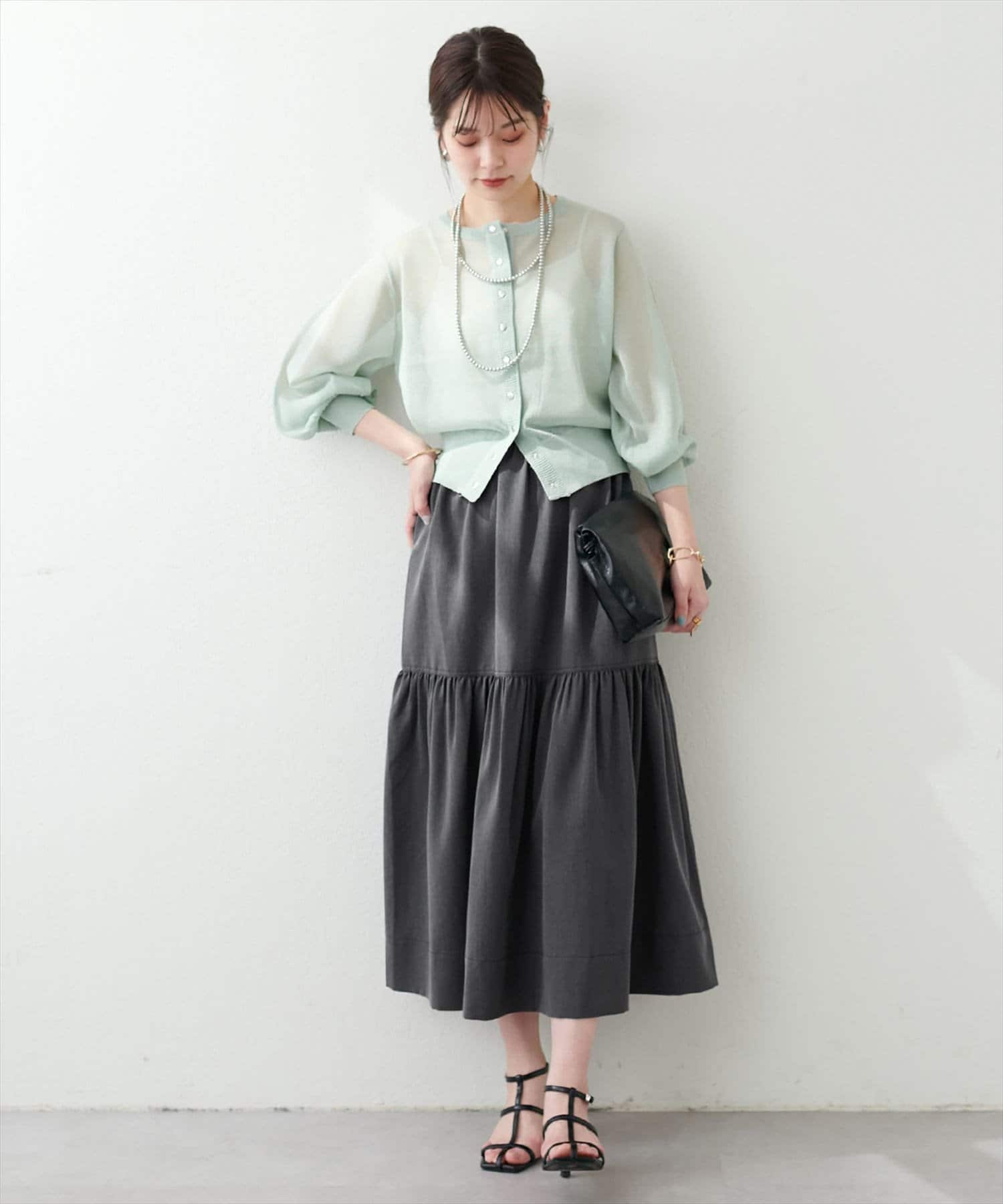 シアー感のある素材で、夏でも涼しげな印象を与えてくれます。