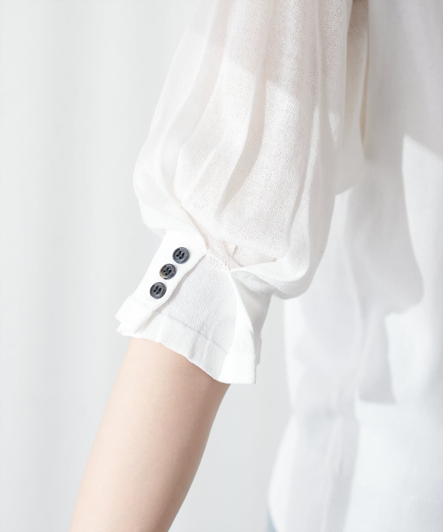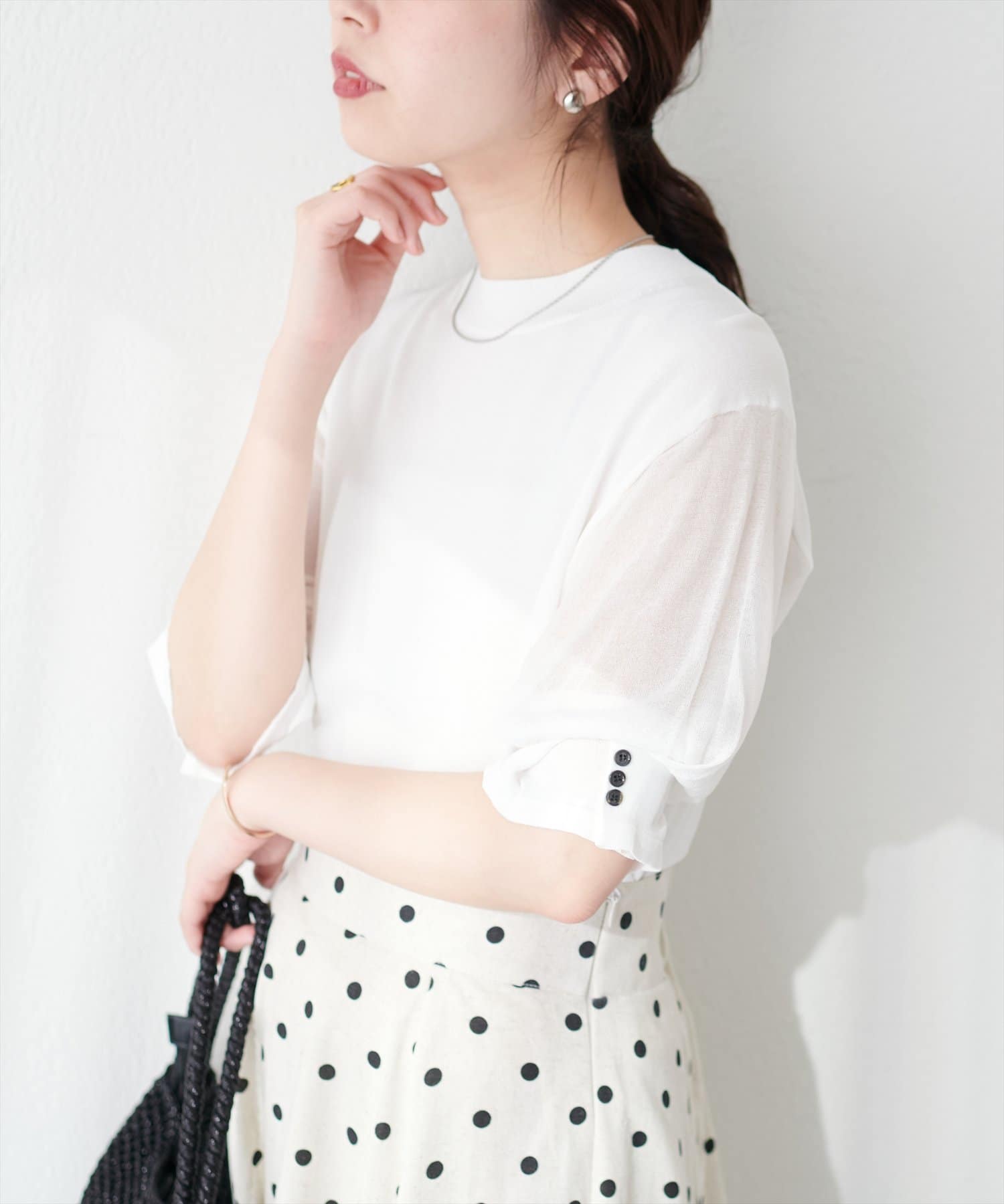 さらっとした着心地の良いニット地を採用し、袖部分のみシアー感を出すことで