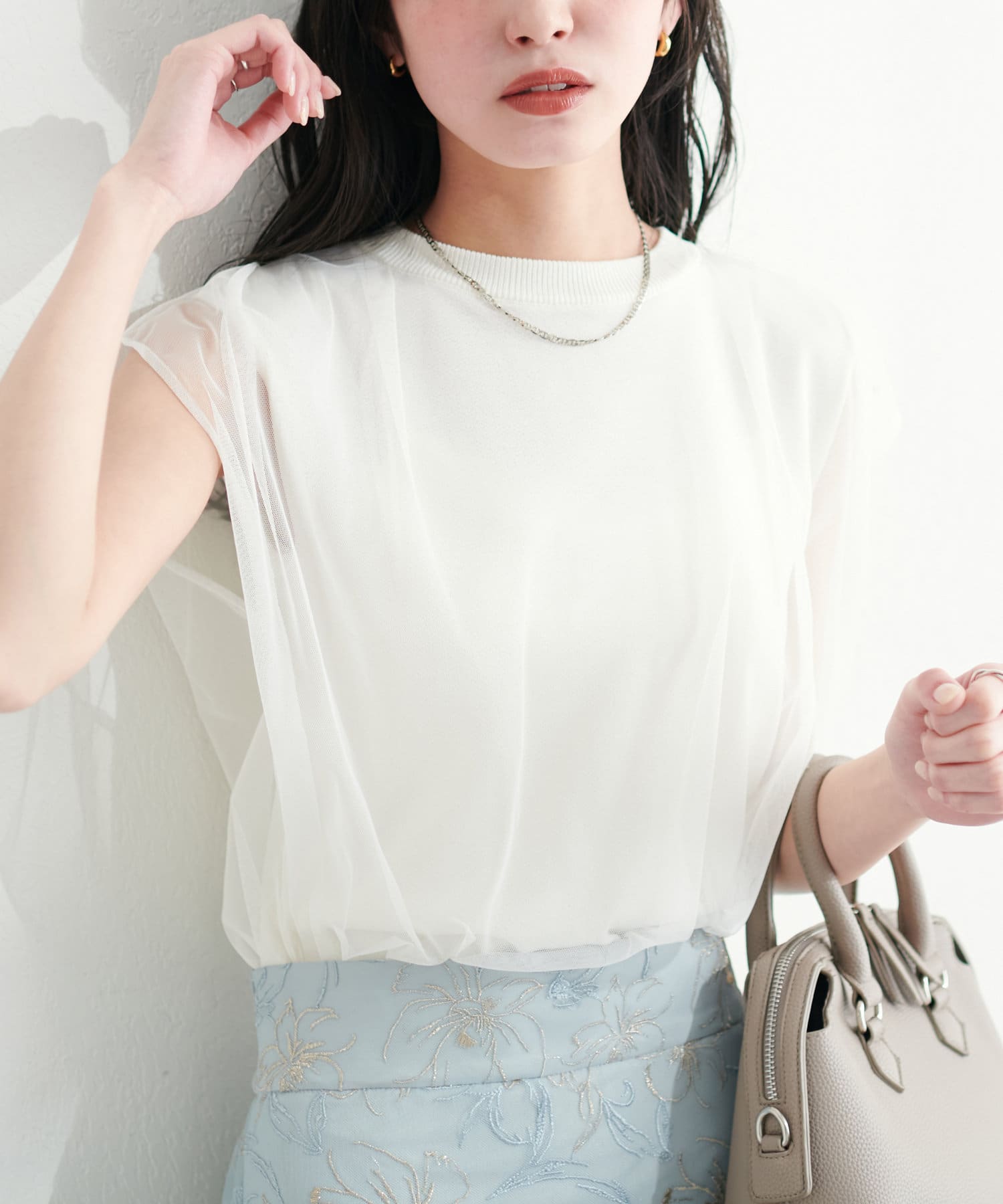 品番 0341050540 素材 ニット部分 レーヨン 65% ナイロン 35% チュール部分 ポリエステル 100% 原産国 中国 サイズ FREE カテゴリ トップス > ニット/セーター タイプ レディース ギフト ラッピング 可 取り扱い - アイテムサイズ