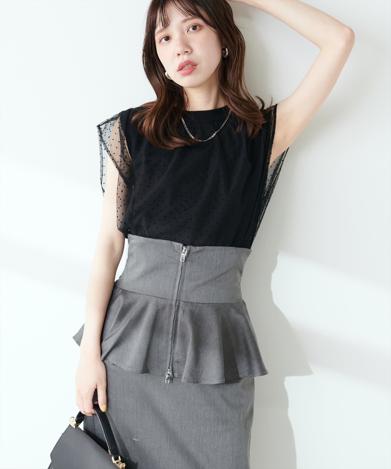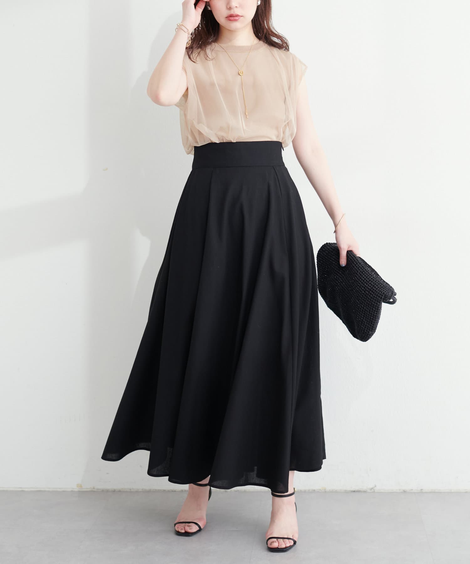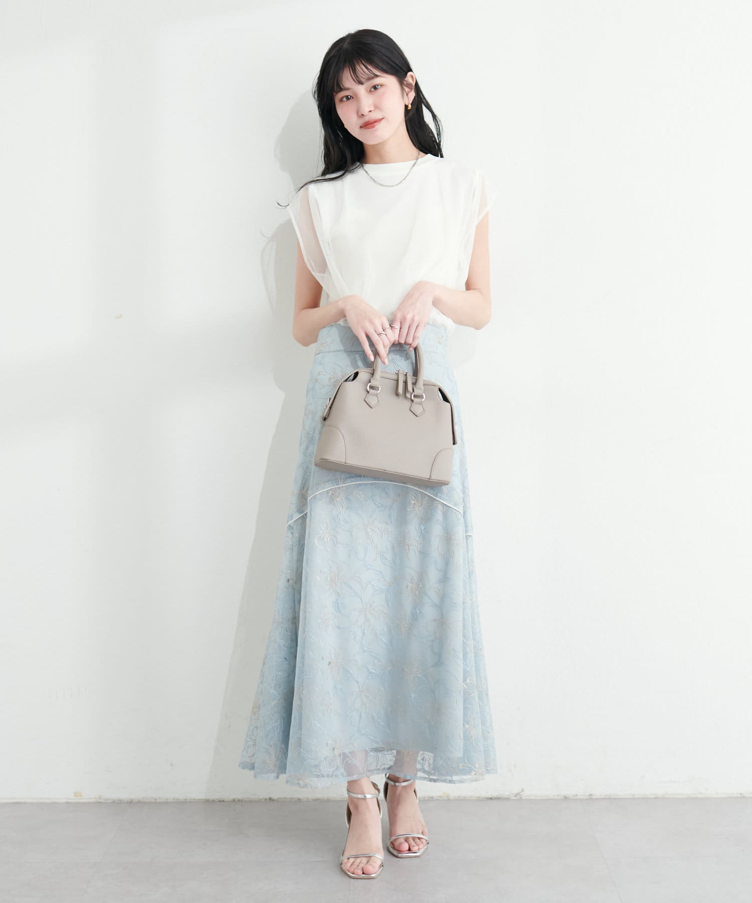 ハイウエストラインのボトムスから、マーメイドシルエットやフレアなスカートにウエストインして頂くと、