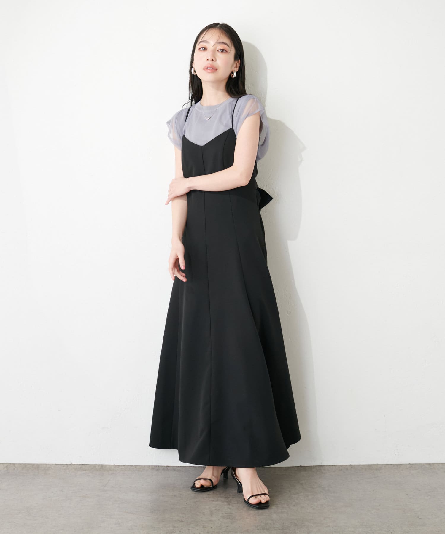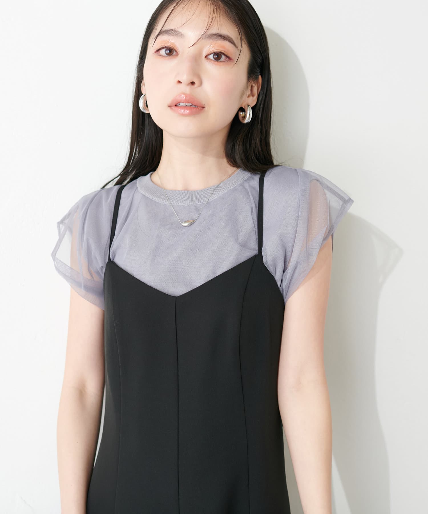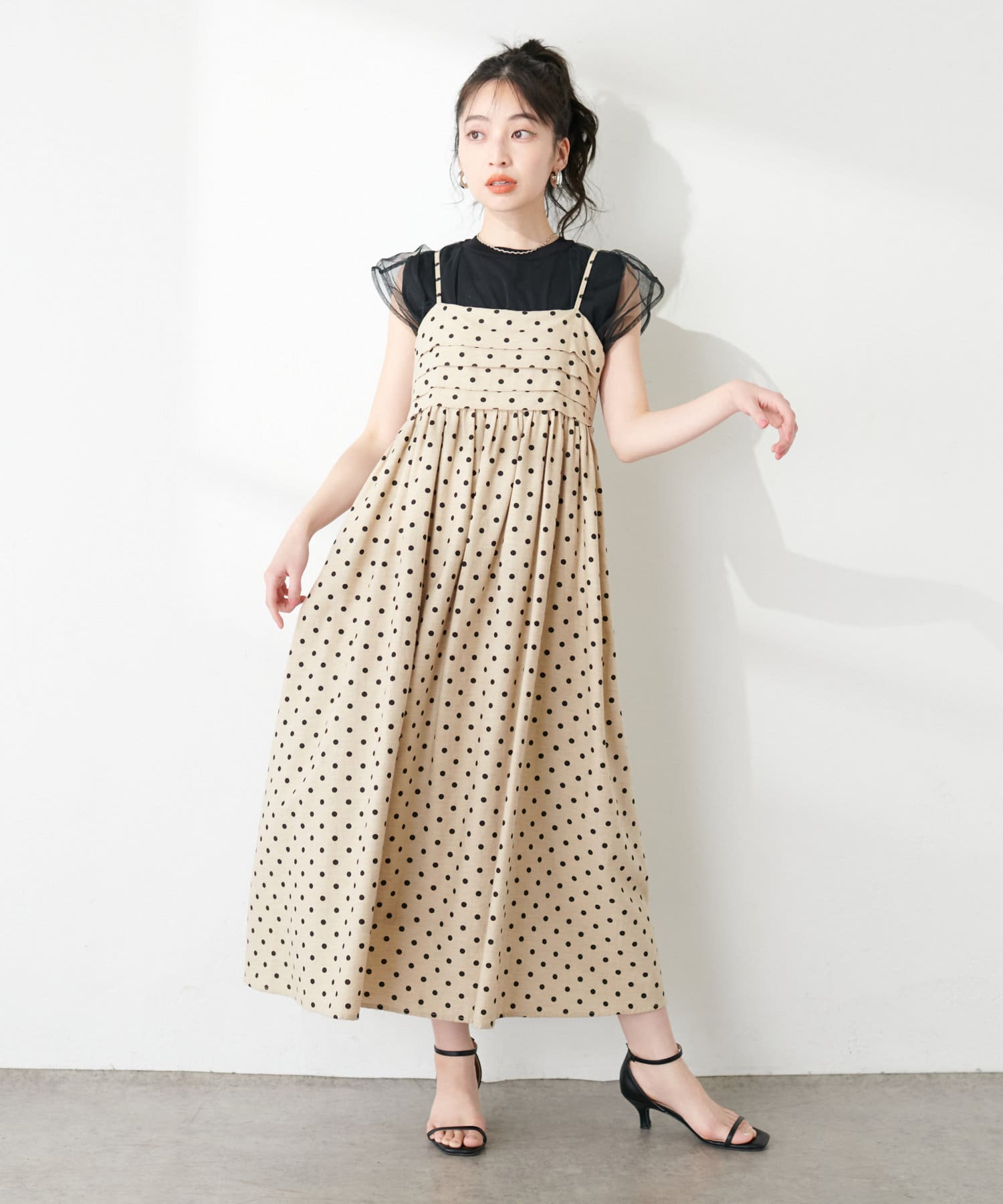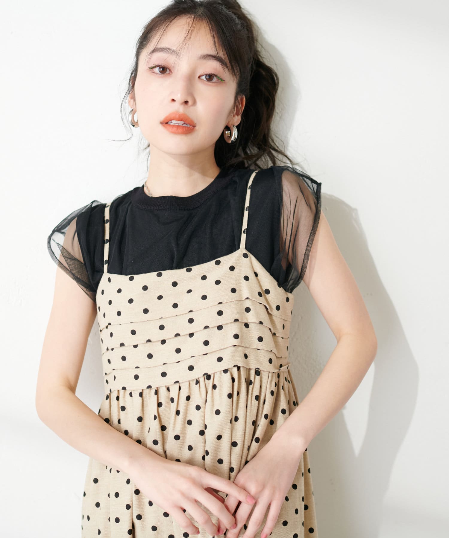 お好みでキャミワンピースやサロペットのインナーにして頂いても、ポイント見えでお洒落度がアップします。