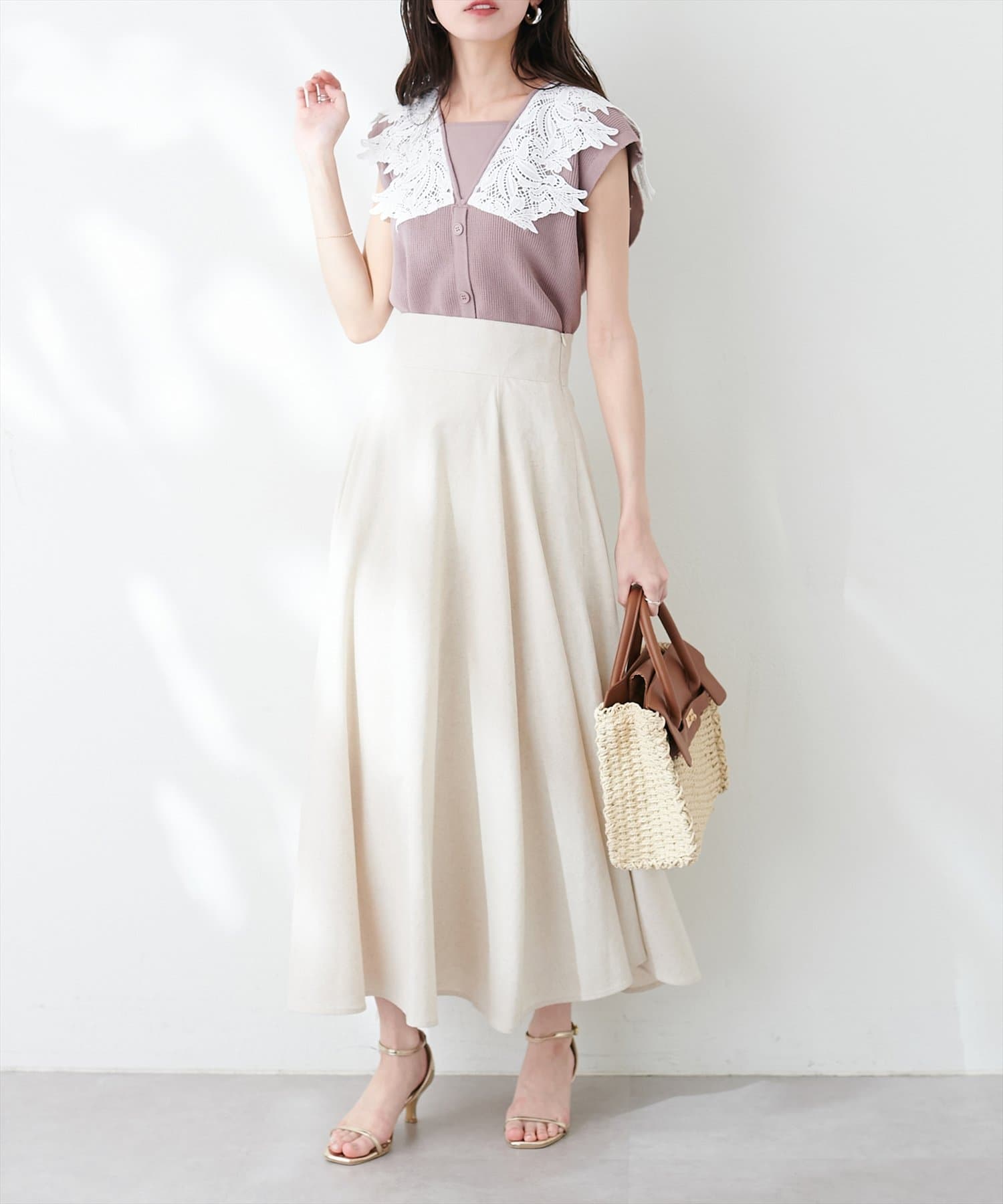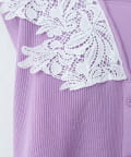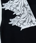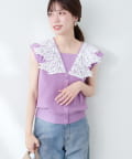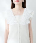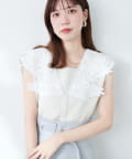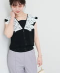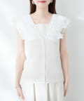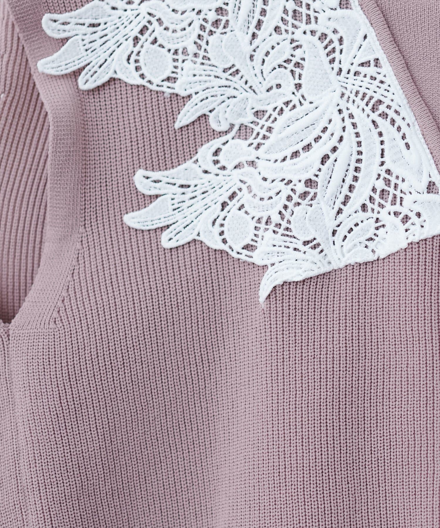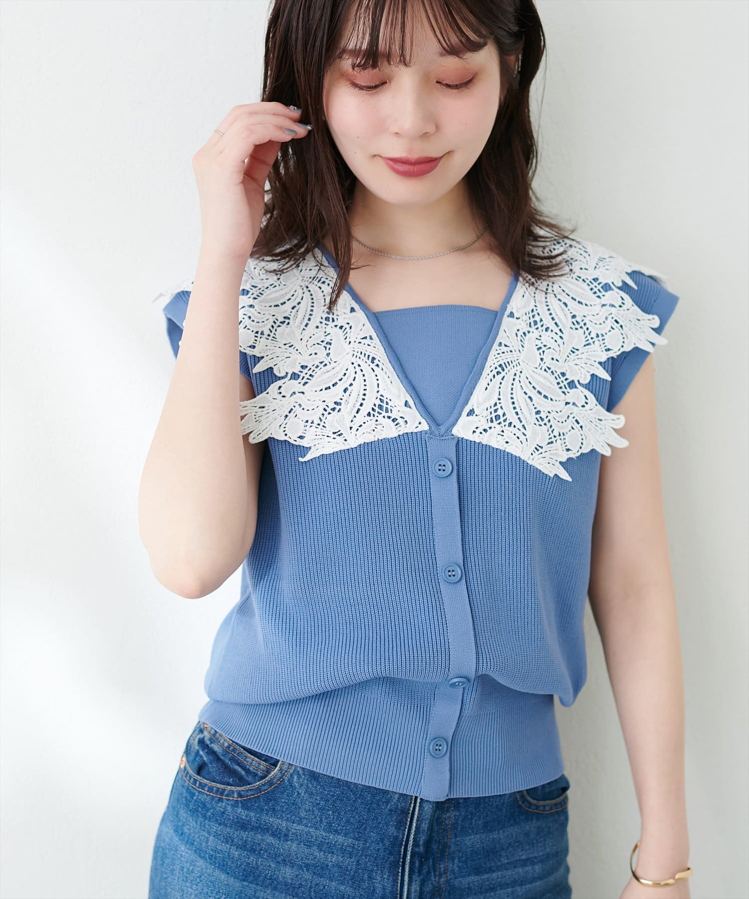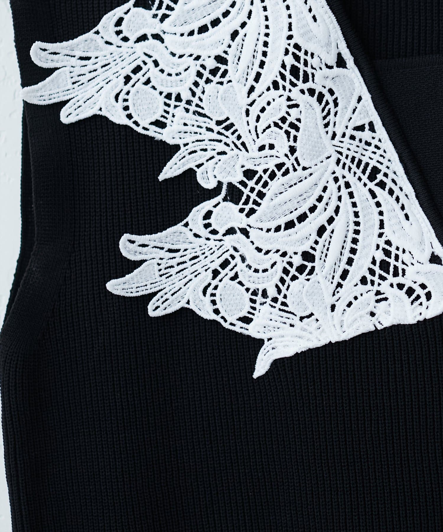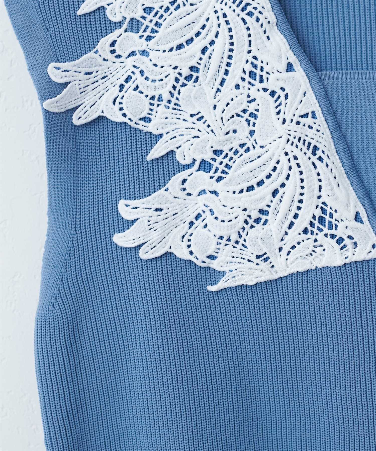 モチーフレースの大胆な衿が印象的なノースリーブニット。