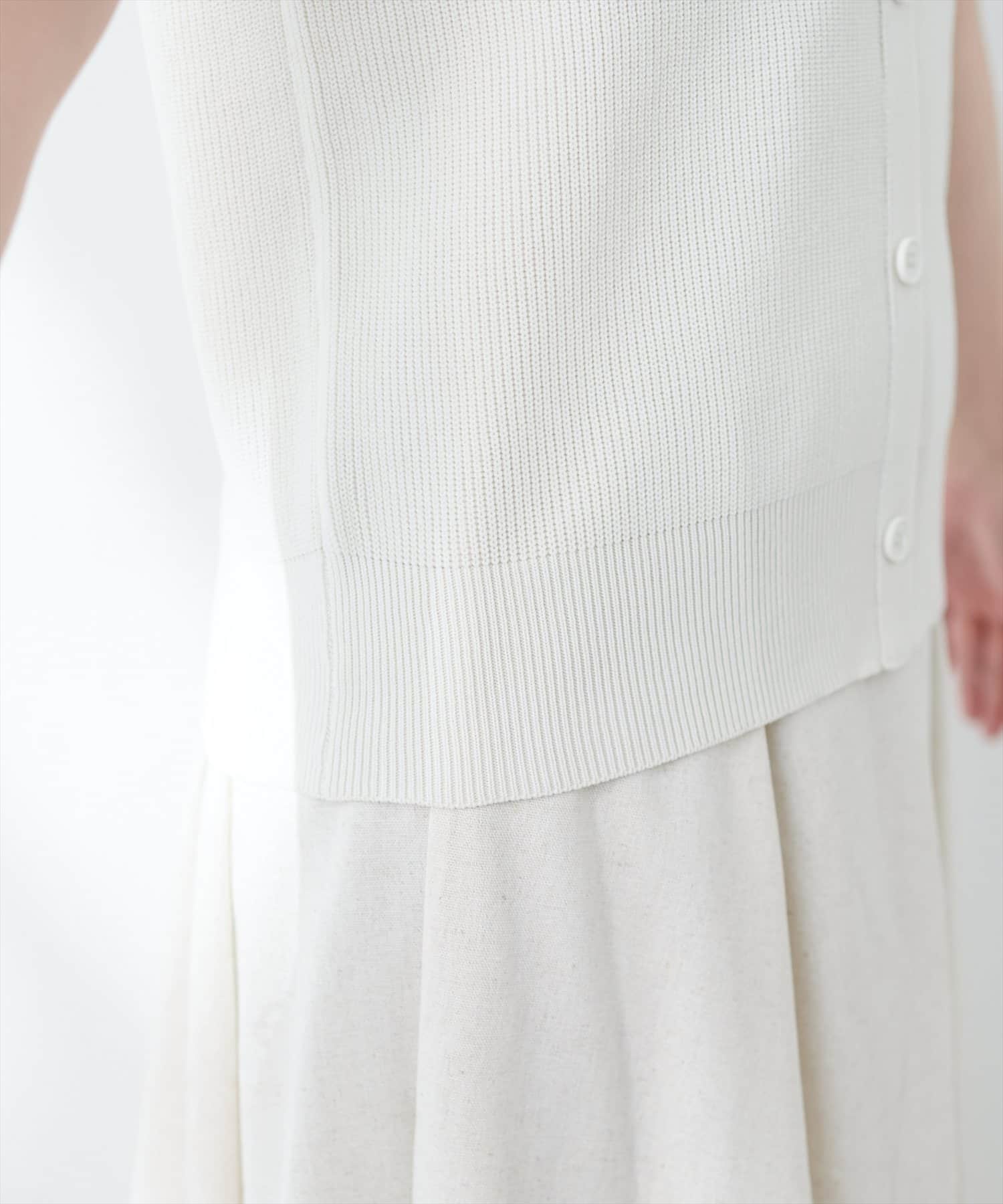 毛玉になりにくい素材でご家庭の洗濯機でお手入れが可能なので、汗をかく季節にぴったりな1着。