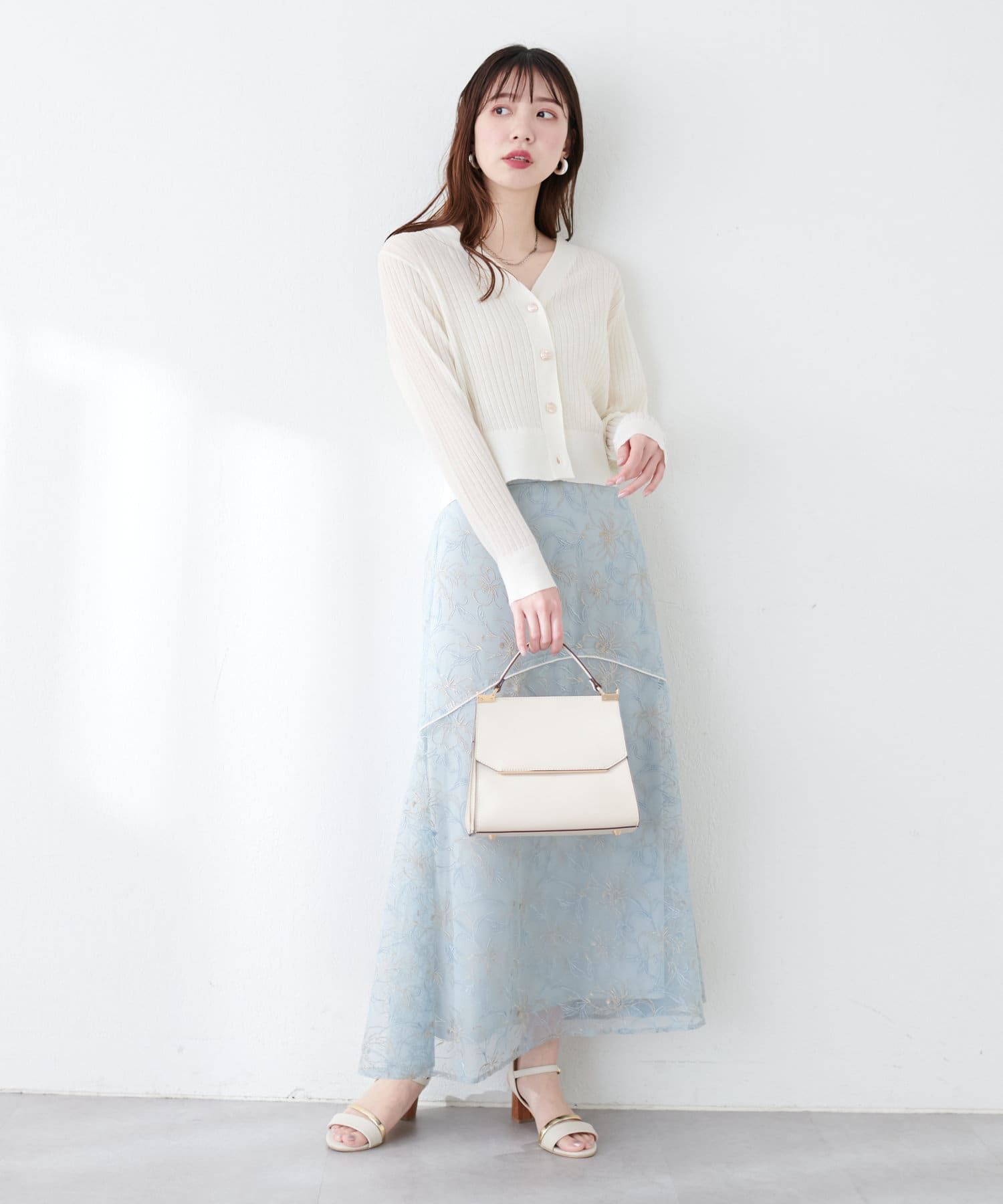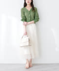 レディなフレアスカートはもちろん、シンプルなデニム合わせも華やかにきまります。