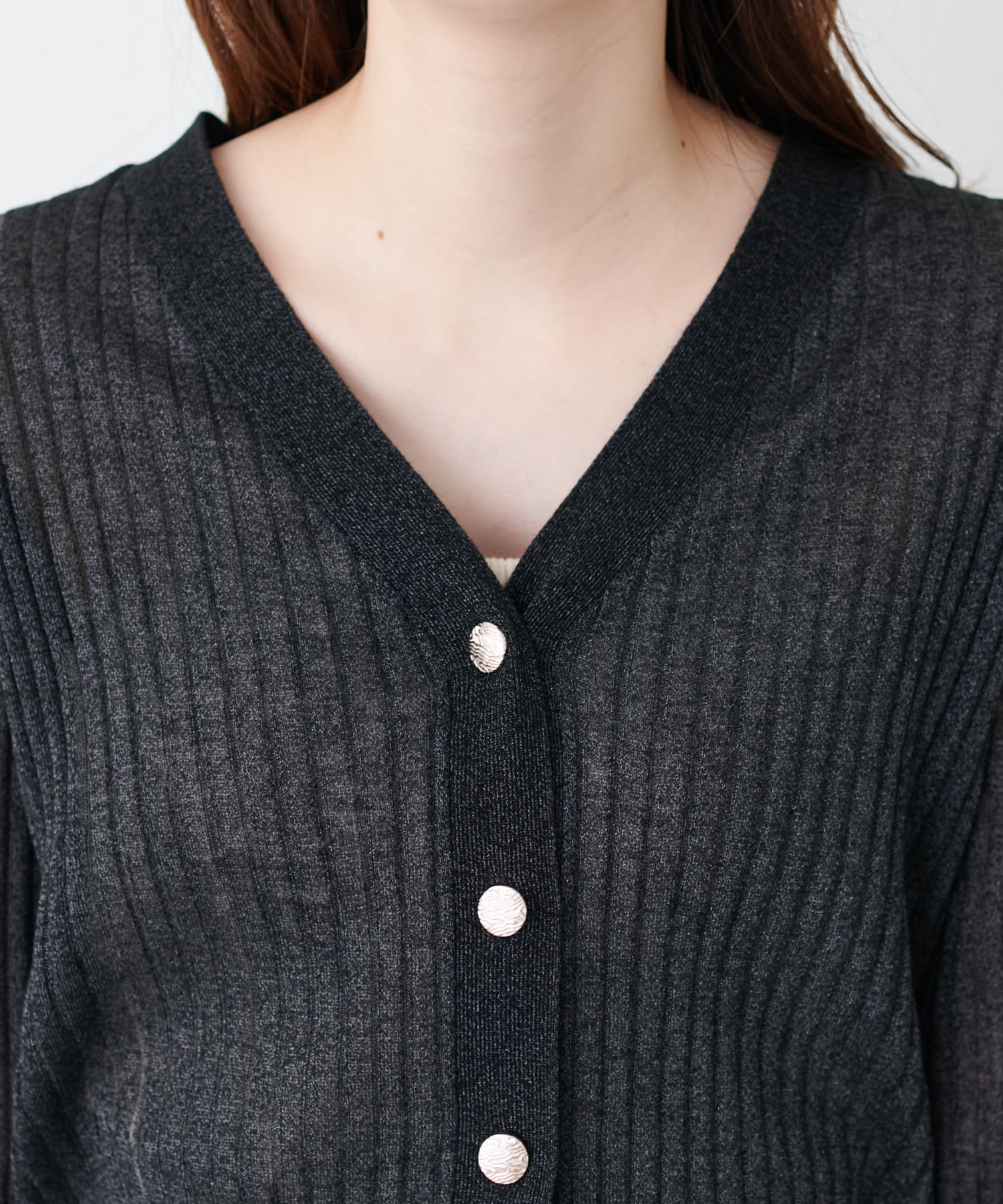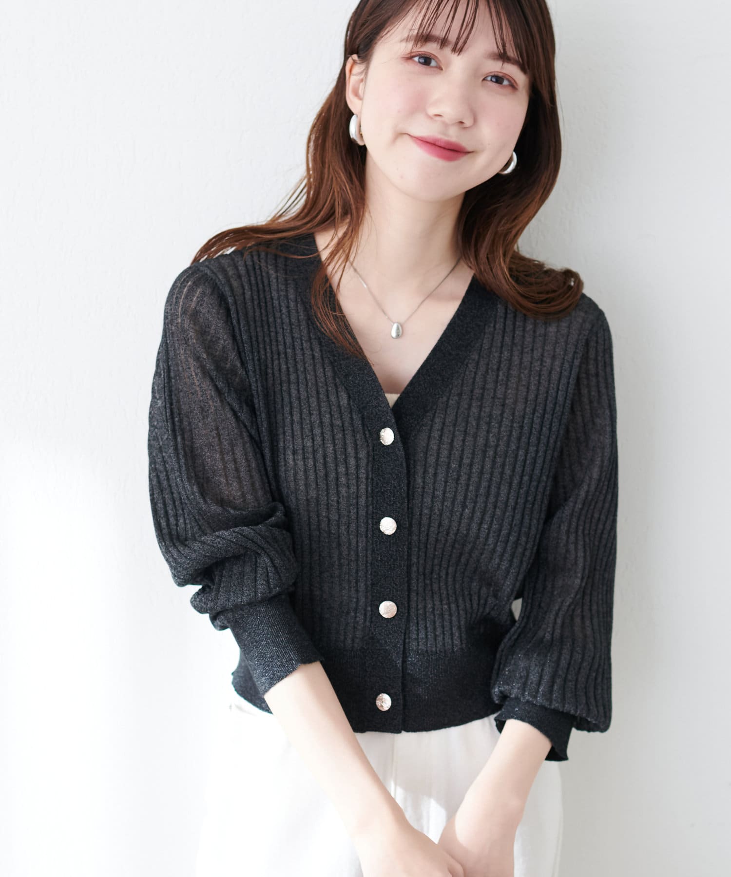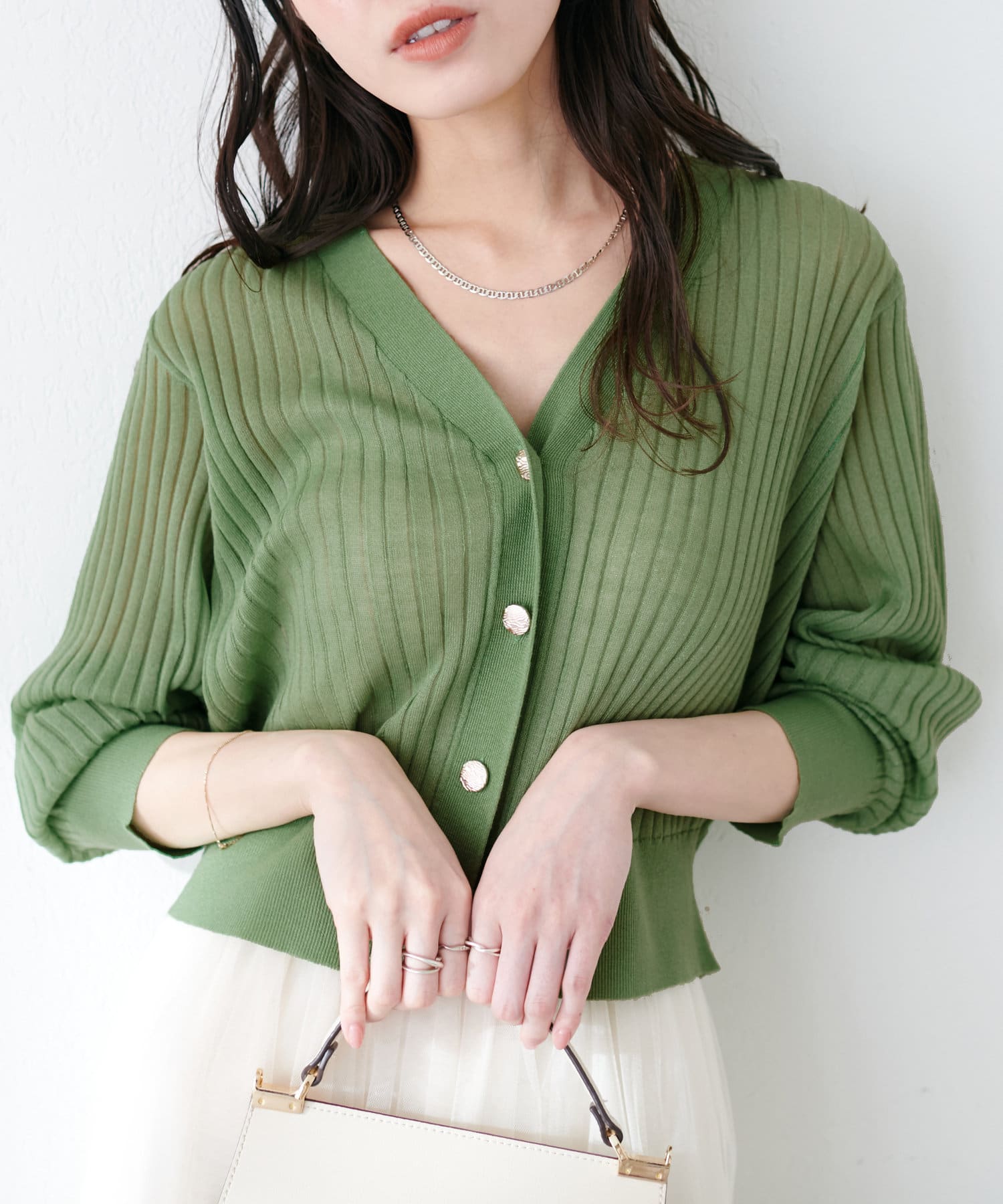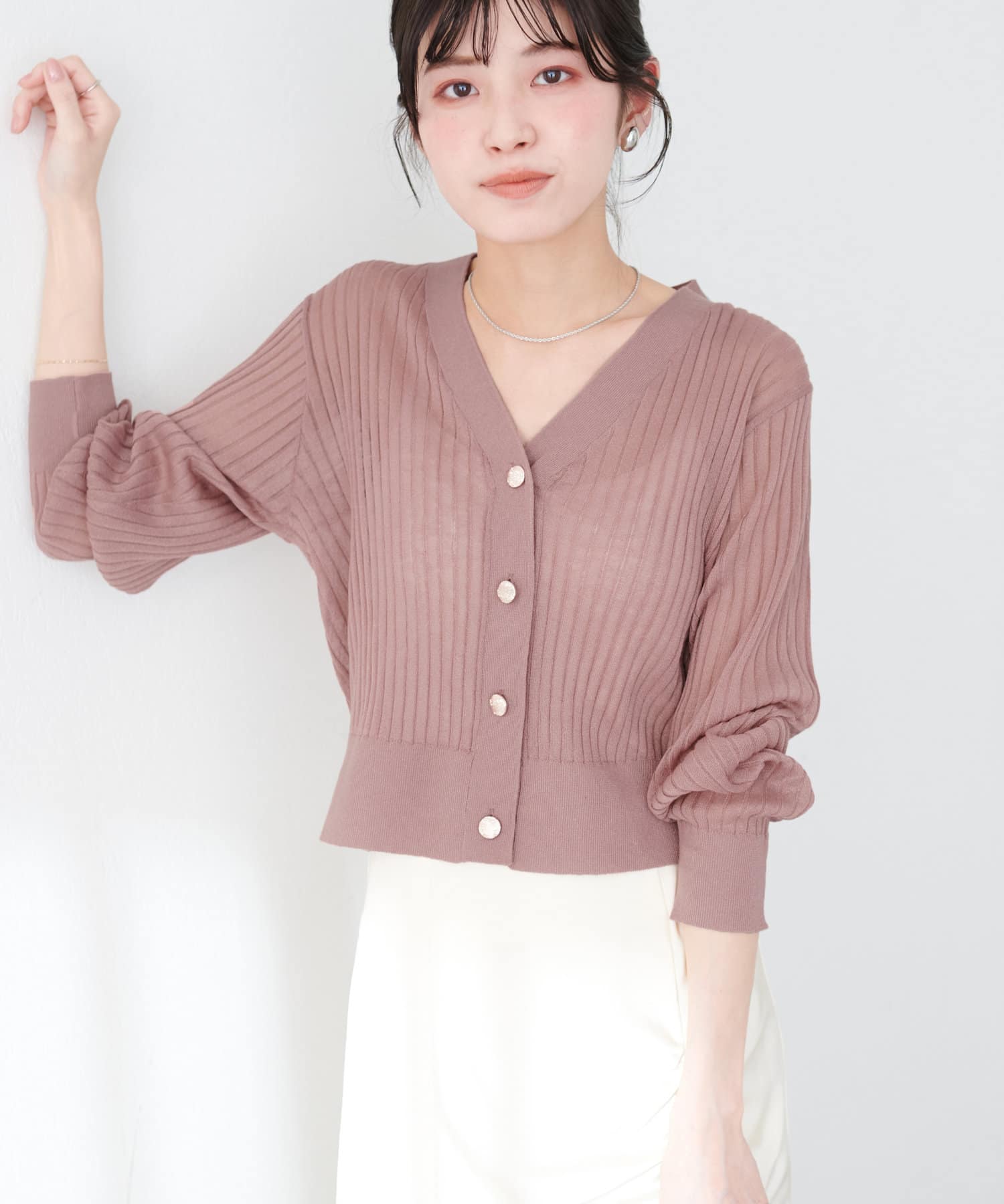 リブシアーニットカーディガン