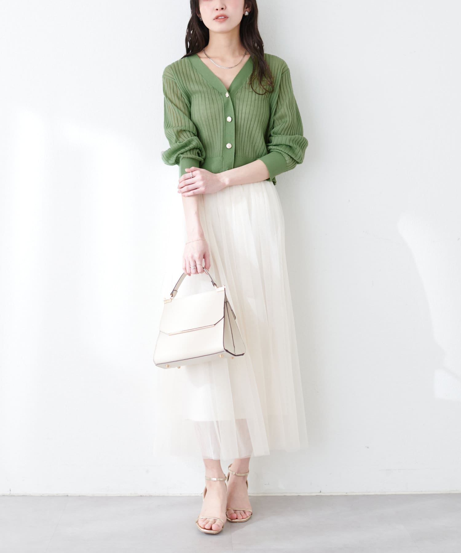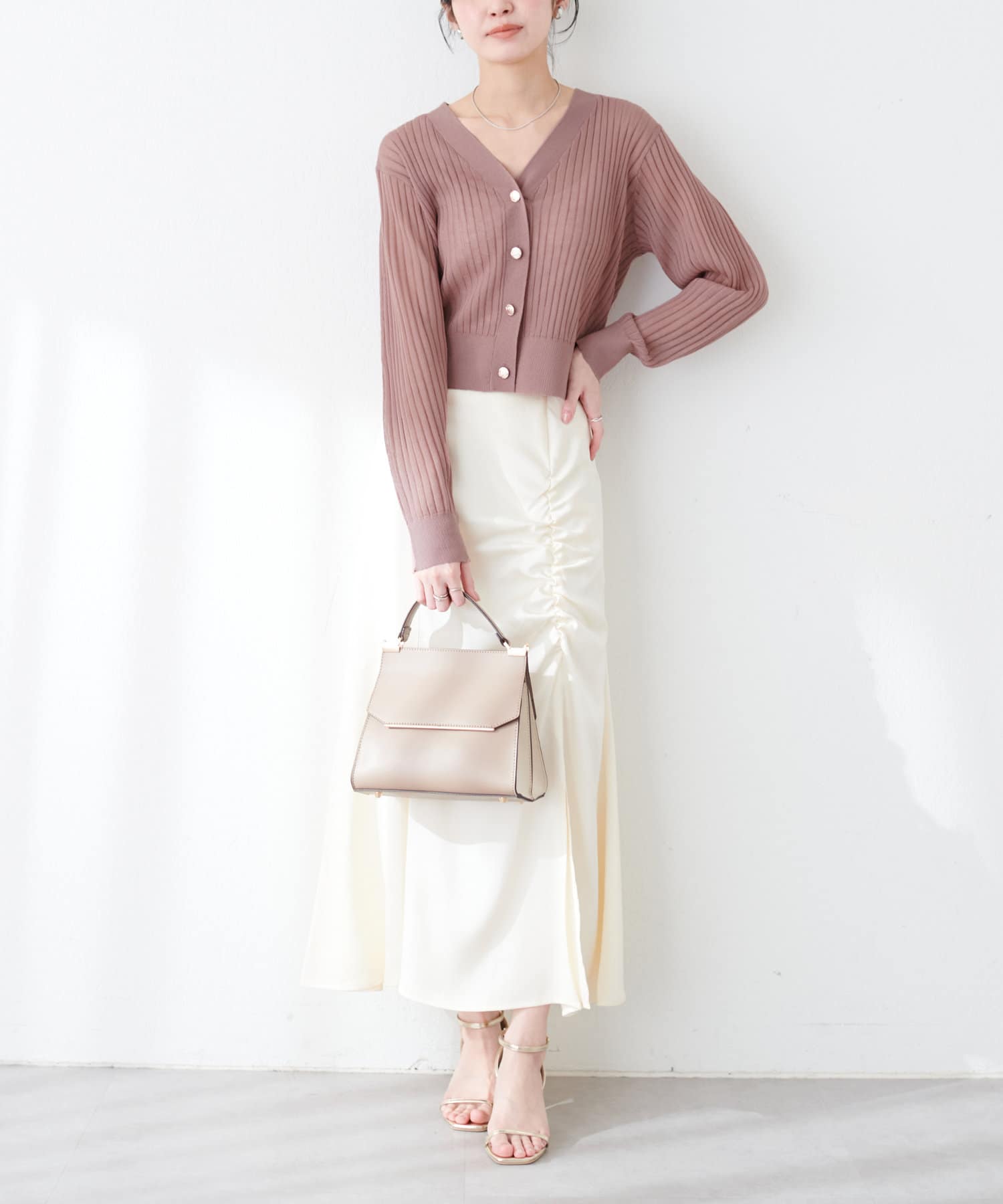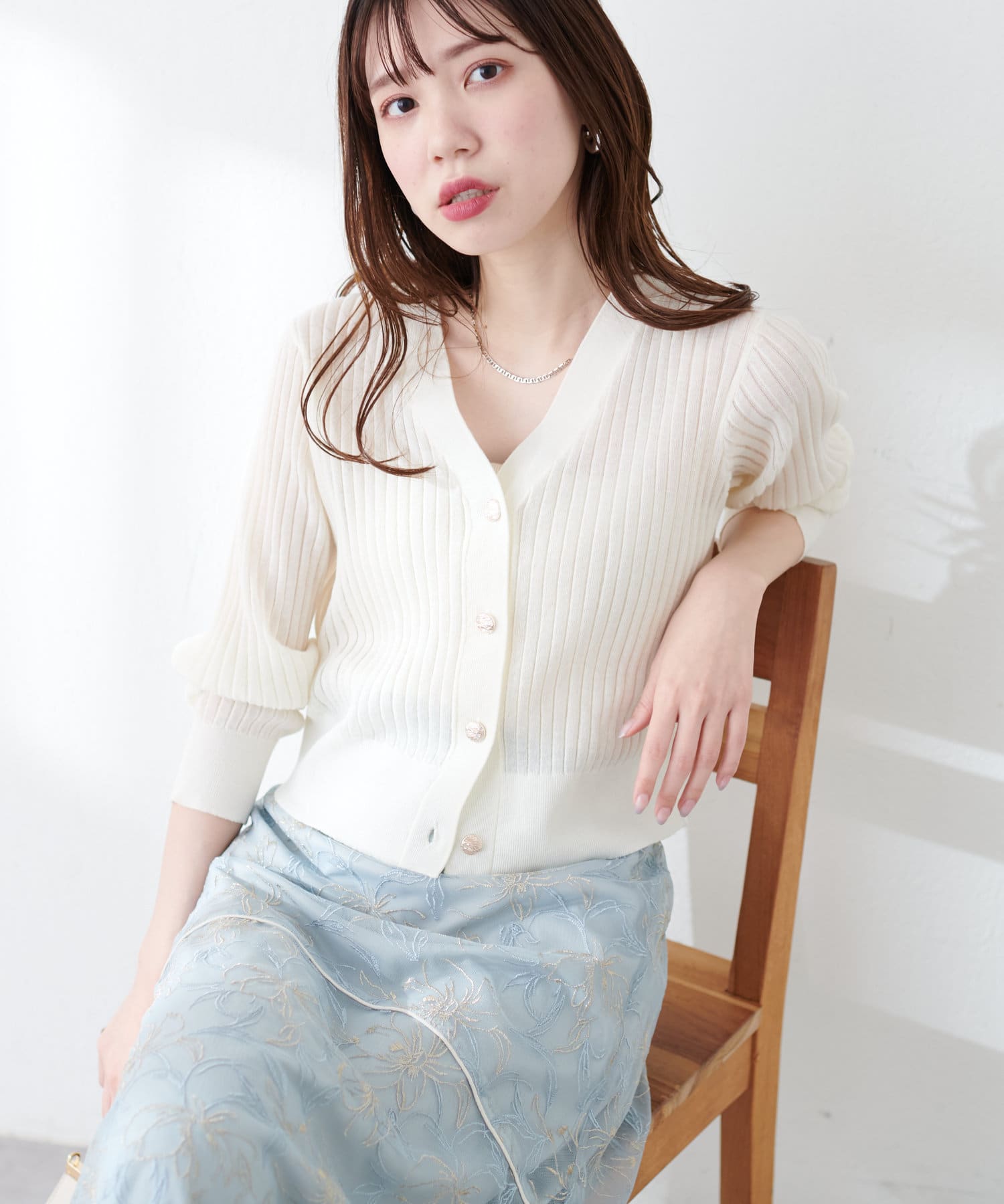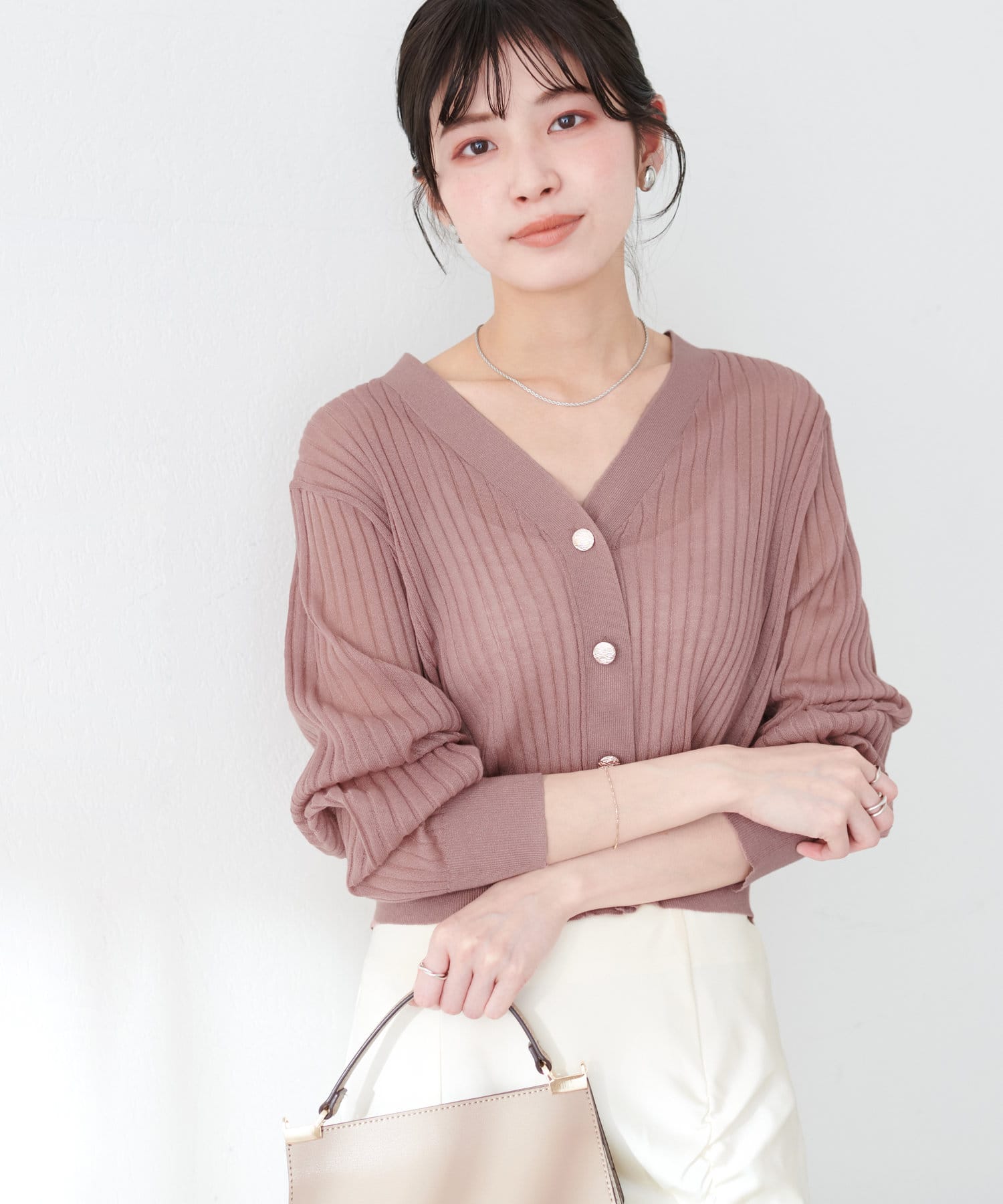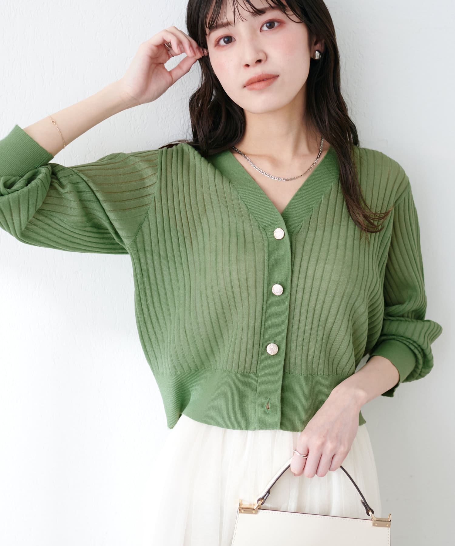 リブシアーニットカーディガン