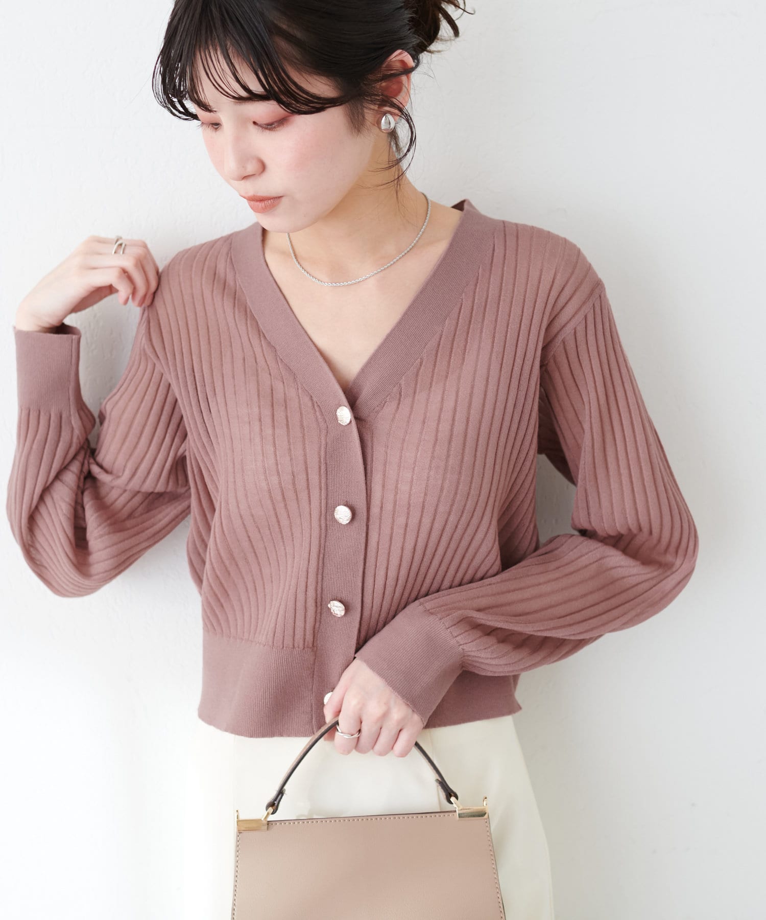 シンプルで大人っぽいリブカーディガン