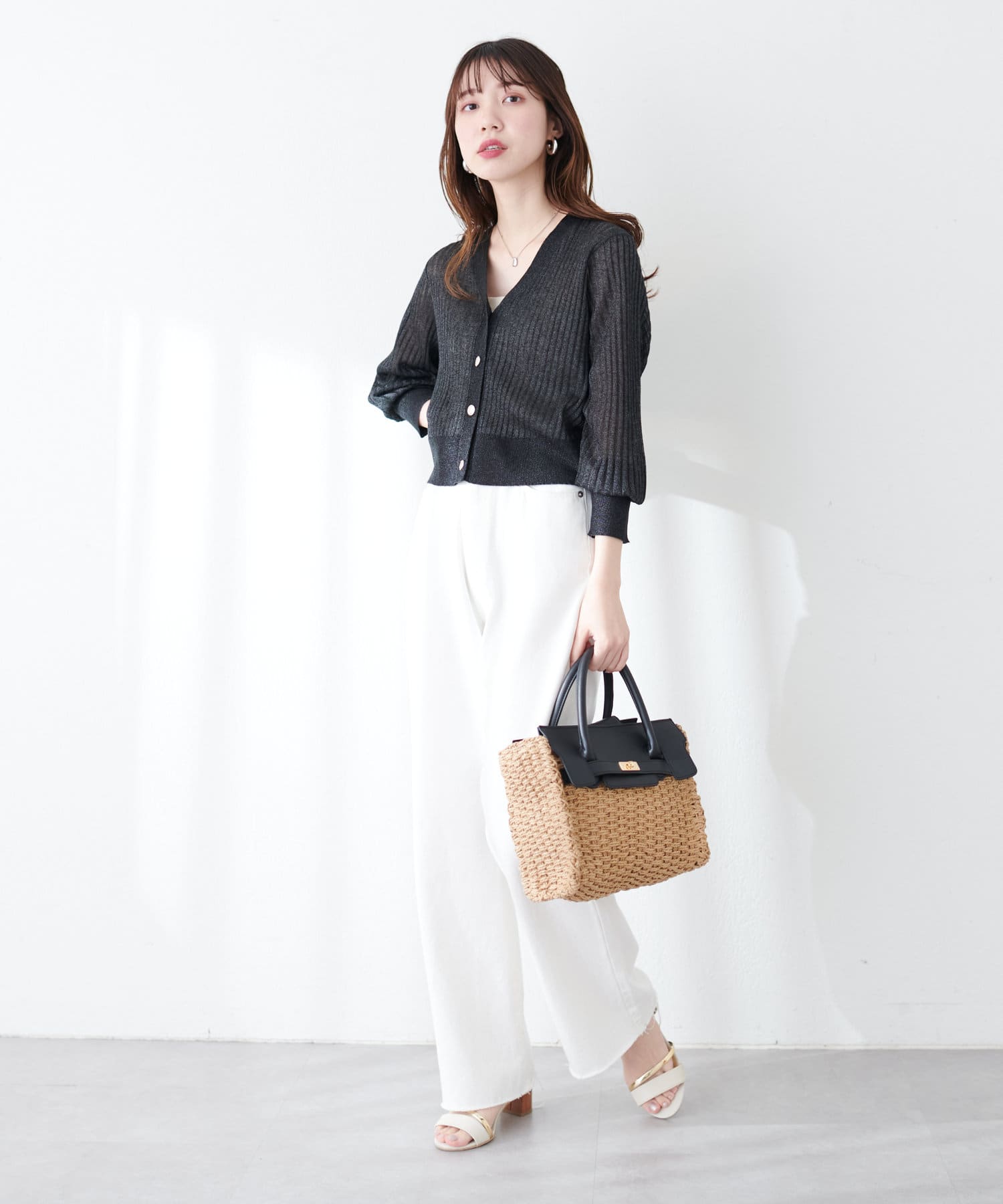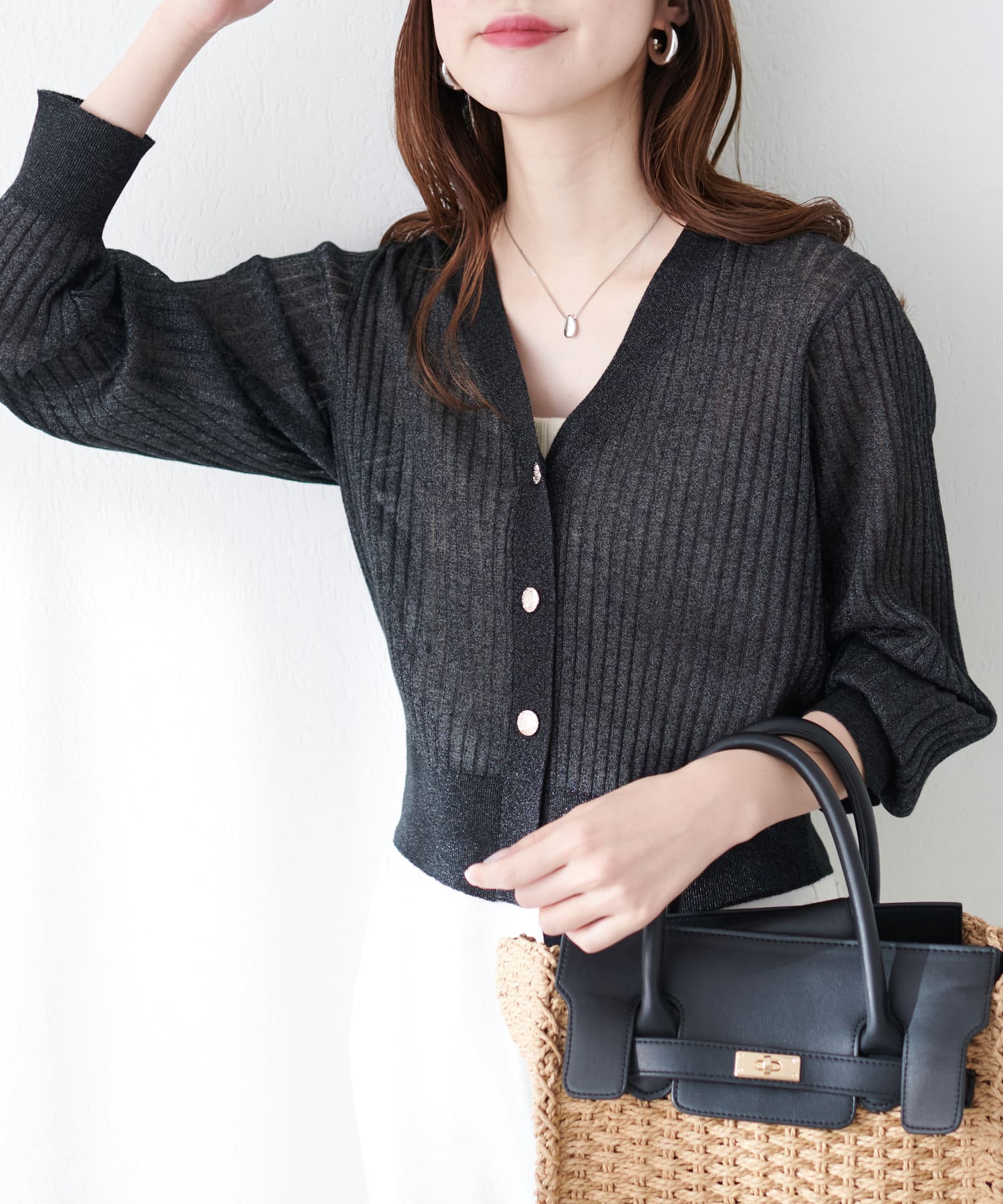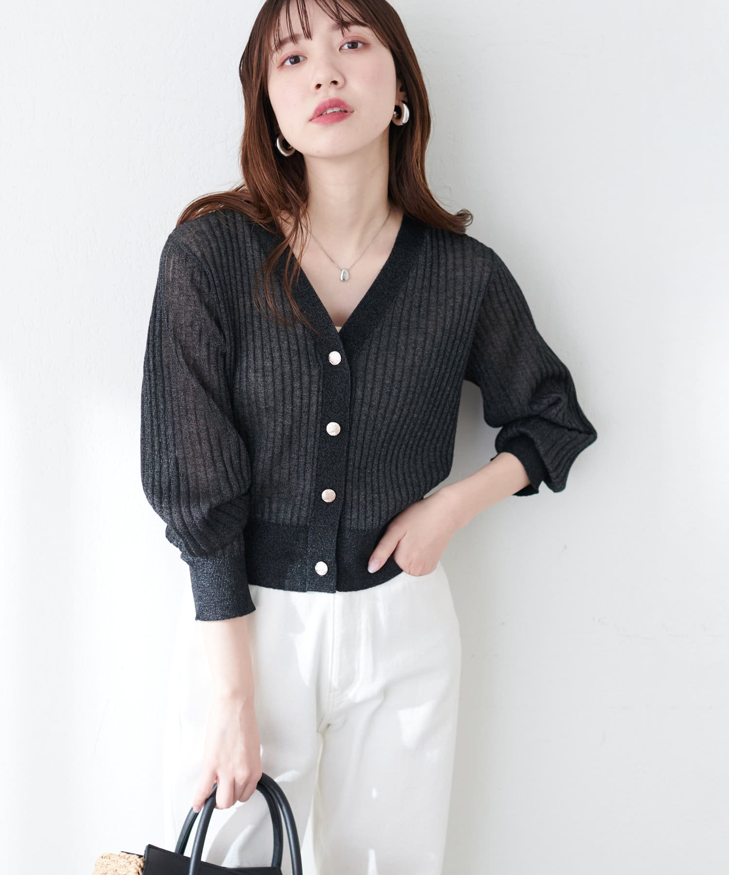 程よくきらきらとしたラメが散りばめられたカーディガン。