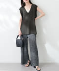 スカートならタイトやマーメード、腰回りがすっきりしたシルエットのものと 合わせていただくのがおすすめです。