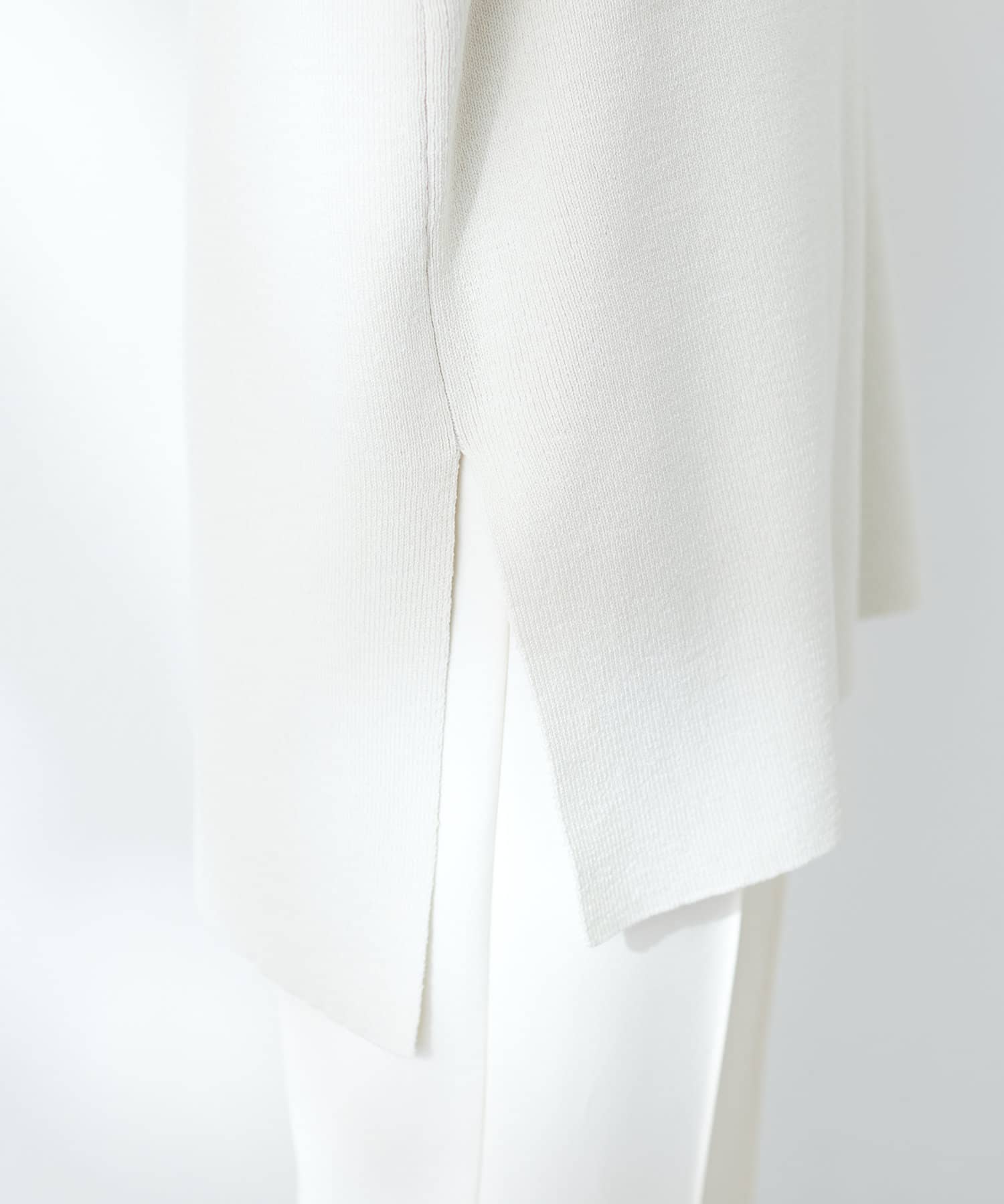リブではなくフラットな生地感なのでボディラインを拾いにくくなっております。
