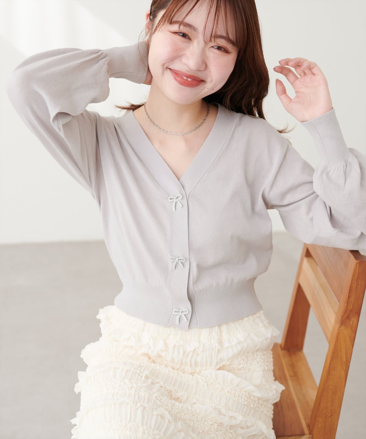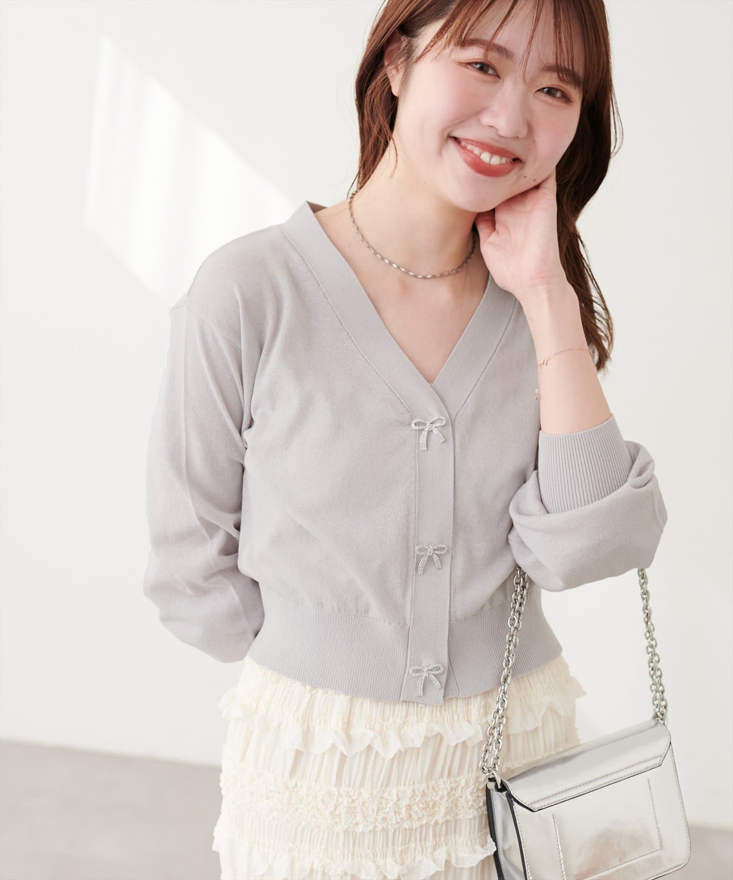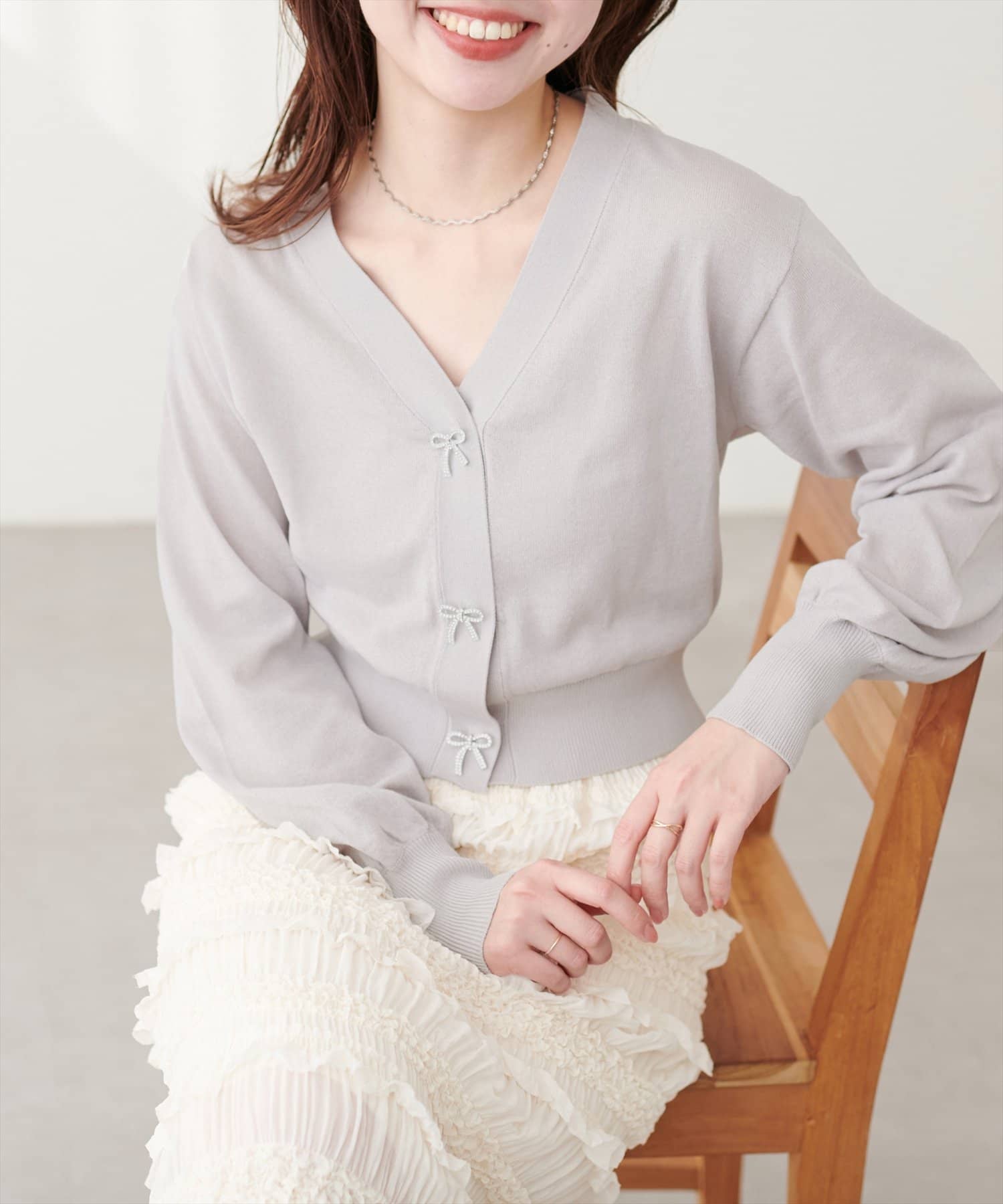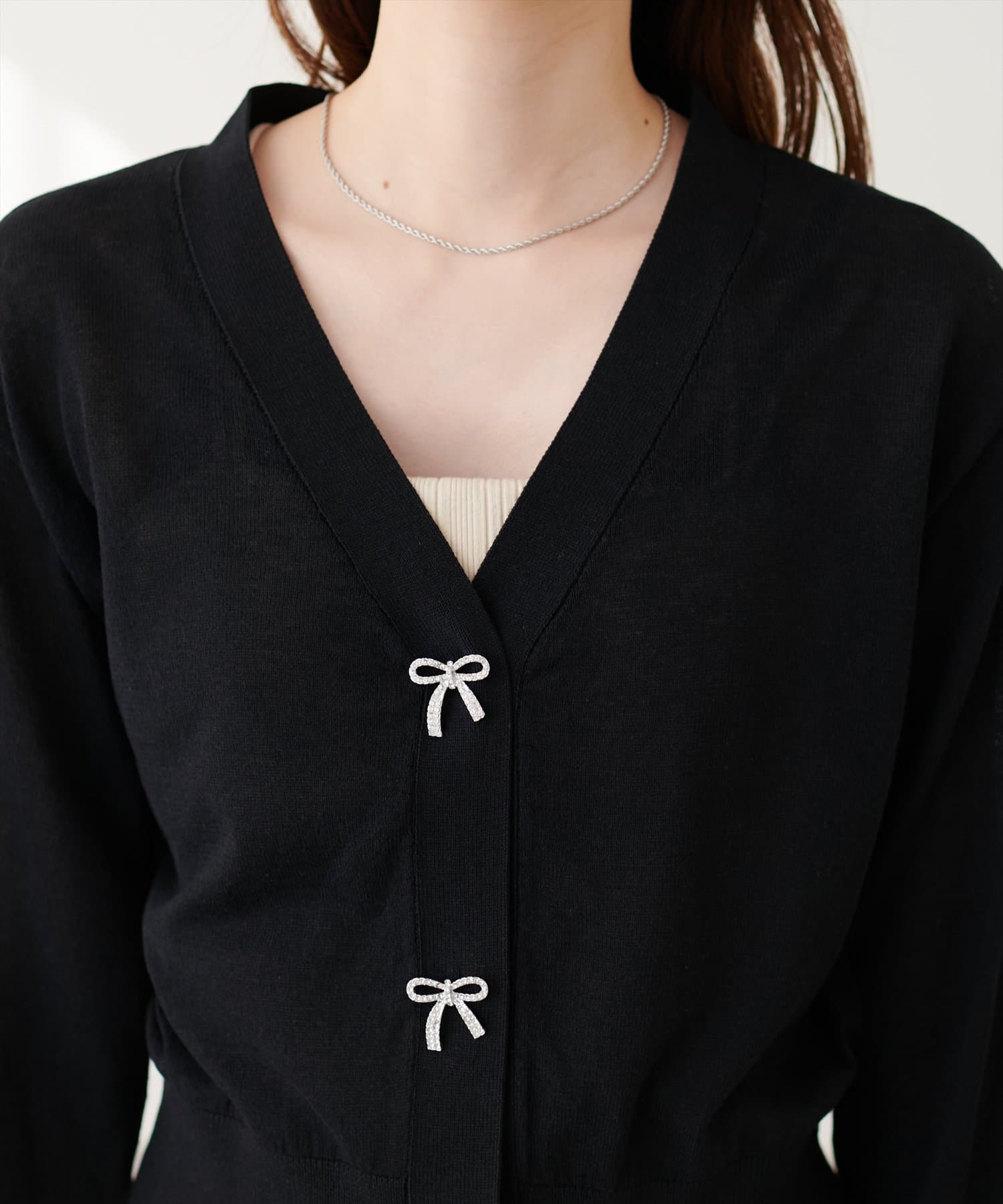 パルクロ限定 /【mizumami】リボンチャームVネックUVカーディガン