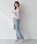 ショート丈アイテムなので、ボトムはハイウエストなものがおすすめです。