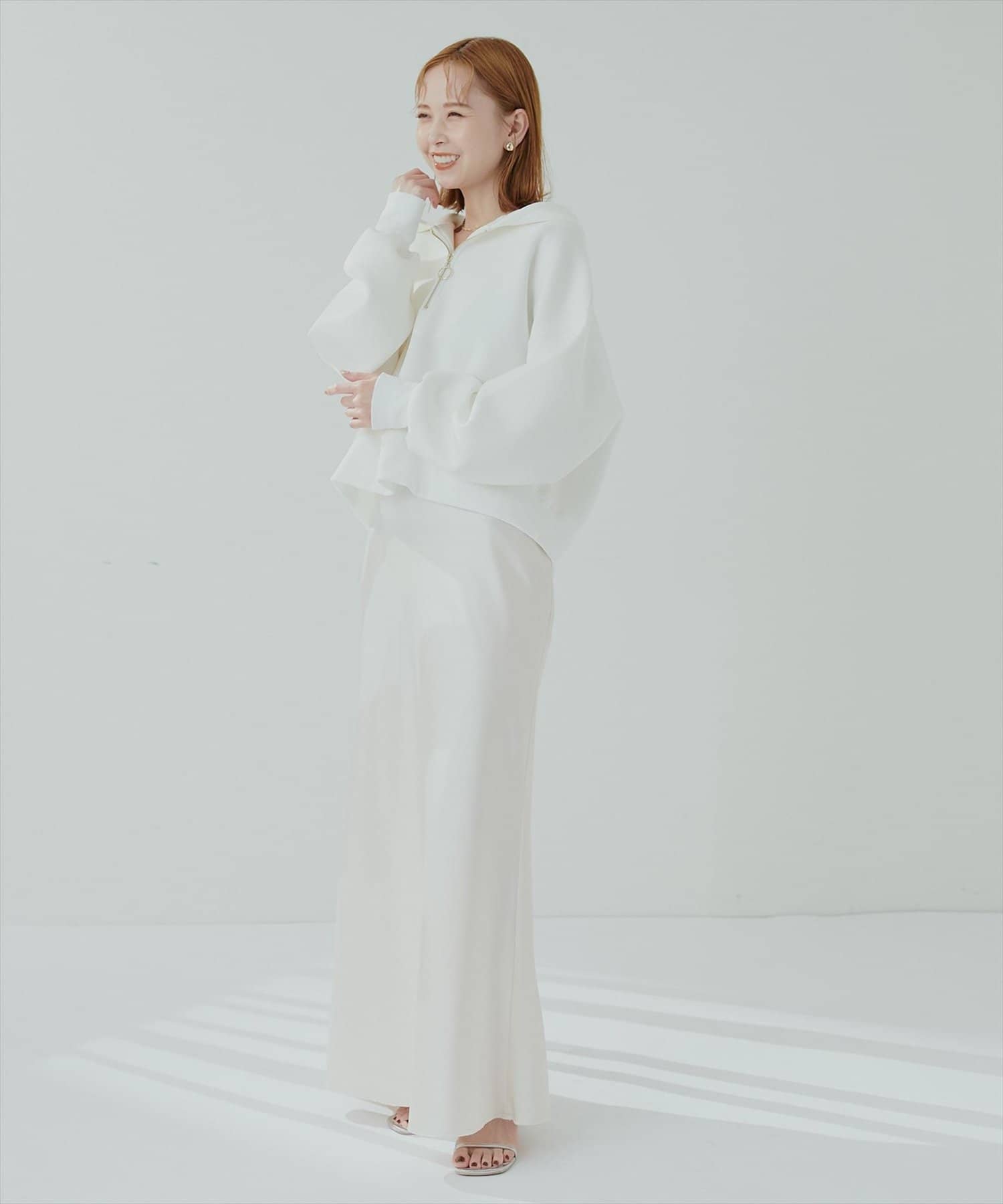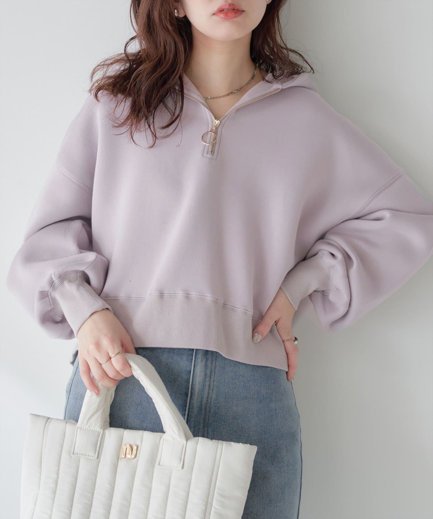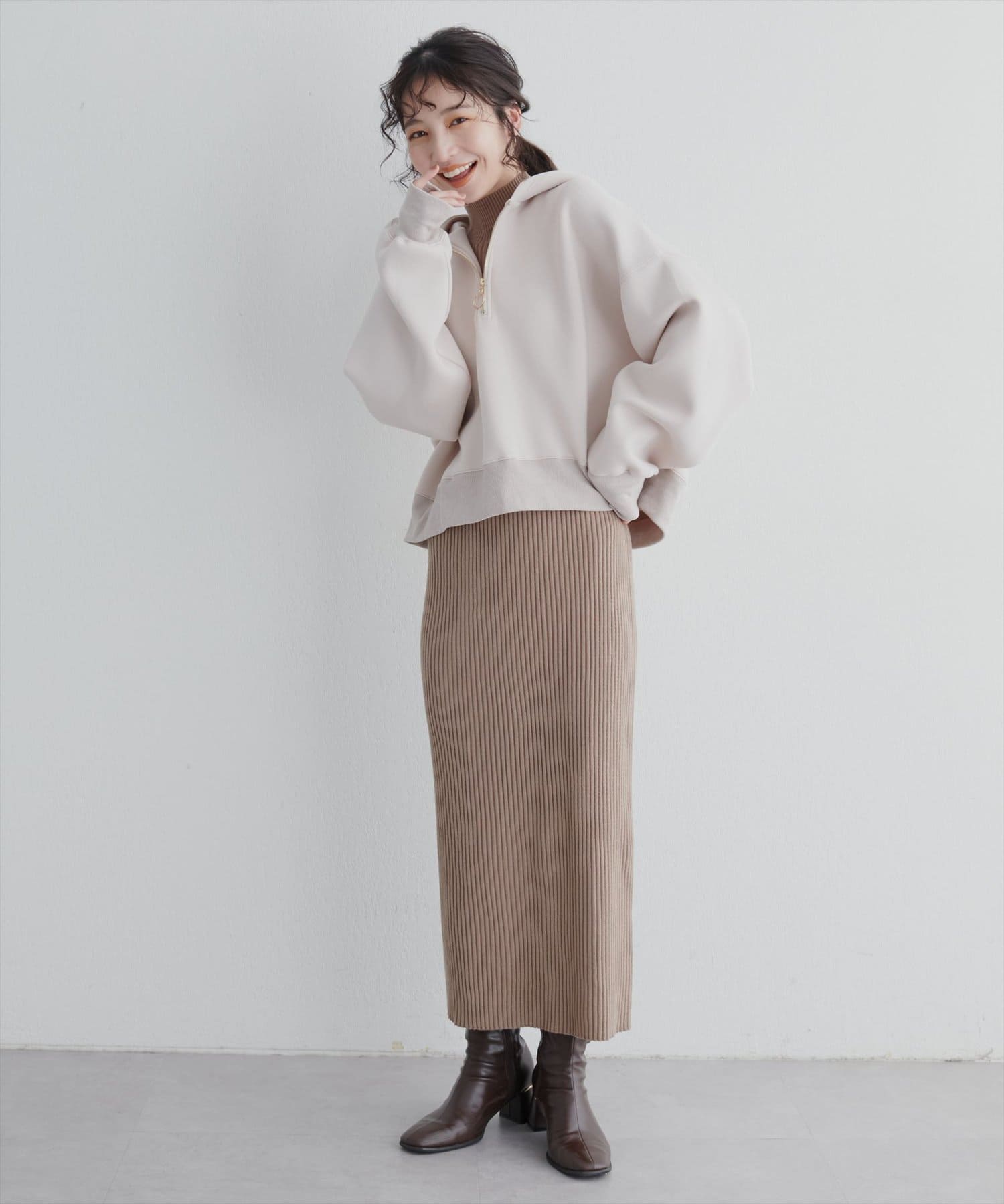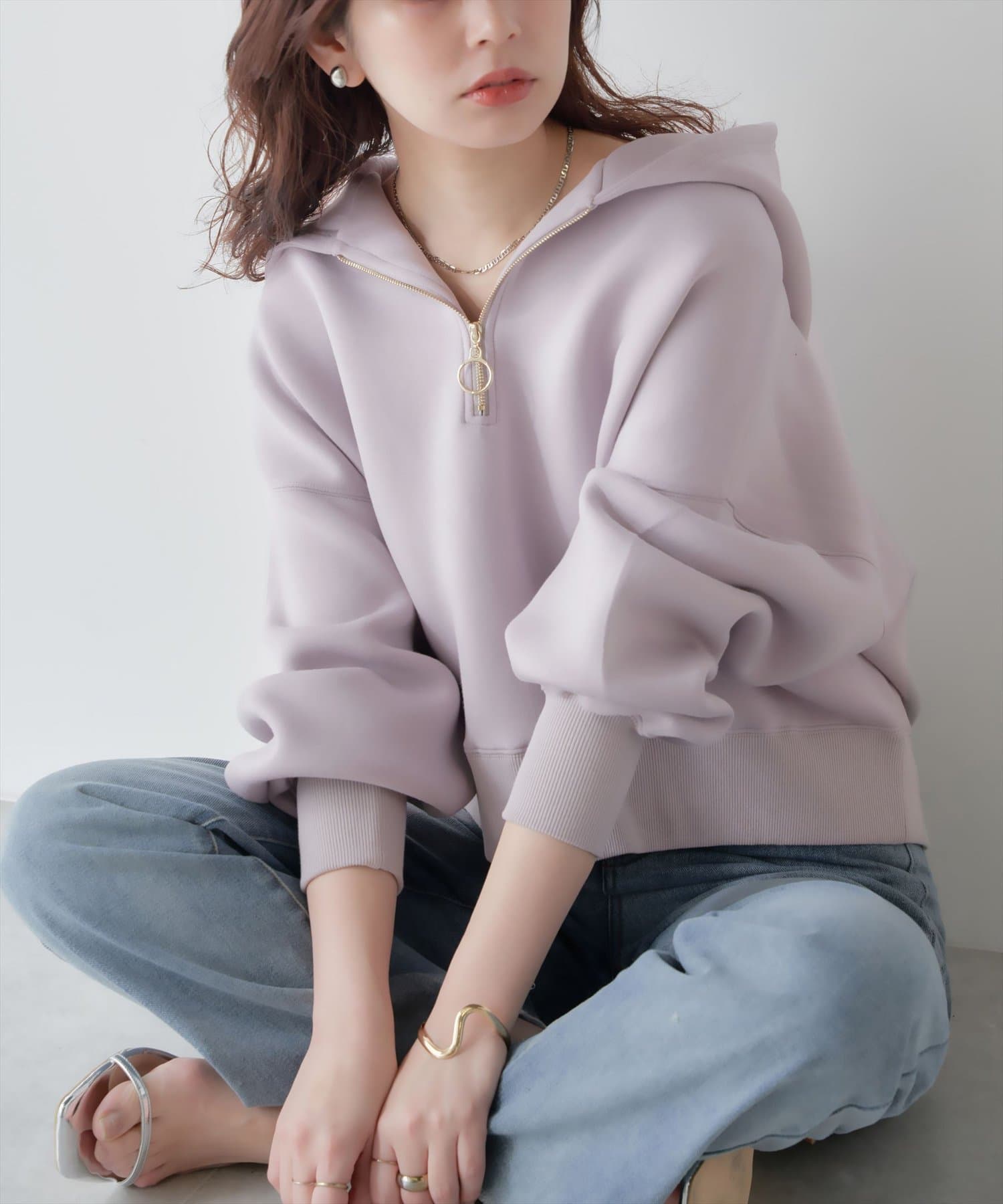 ハーフジップなので、インナーにはハイネックを仕込んでレイヤードを楽しむのがおすすめです。