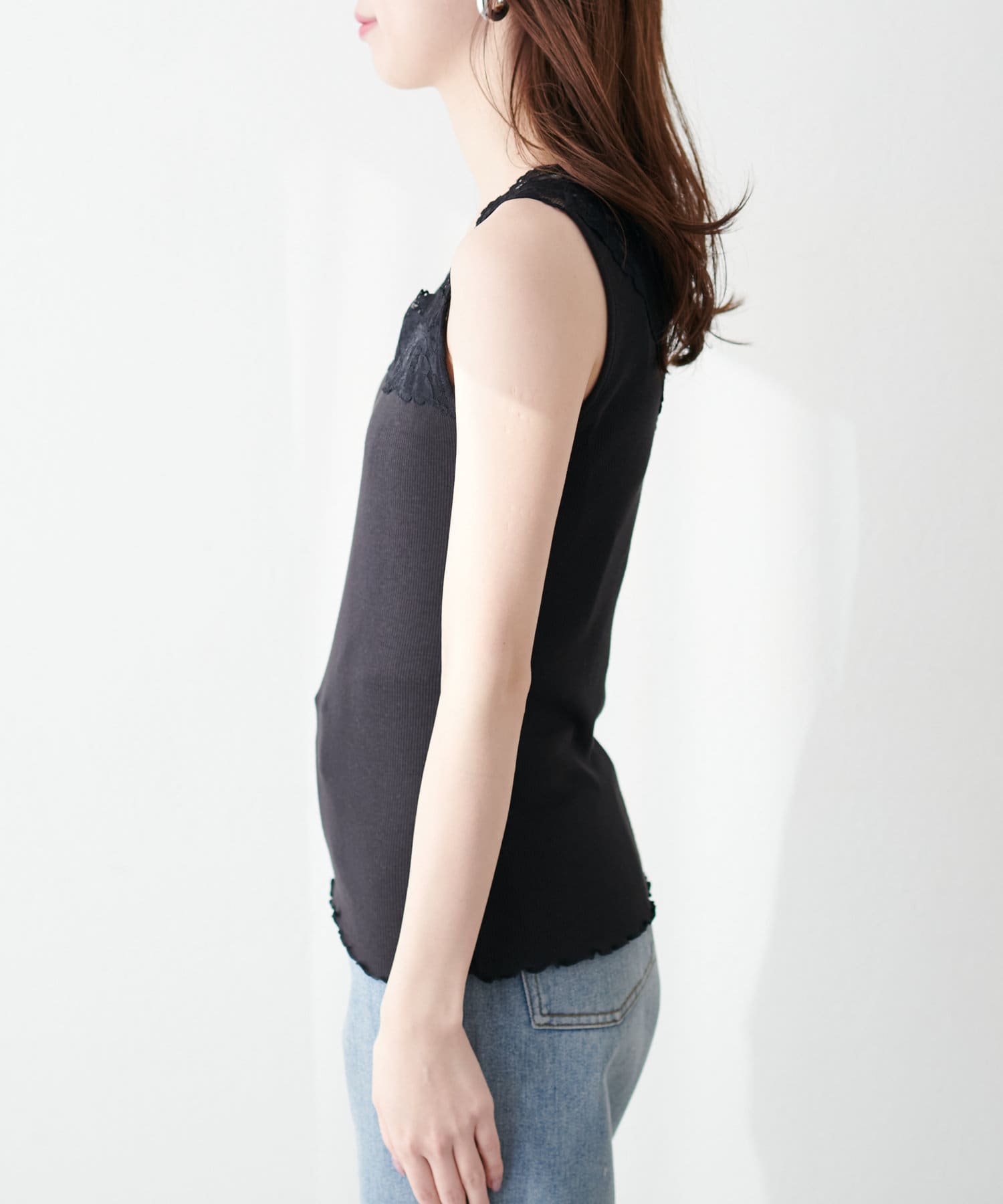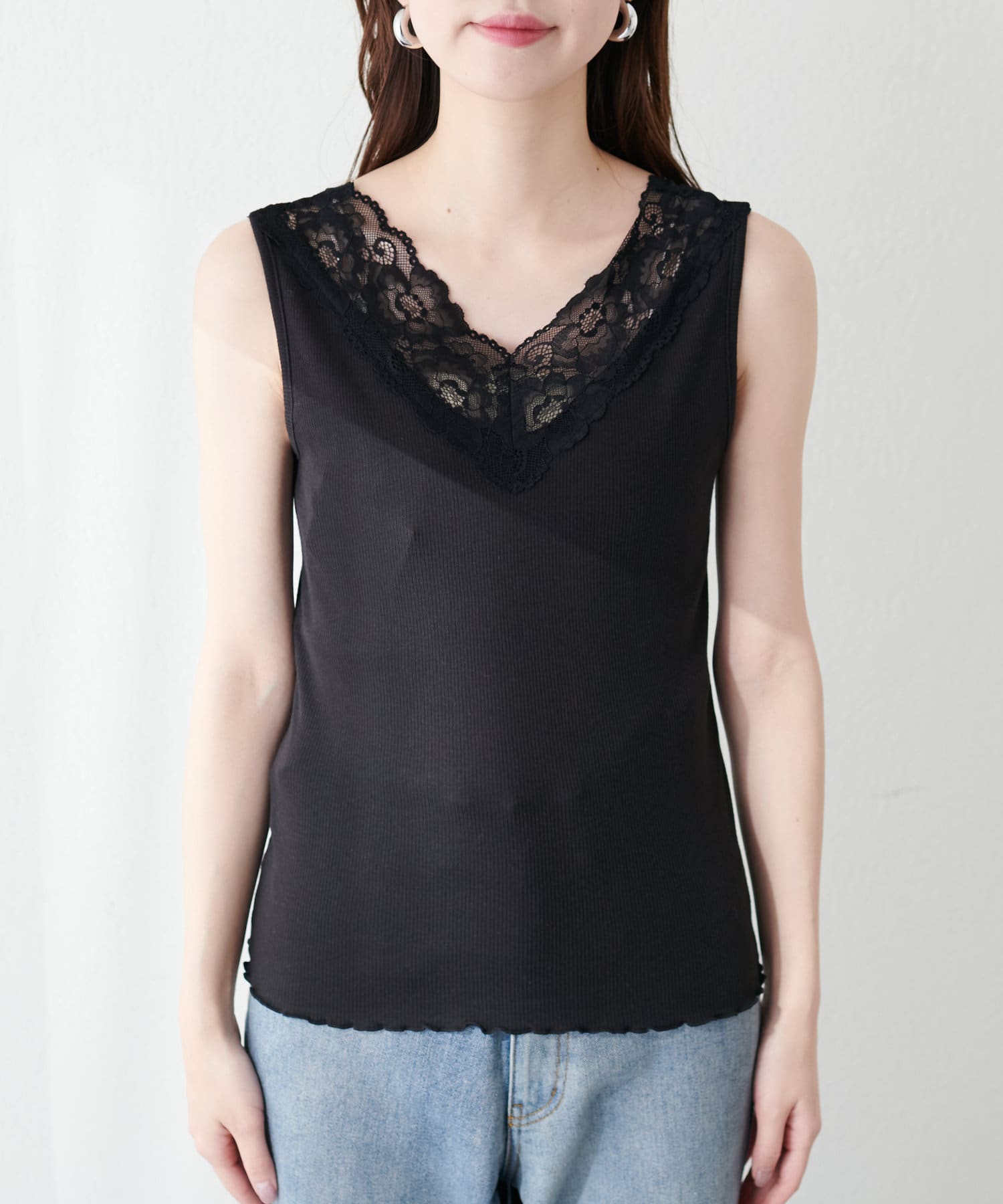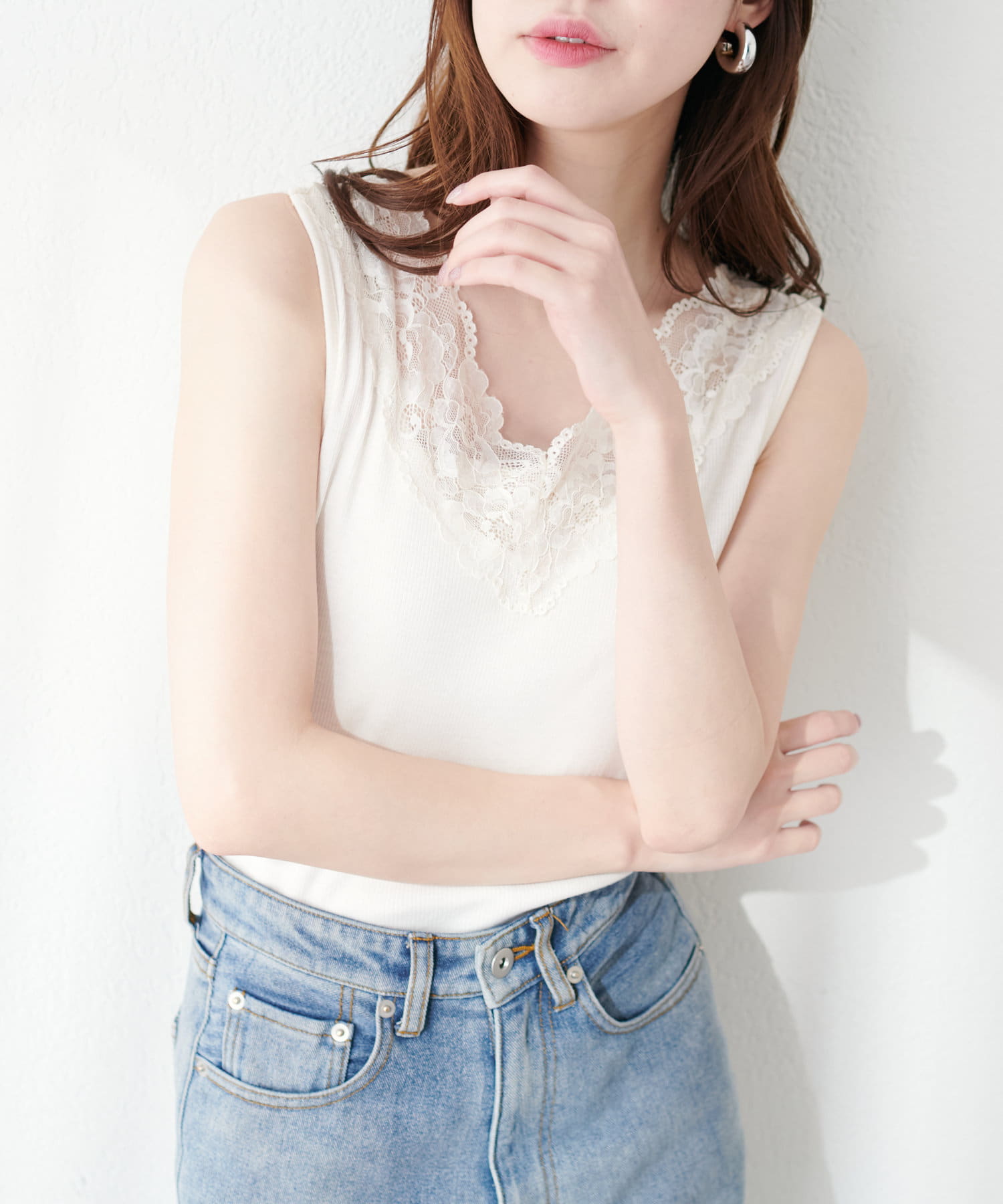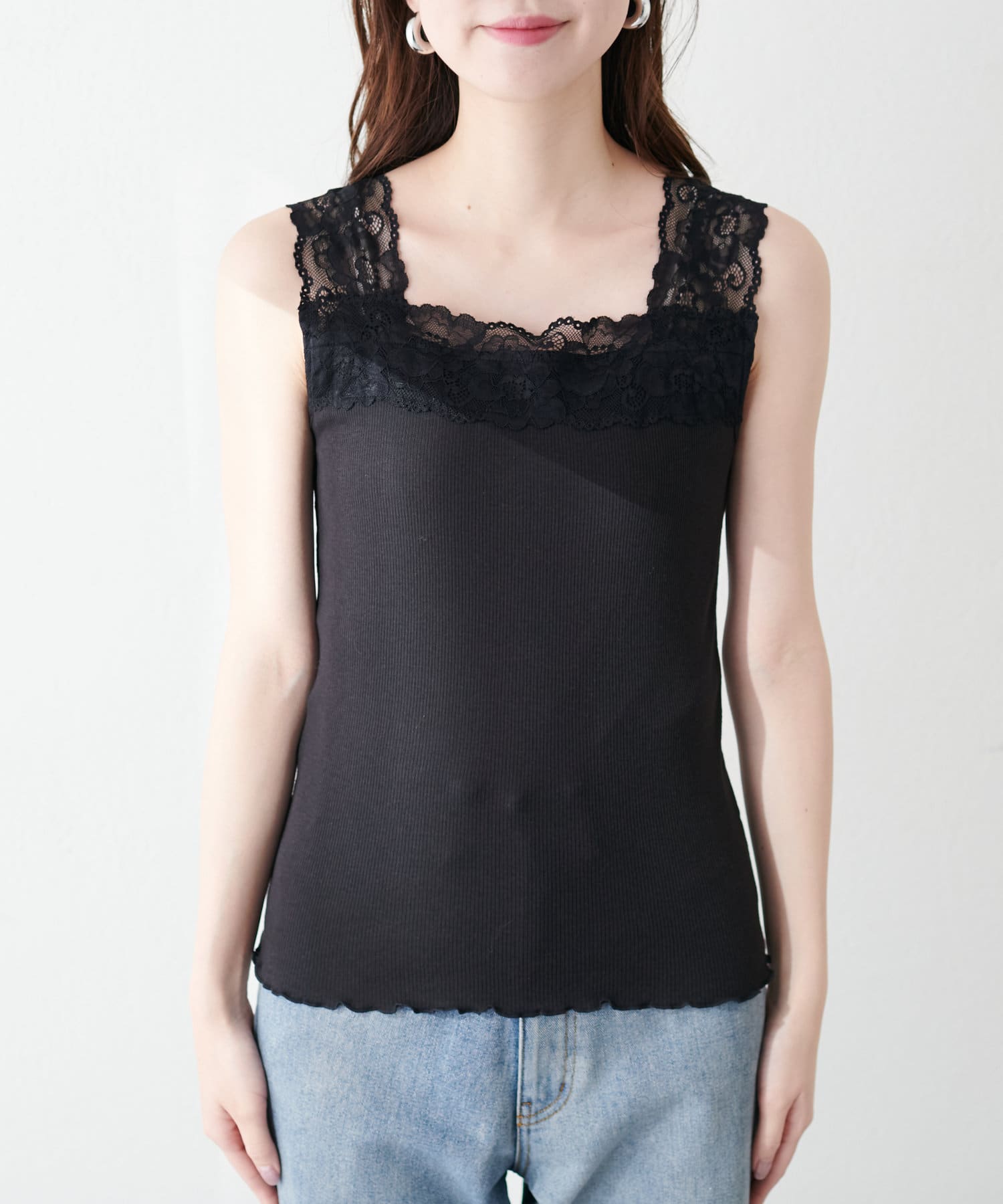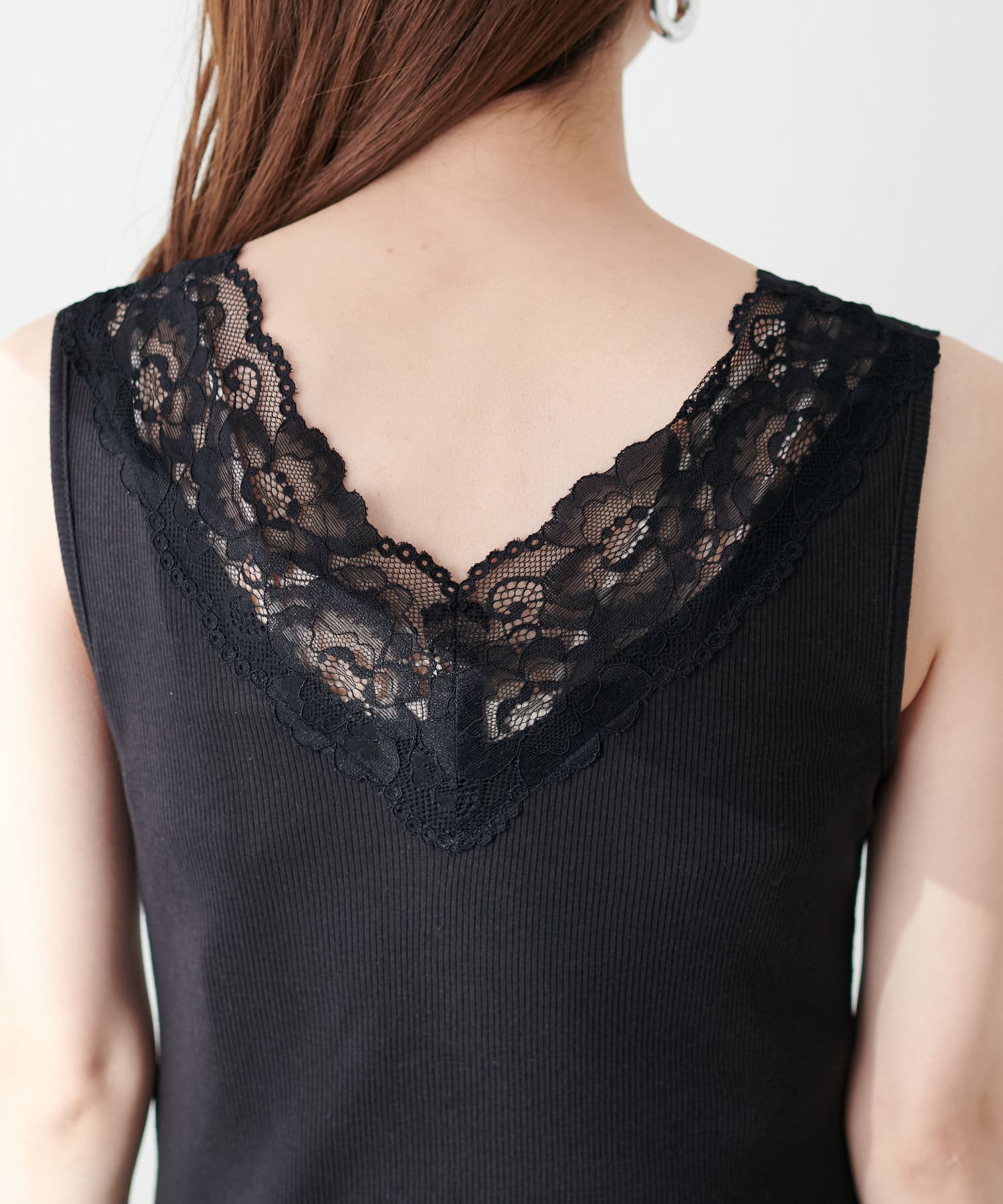 レイヤードスタイルに嬉しいすっきり見えのレースキャミソール。
