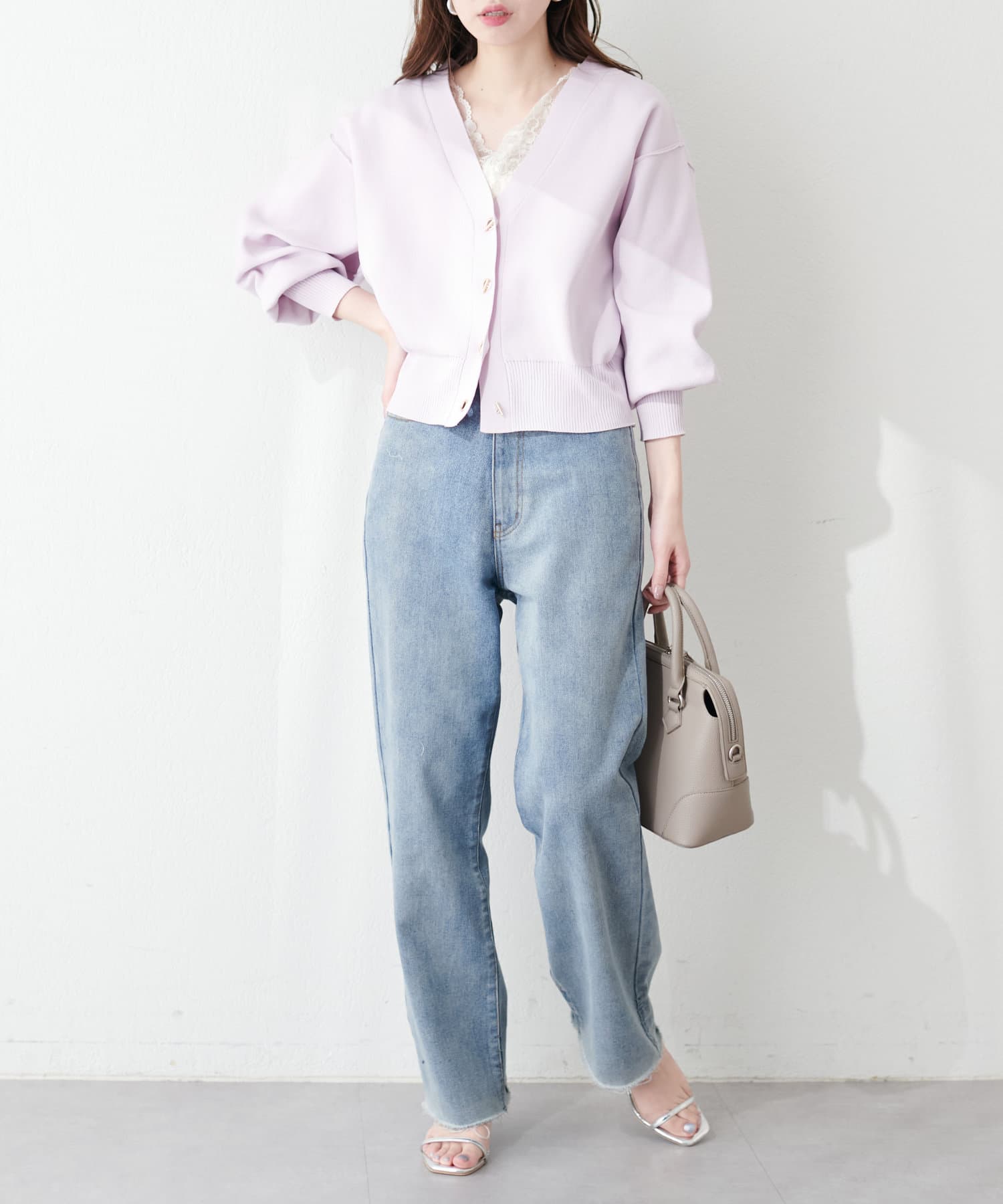 シャツやカーディガンをさらっと羽織るだけで華やかなコーディネートが完成します。