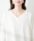 深いVではなくやや浅めにしたことで、お顔周りをすっきりと見せながらインナーが見えない絶妙なラインに。