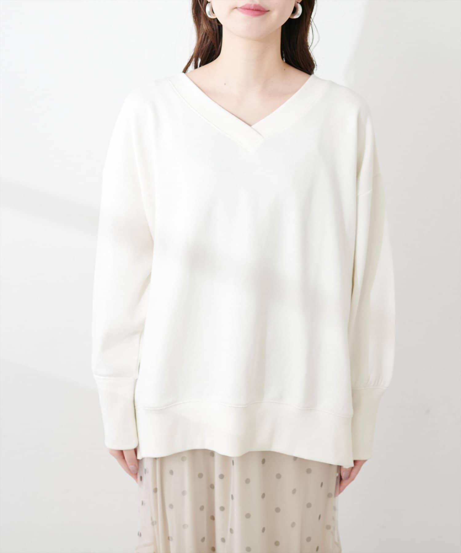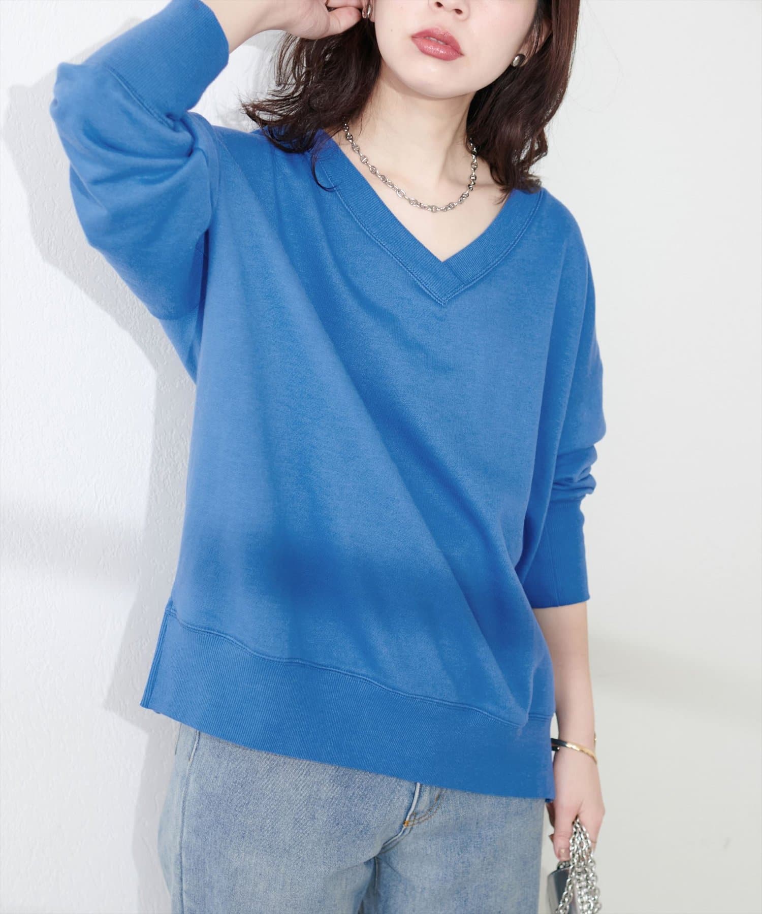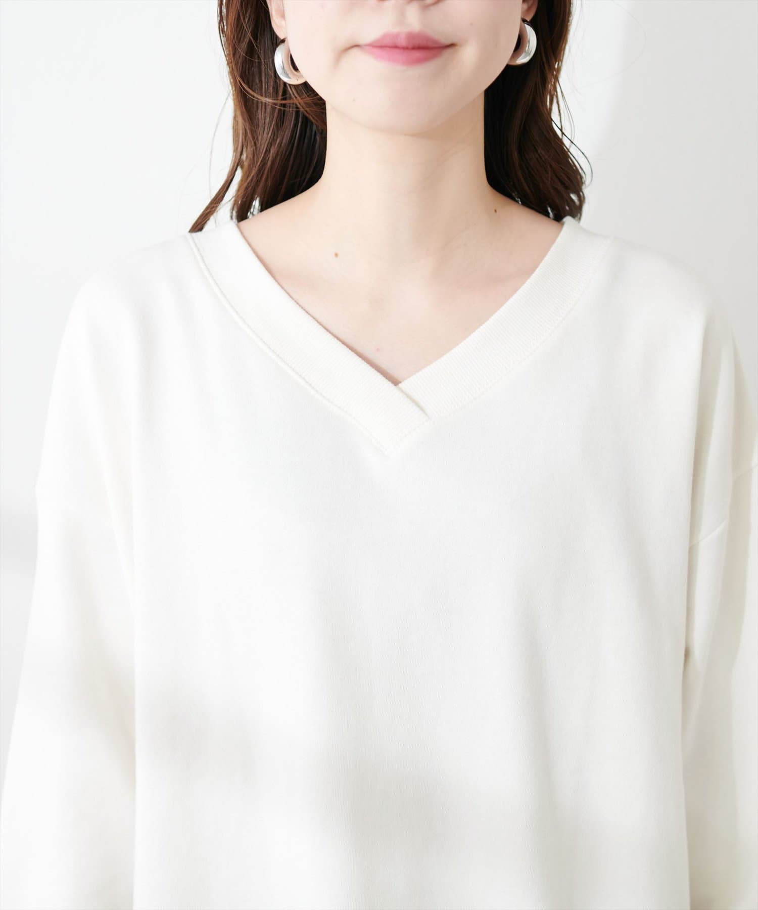 ざっくりとしたVネックが印象的な裏毛プルオーバー。