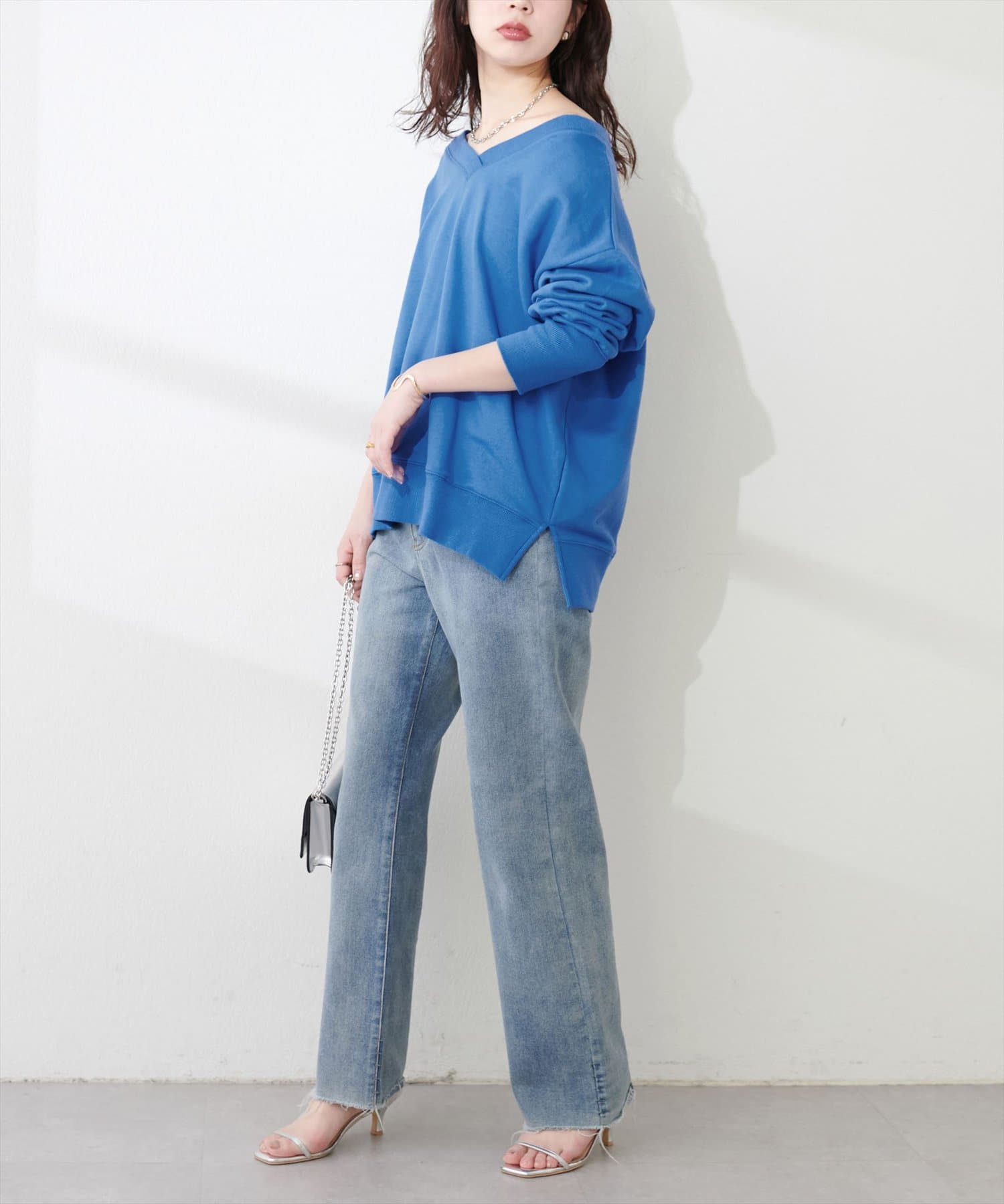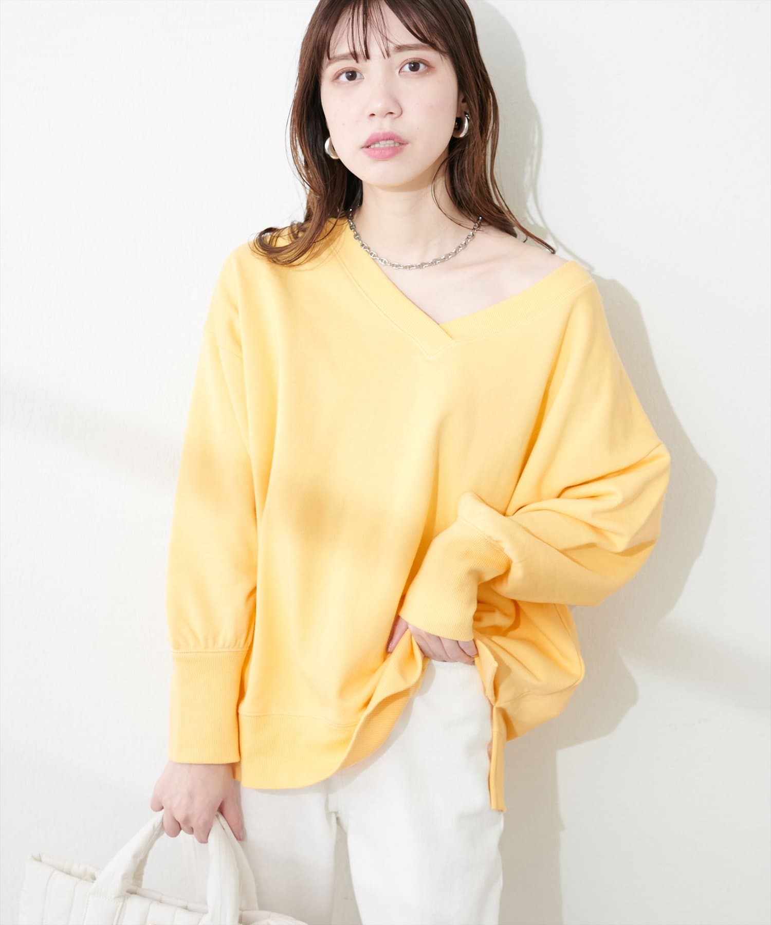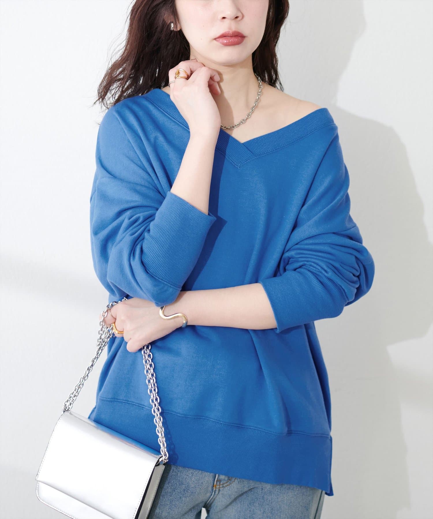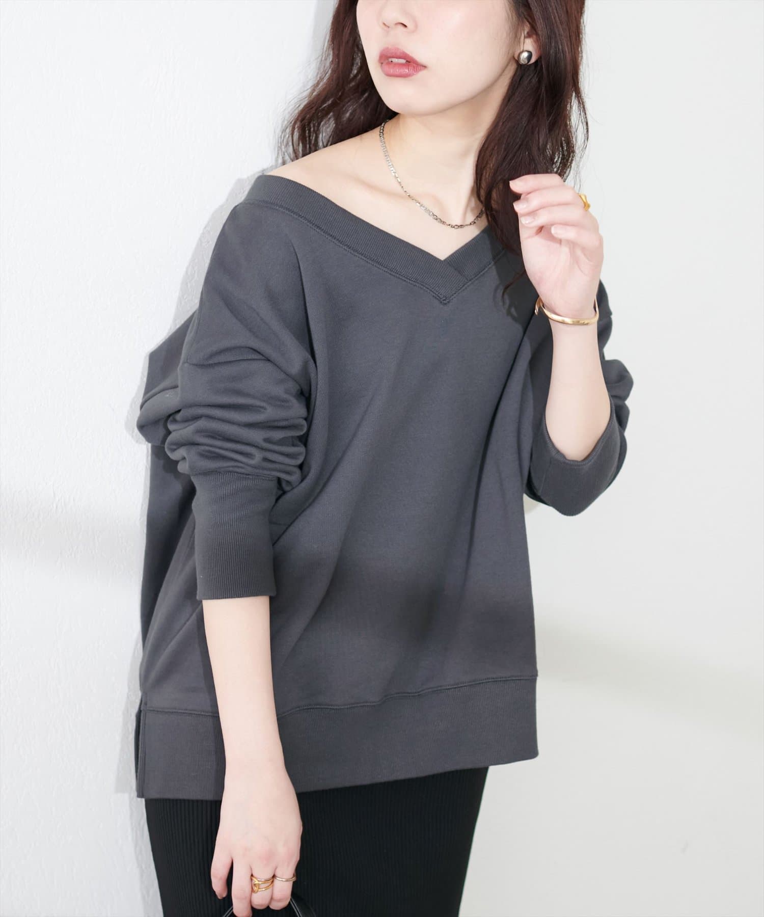 ざっくりとしたVネックが印象的な裏毛プルオーバー。
