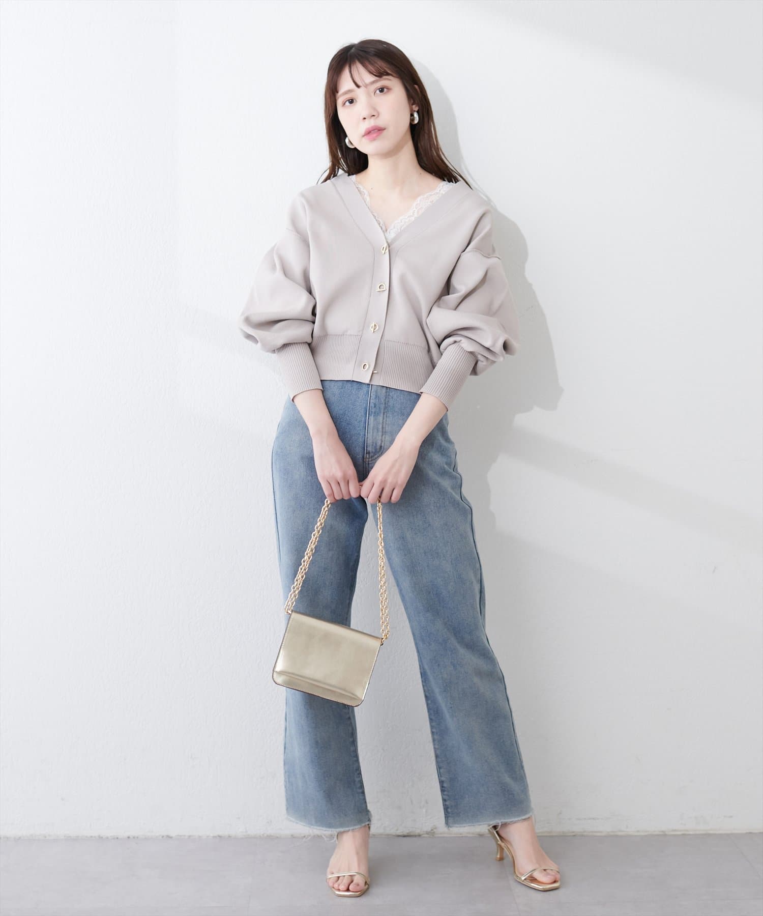 シャツやカーディガンをさらっと羽織るだけで華やかなコーディネートが完成します。