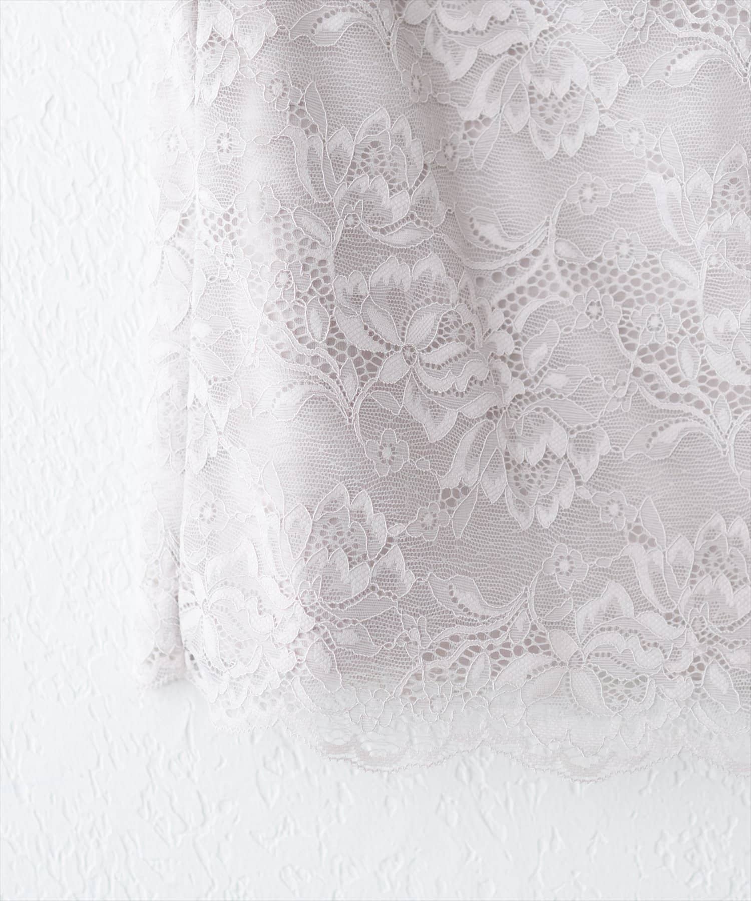 繊細なレースを全体に施した、大人見えする上品なデザイン。
