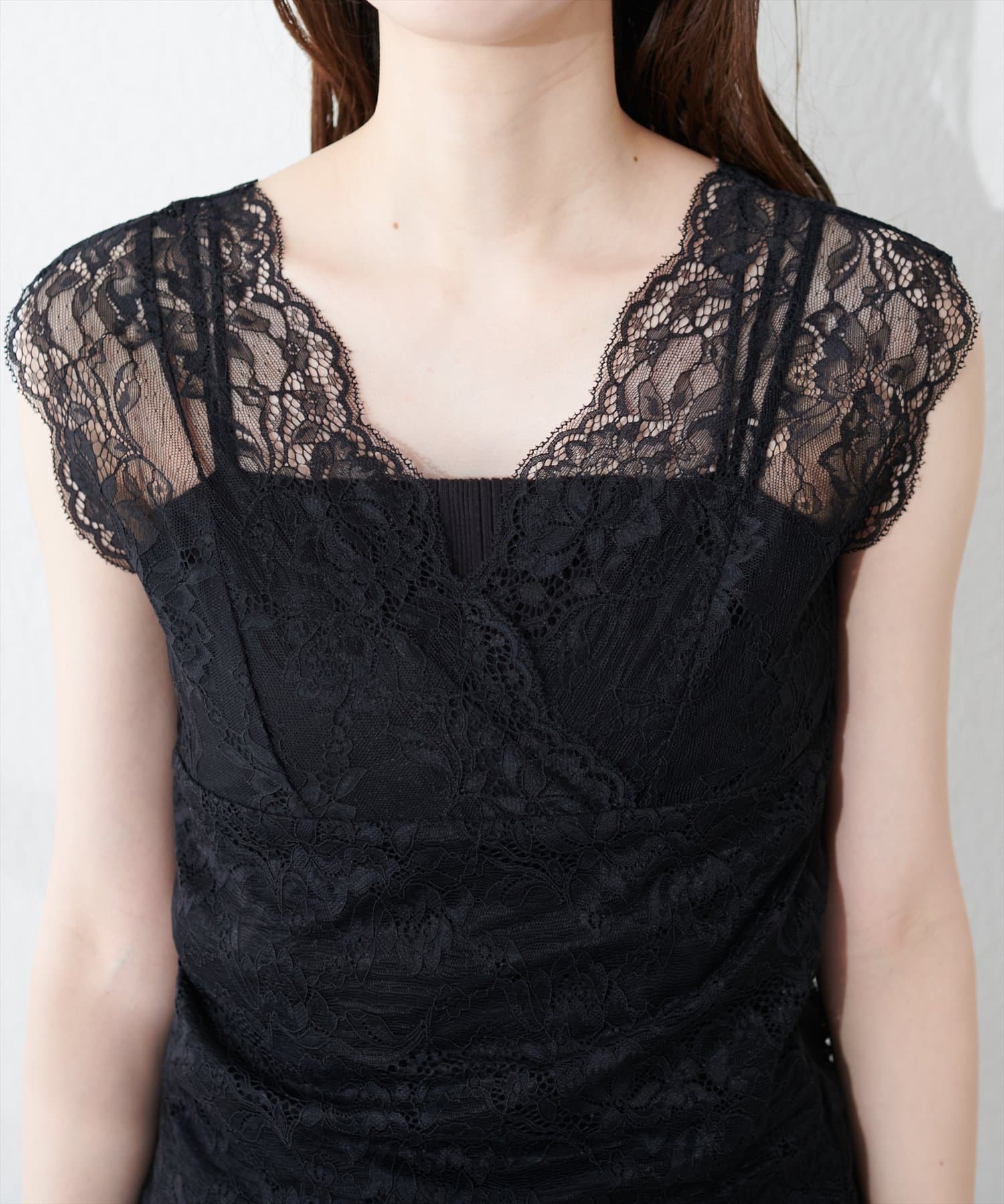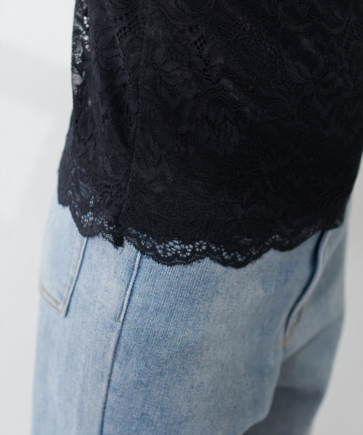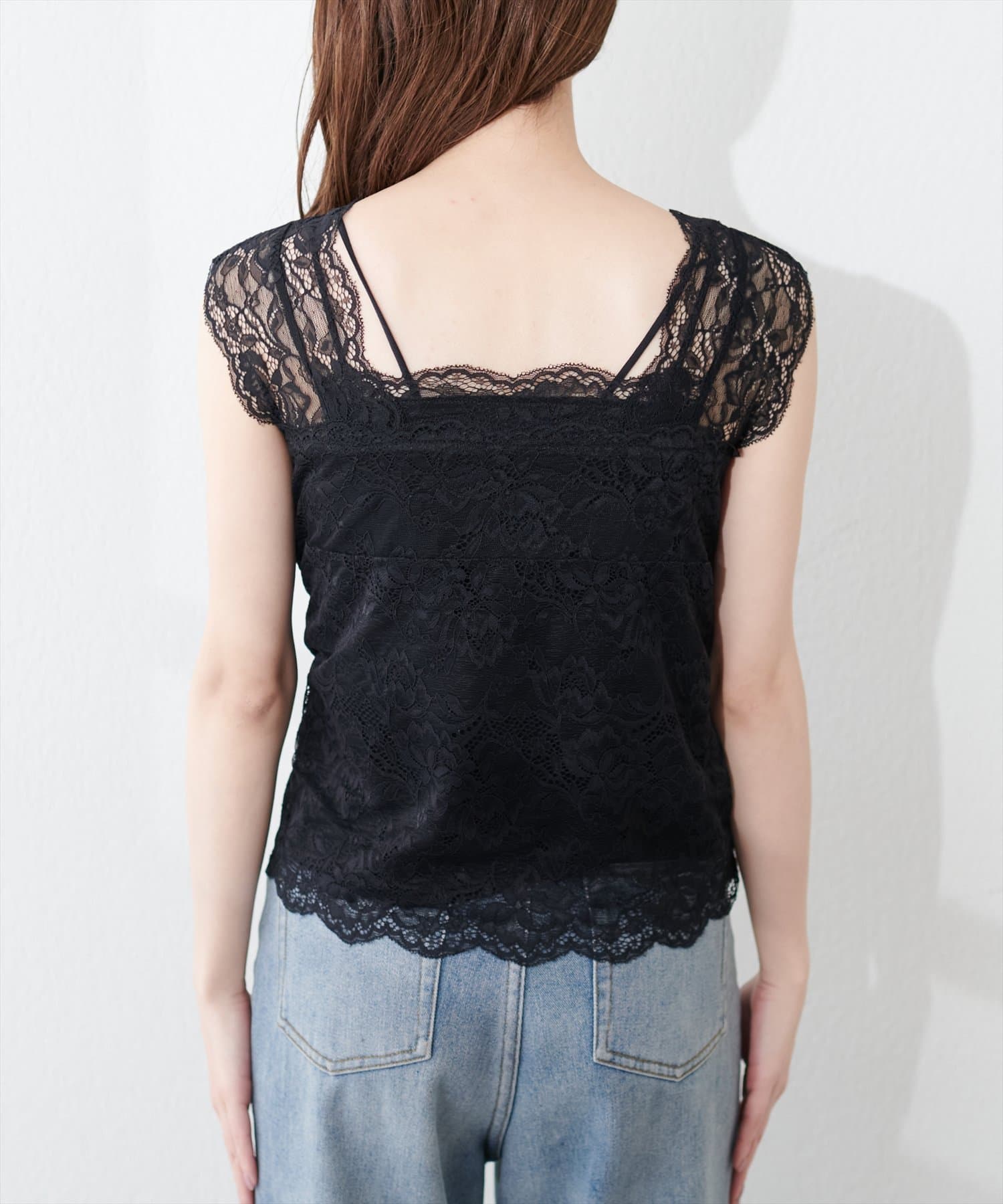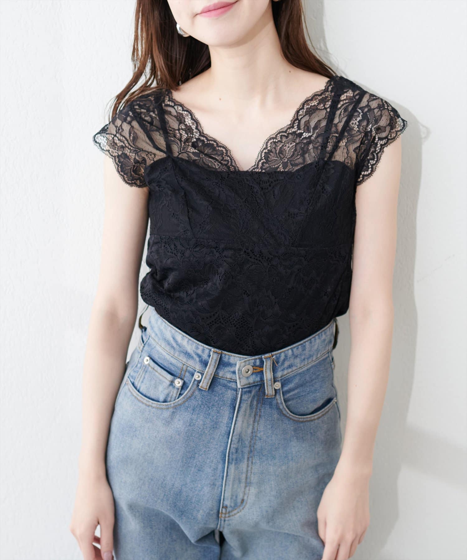 レイヤードスタイルに嬉しいすっきり見えの総レースインナー。