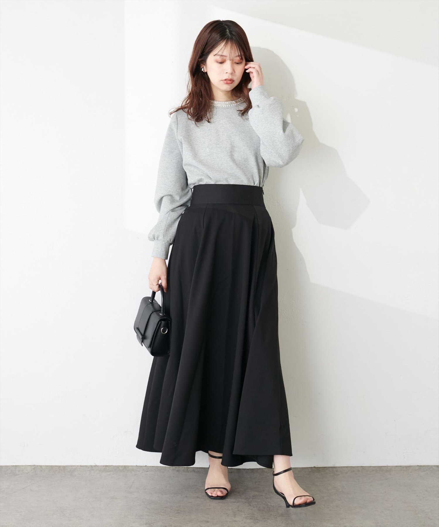 ビジューがとっても可愛いし、品があるからカジュアルのスカートもすごく品のあるものにしてくれる