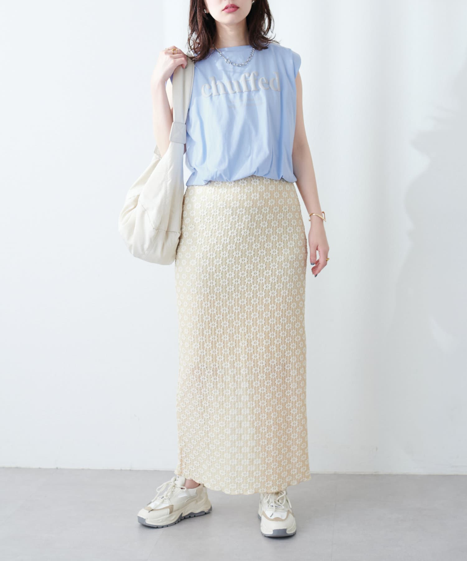 センタープレス入りのスラックスや、光沢感のあるサテンスカートなどきれいめなアイテムと合わせれば、カジュアル過ぎず遊び心の効いた大人コーデに。