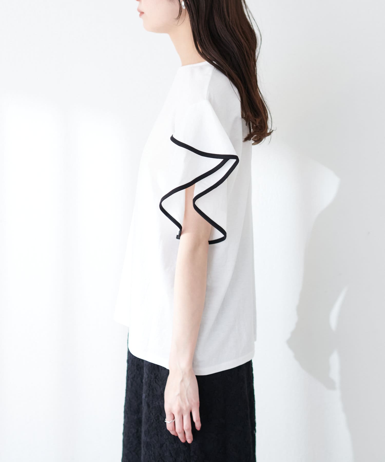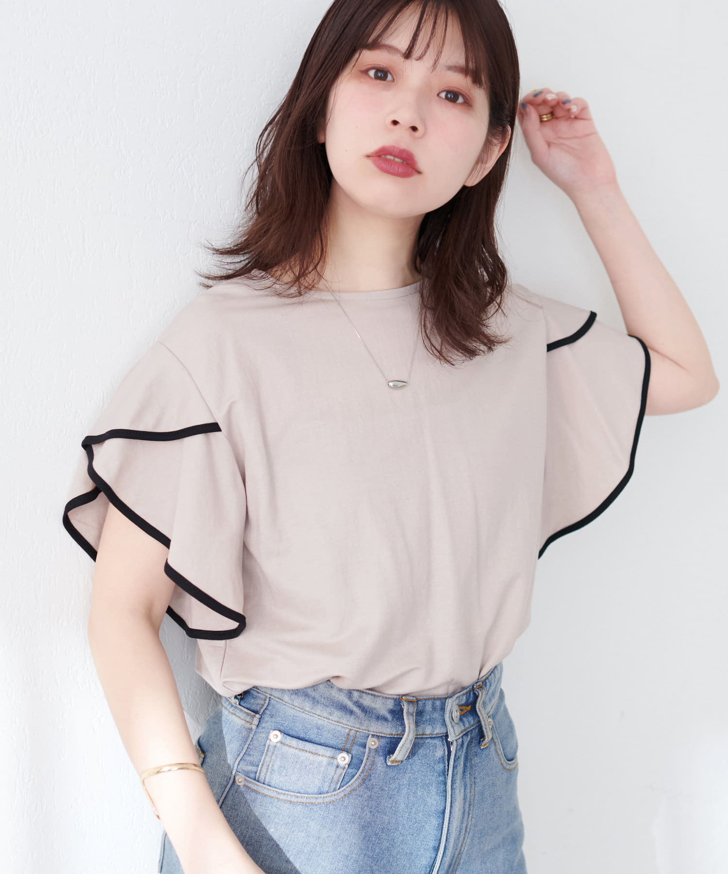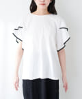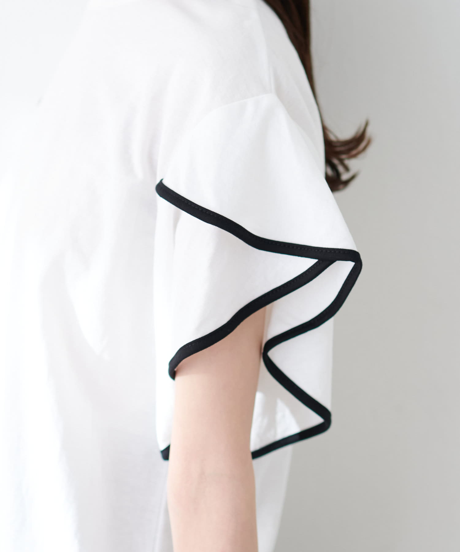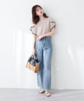 配色でアクセントをつけ、カット素材で大人カジュアルな印象に。
