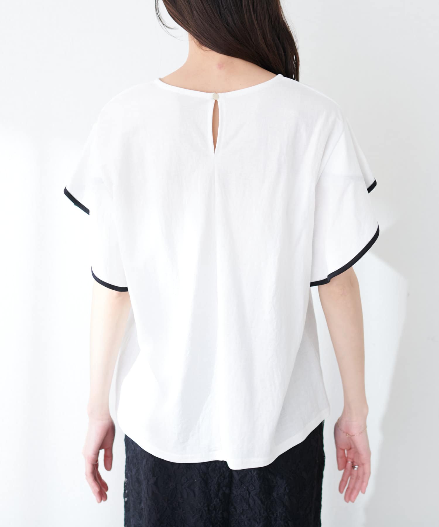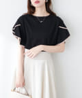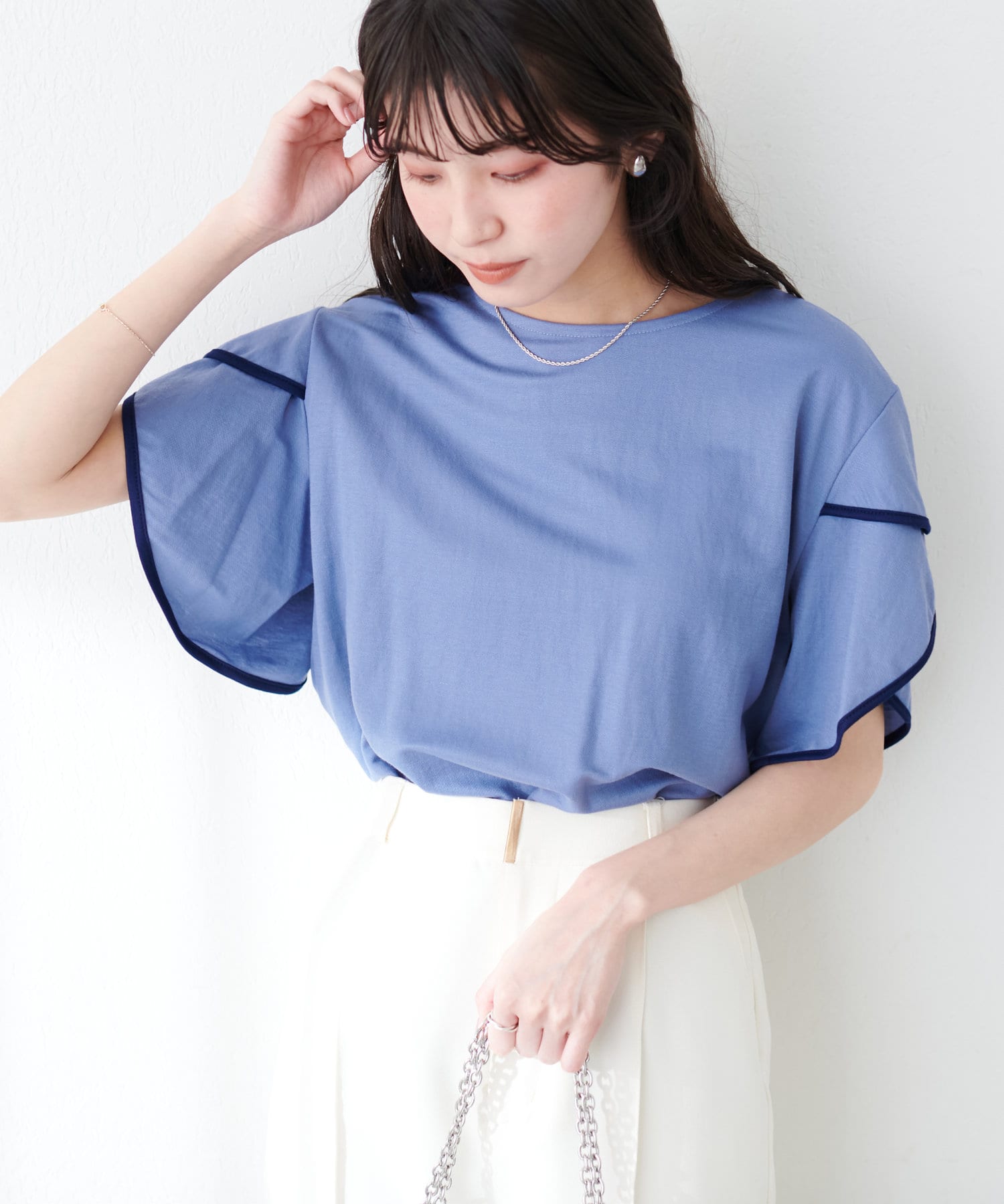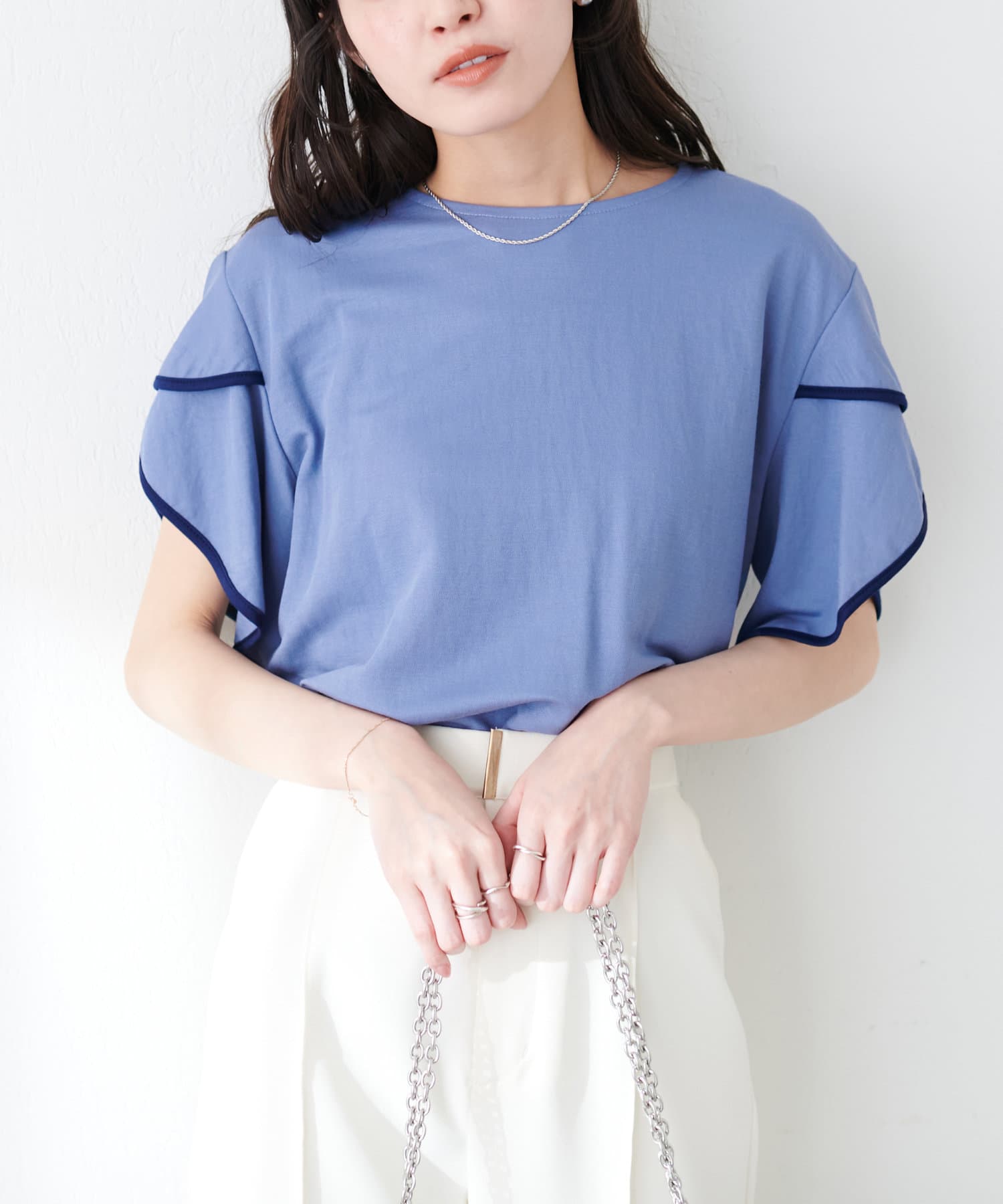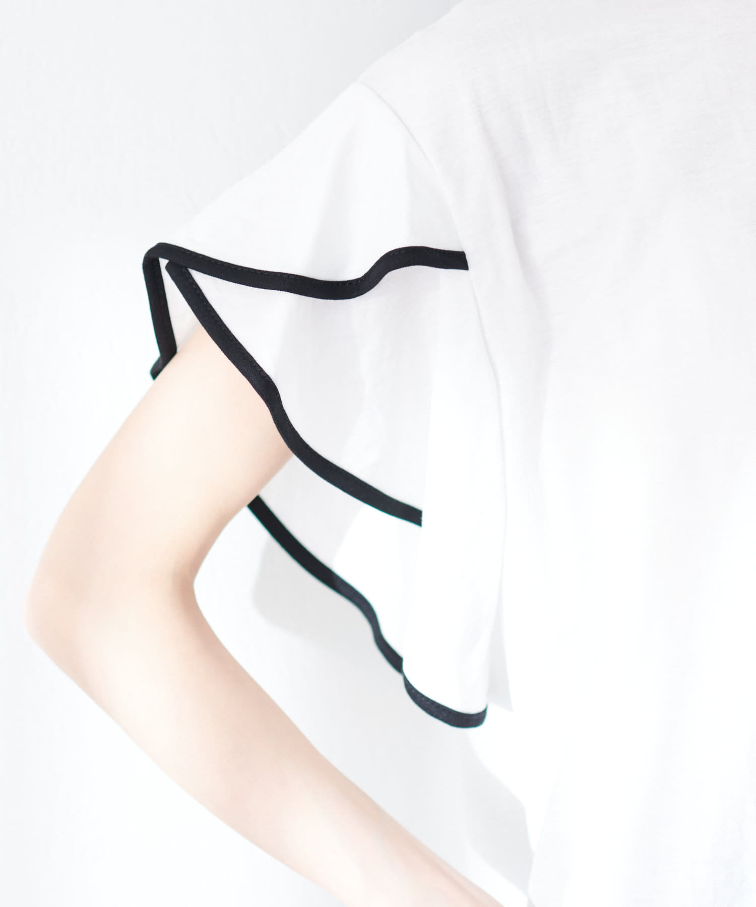配色でアクセントをつけ、カット素材で大人カジュアルな印象に。