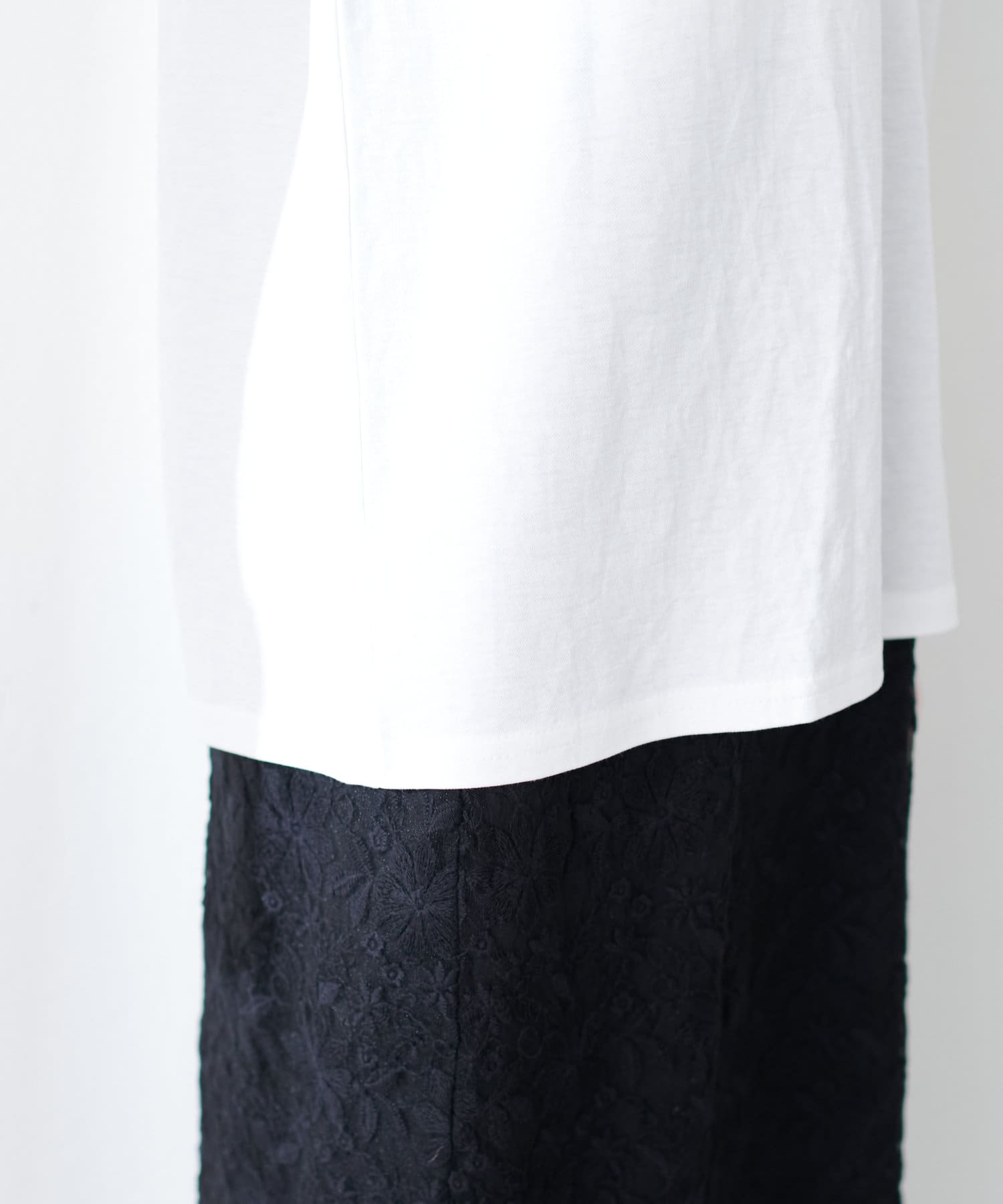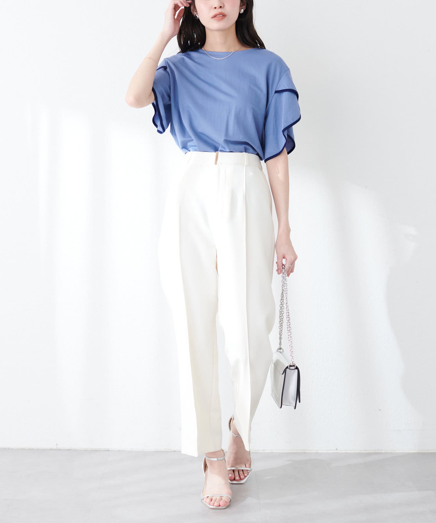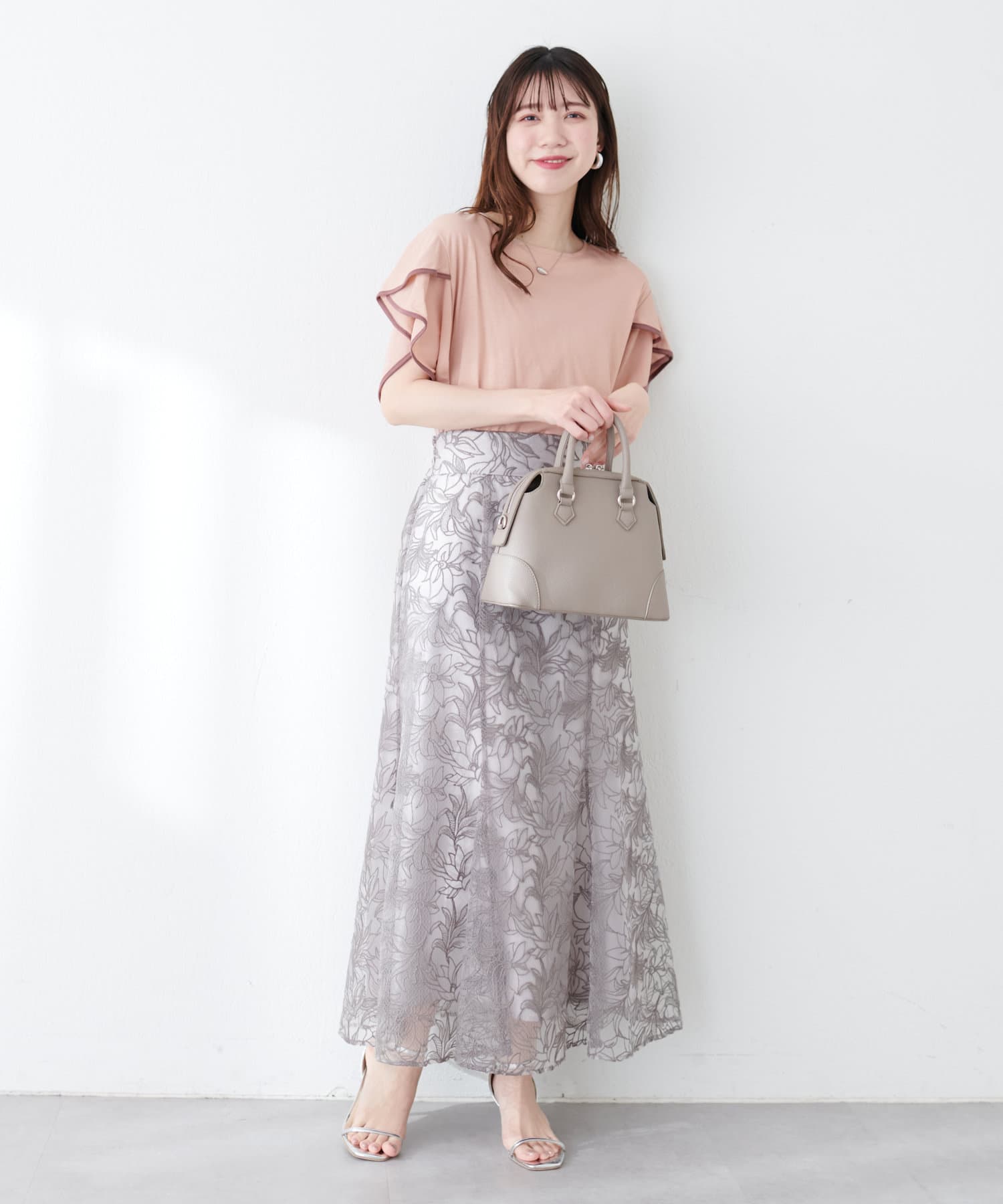 マーメイドシルエットやフレアラインのスカートにウエストインして頂くと、女性らしさが引き立つ上品スタイルに◎