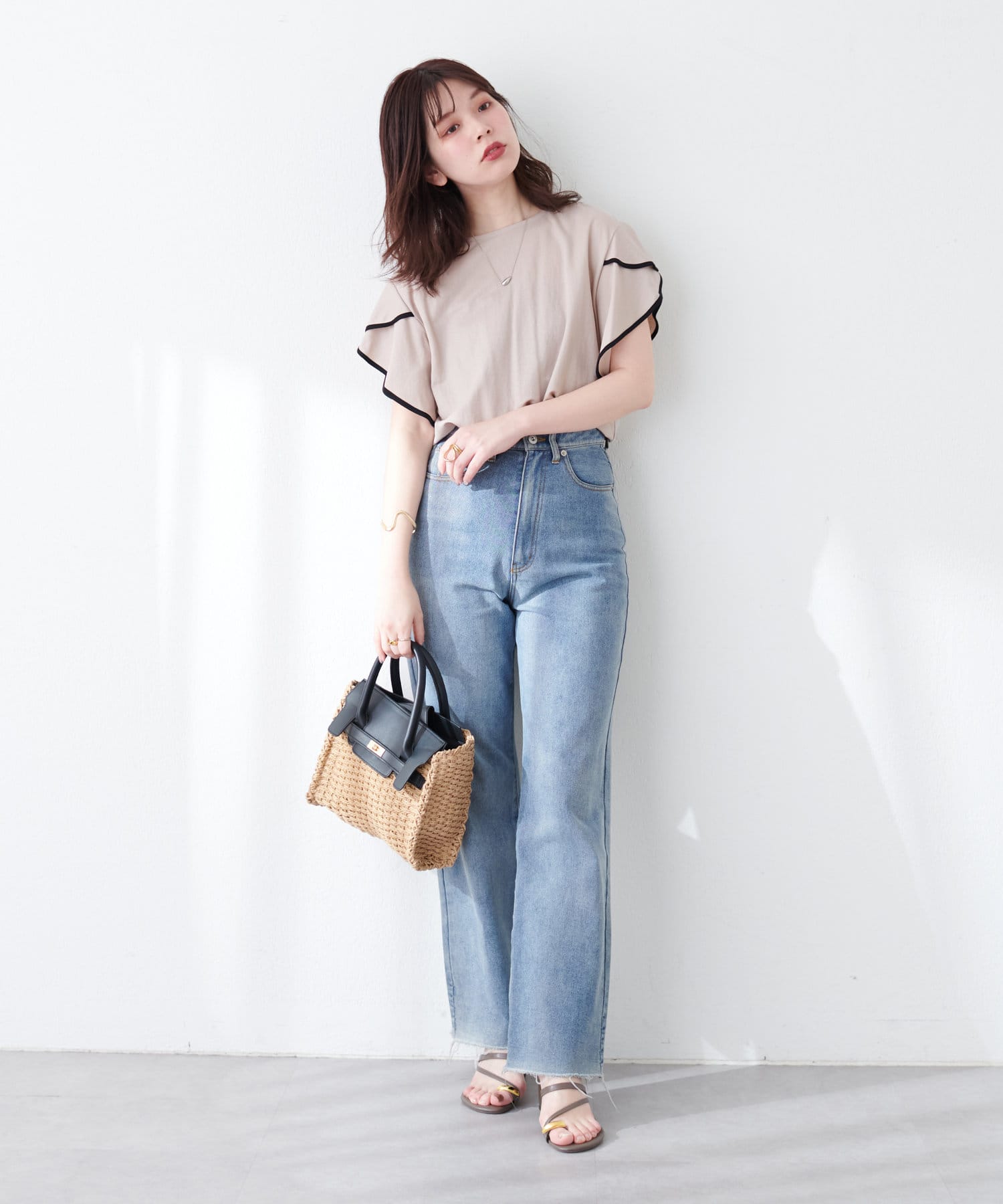 シンプルなデニムにウエストアウトでさっと合わせて、アクセサリーでポイント使いすれば、