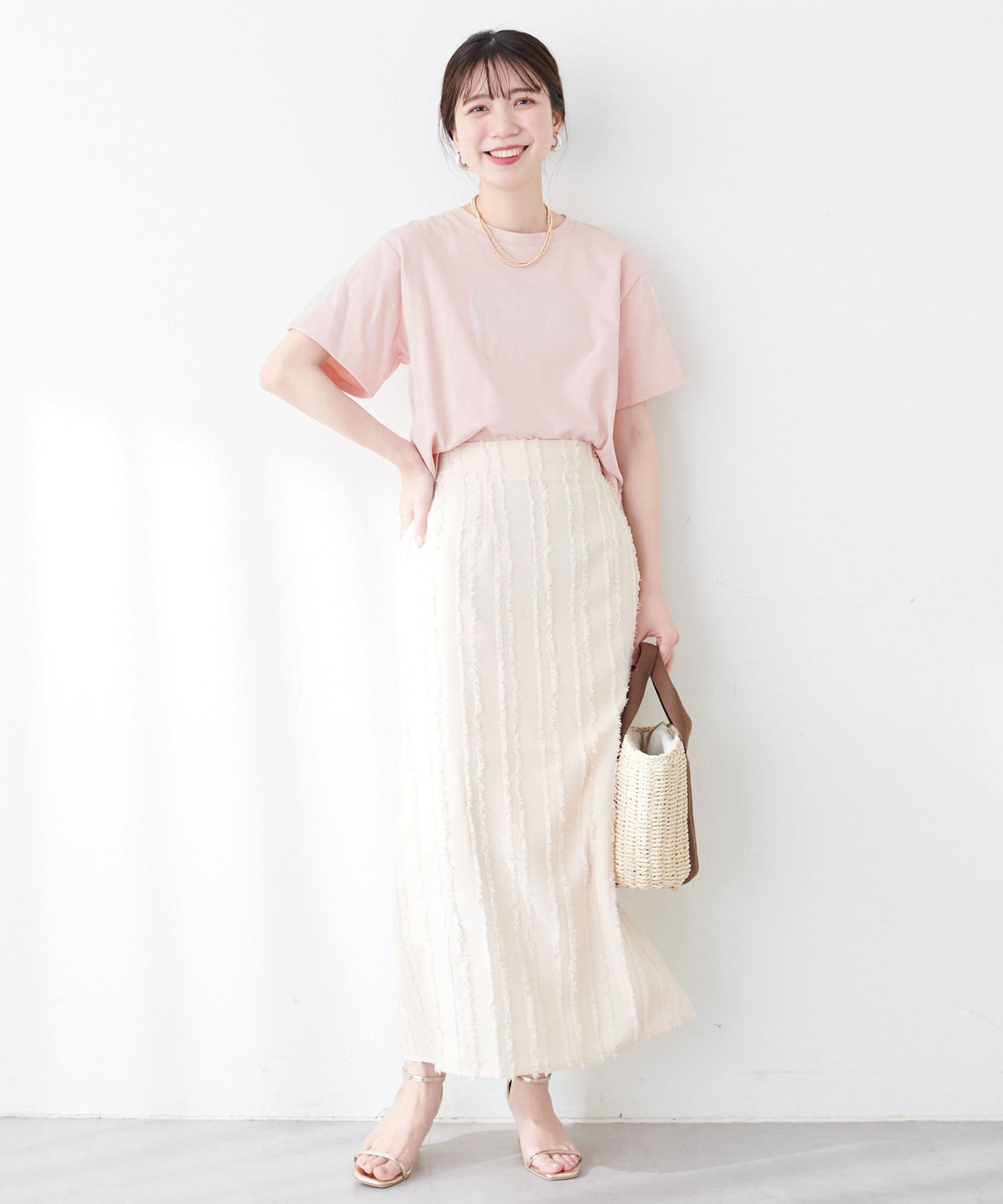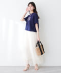 ボリュームのあるスカートと合わせると、大人カジュアルなトレンドコーデが完成します。