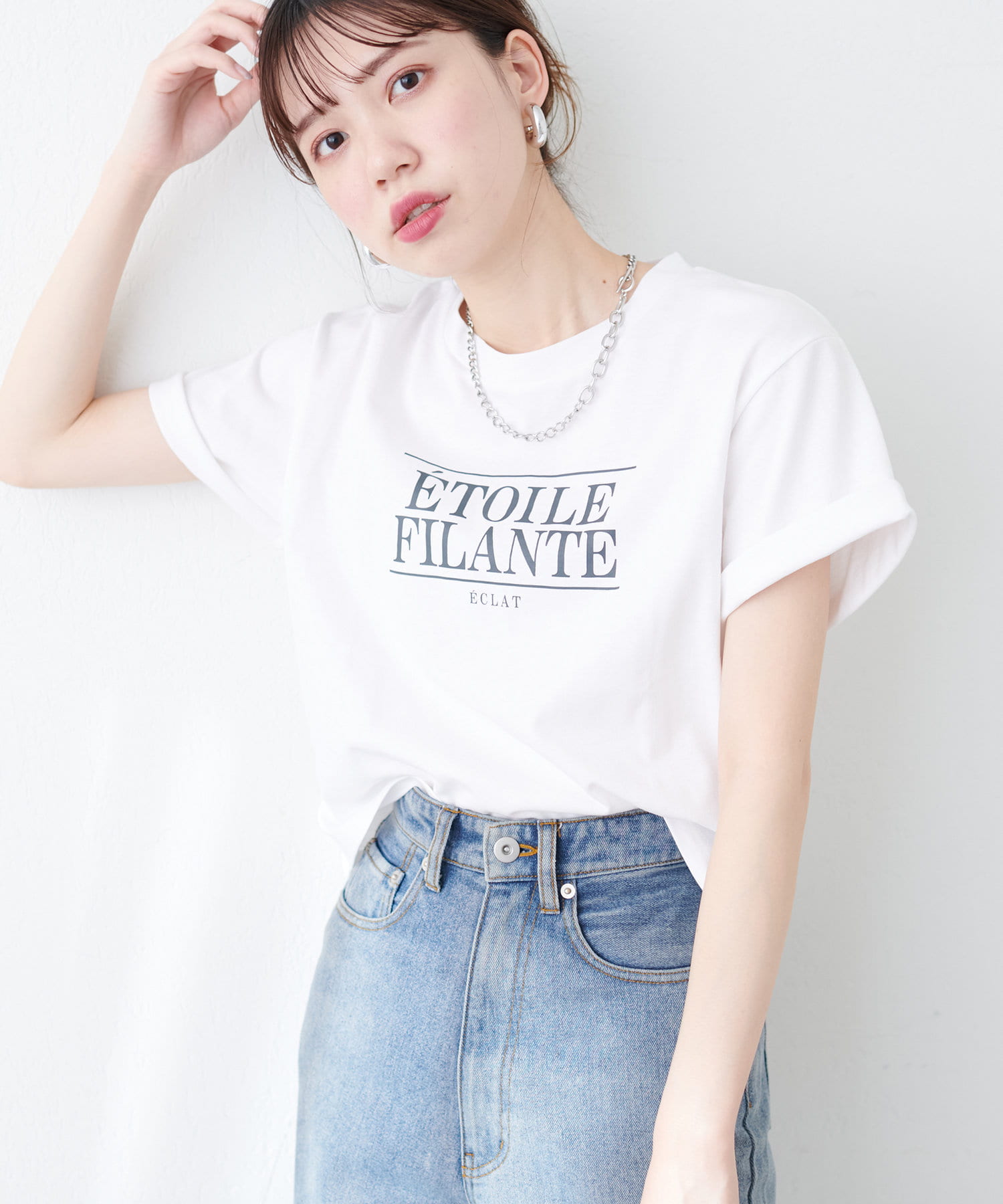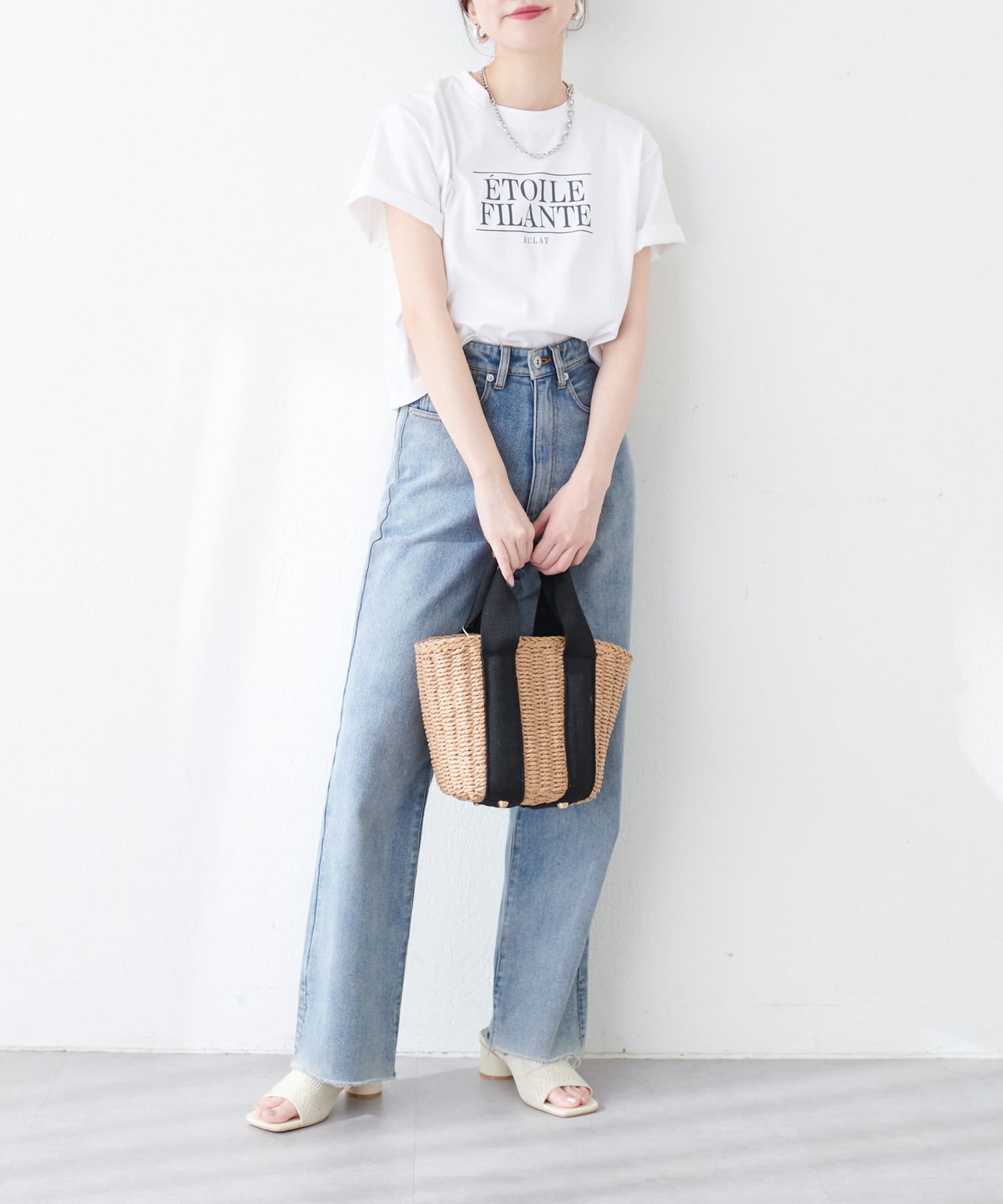 デニムなどのシンプルなボトムスでもプリントがアクセントに。