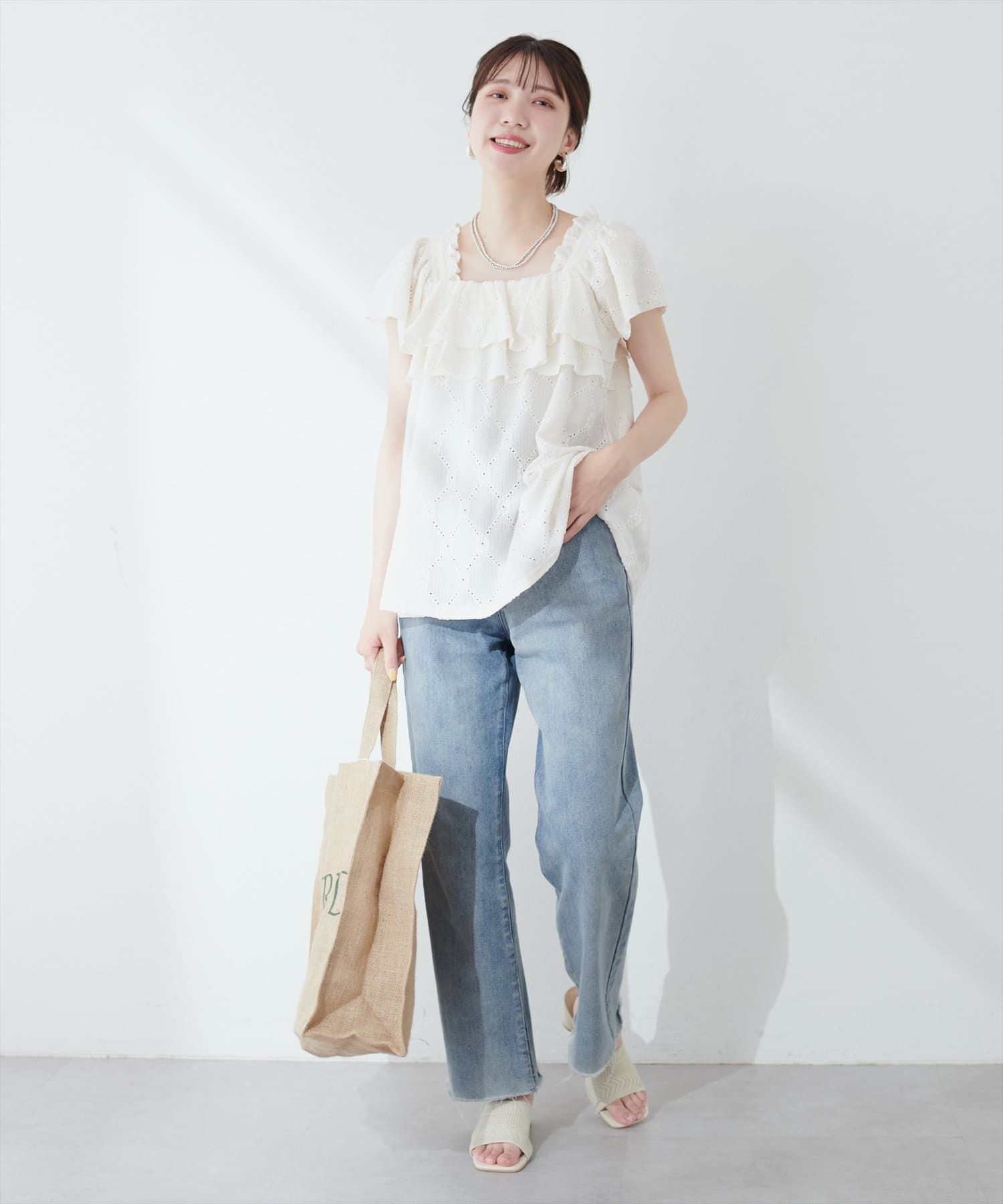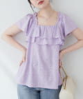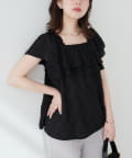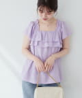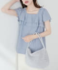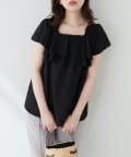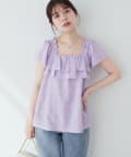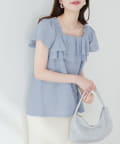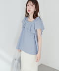 華やかなフリルがコーディネートのポイントになるトップス。