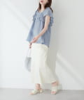 マーメイドシルエットやフレアラインのスカートにウエストインして頂くと、女性らしさが引き立つ上品スタイルに◎