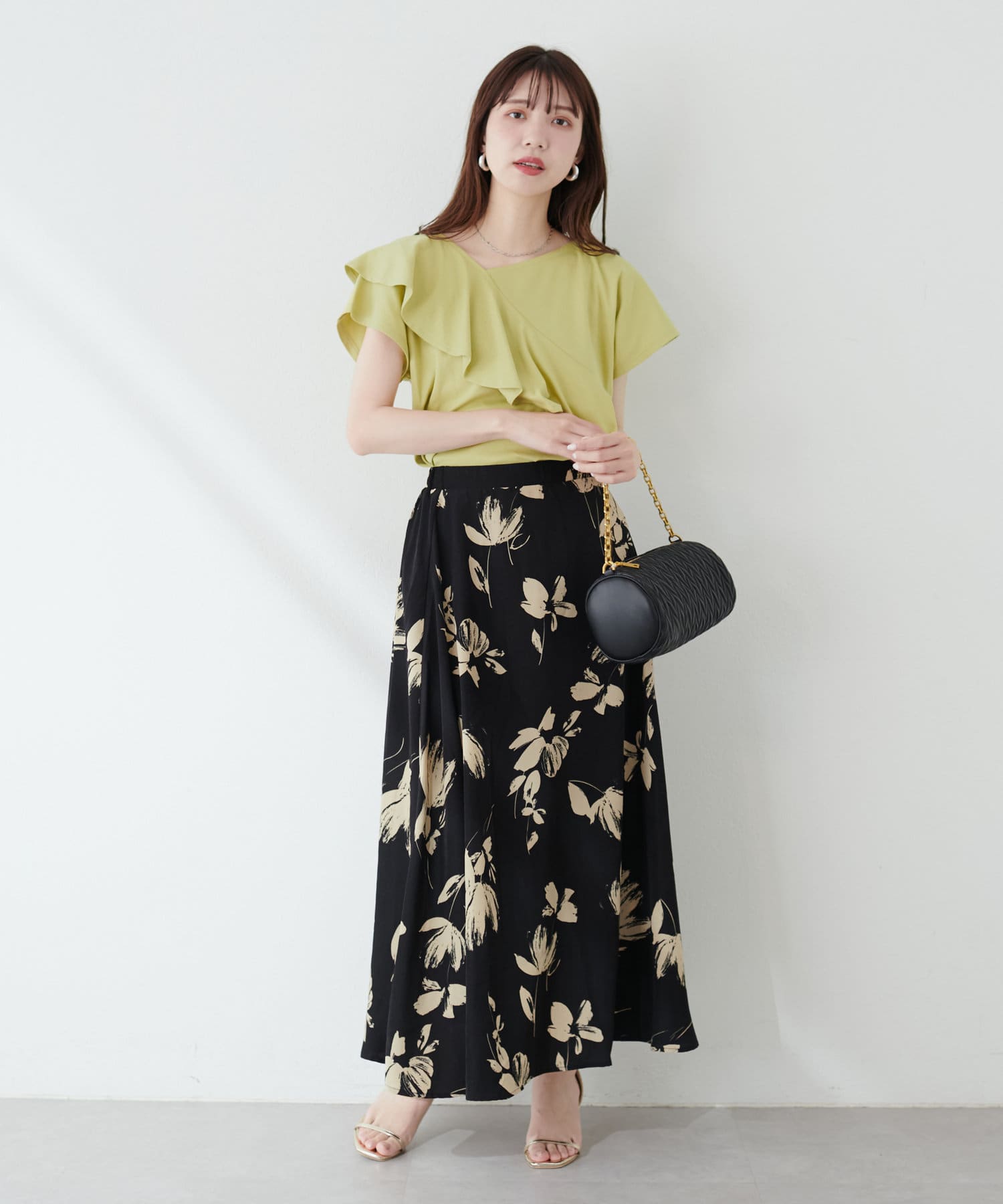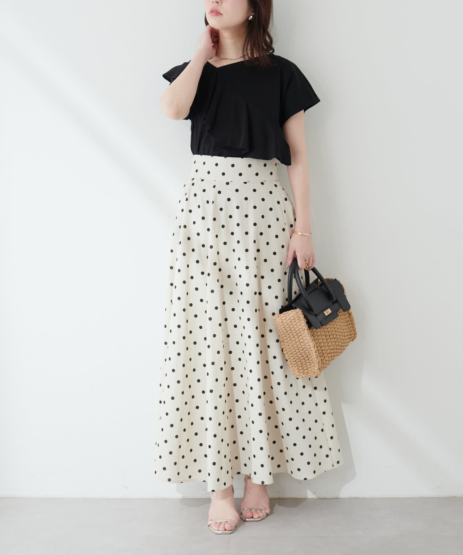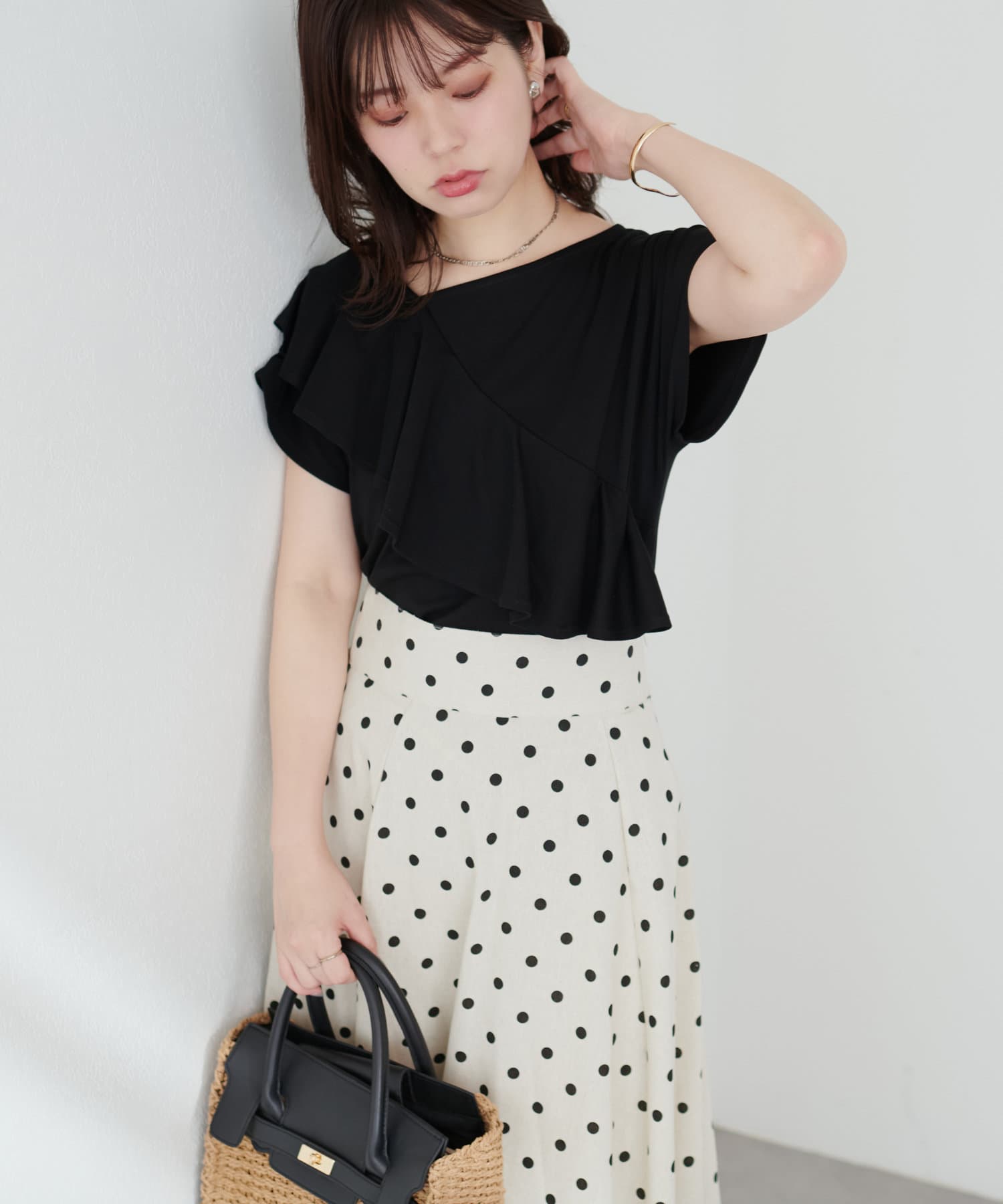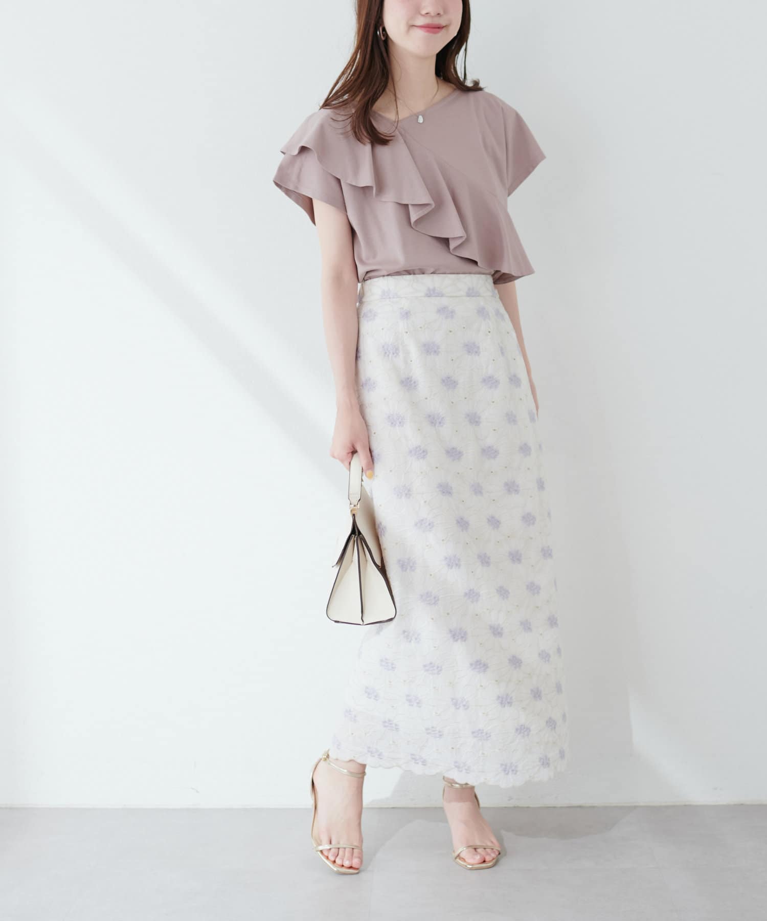 シンプルになりがちな夏のTシャツコーデをフェミニンにアップデートしてくれる1着です。