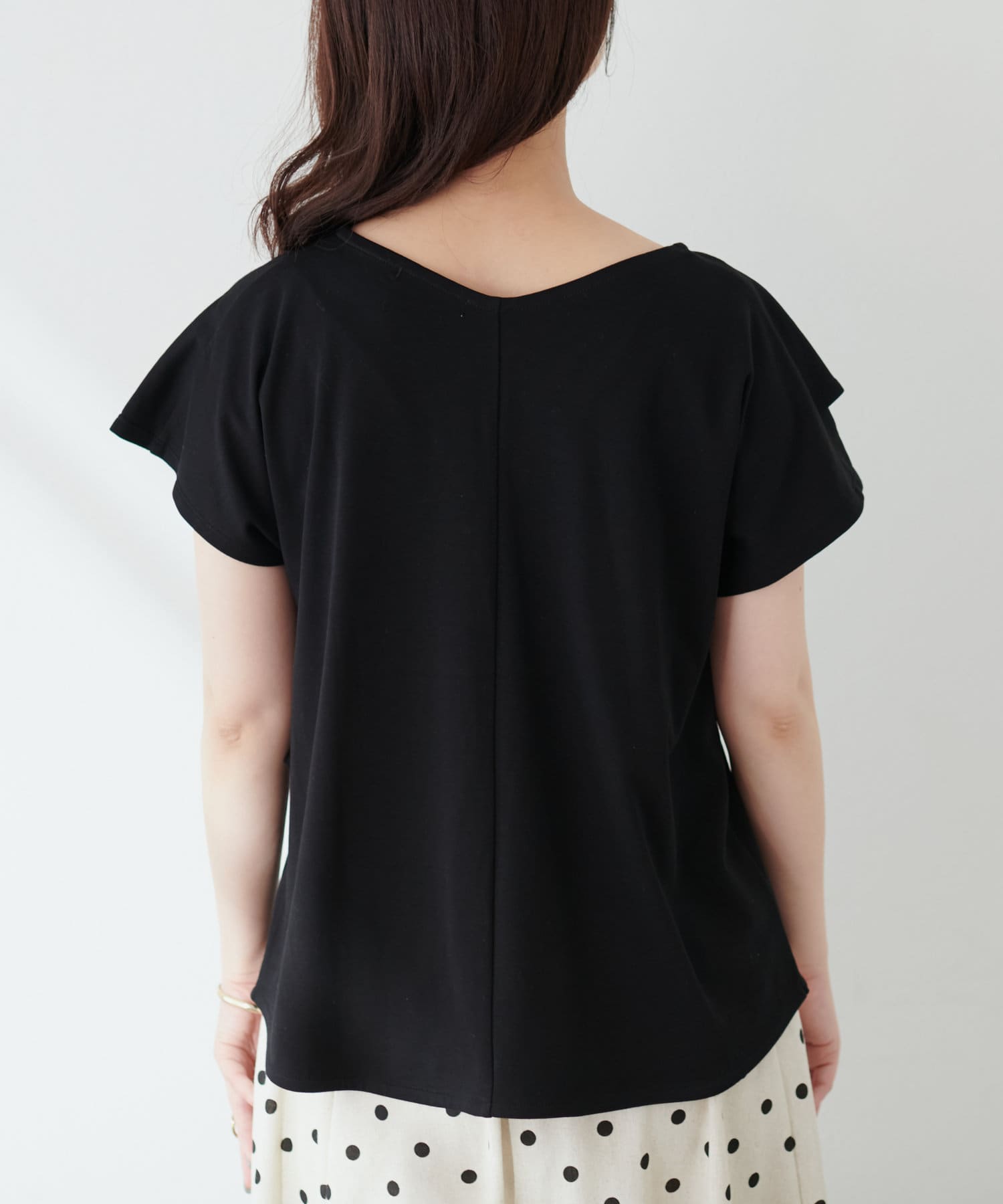 やや広めのフレンチスリーブで二の腕をさり気なくカバーし、華奢見え効果も抜群◎