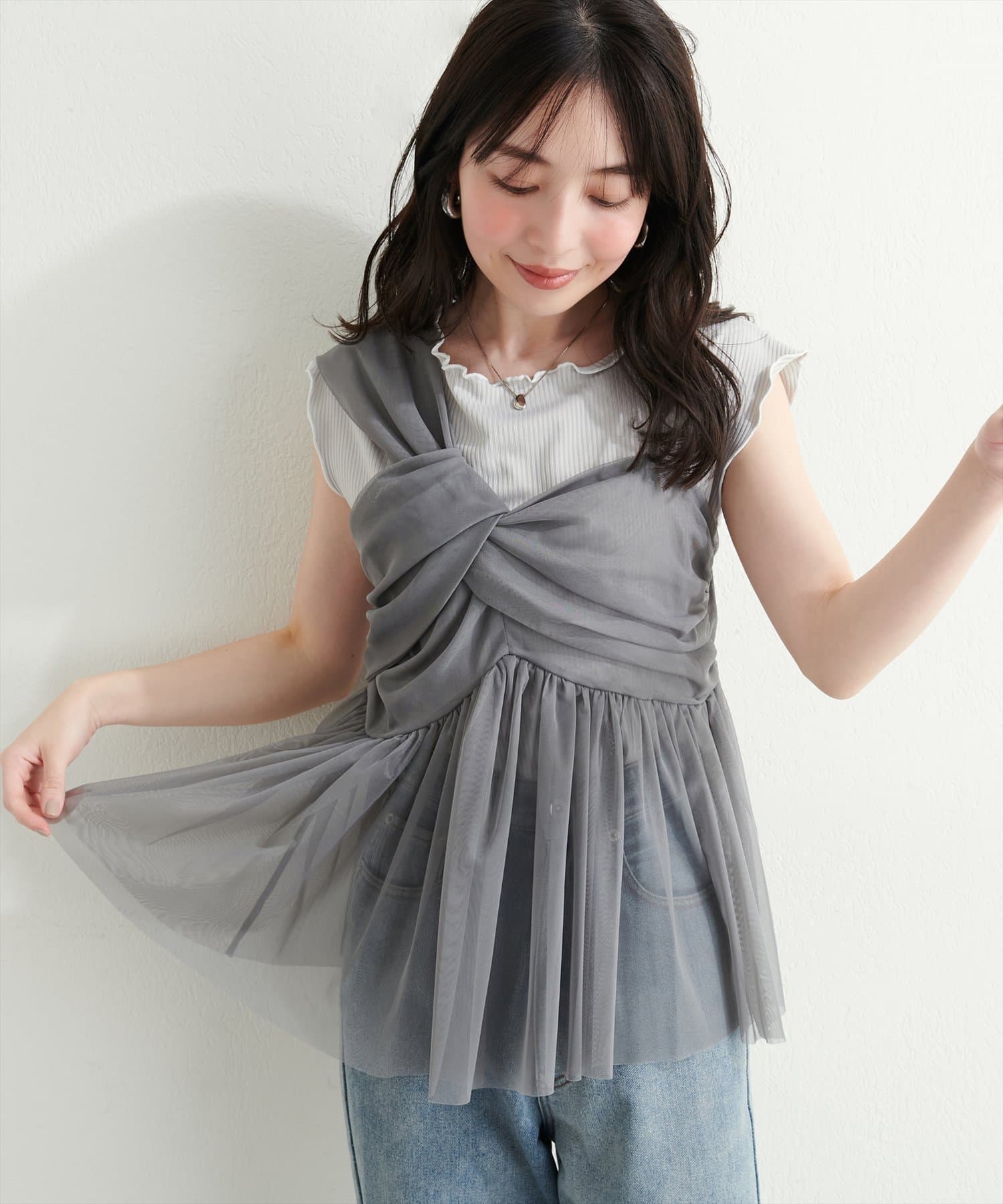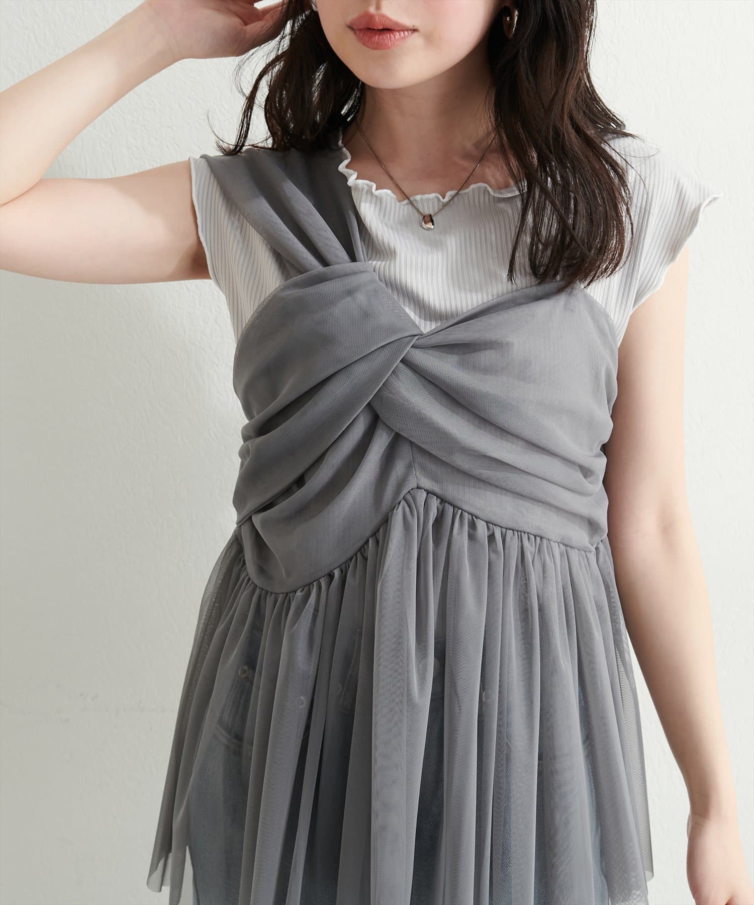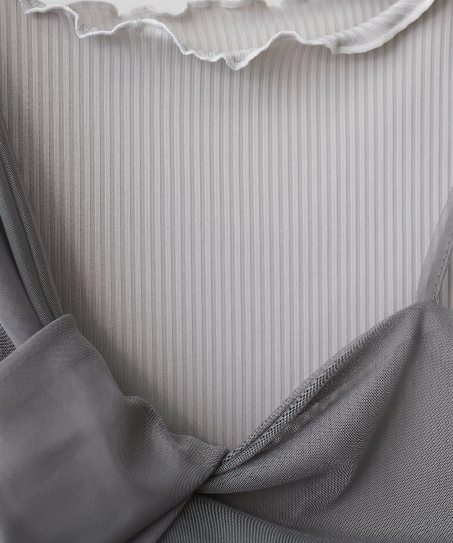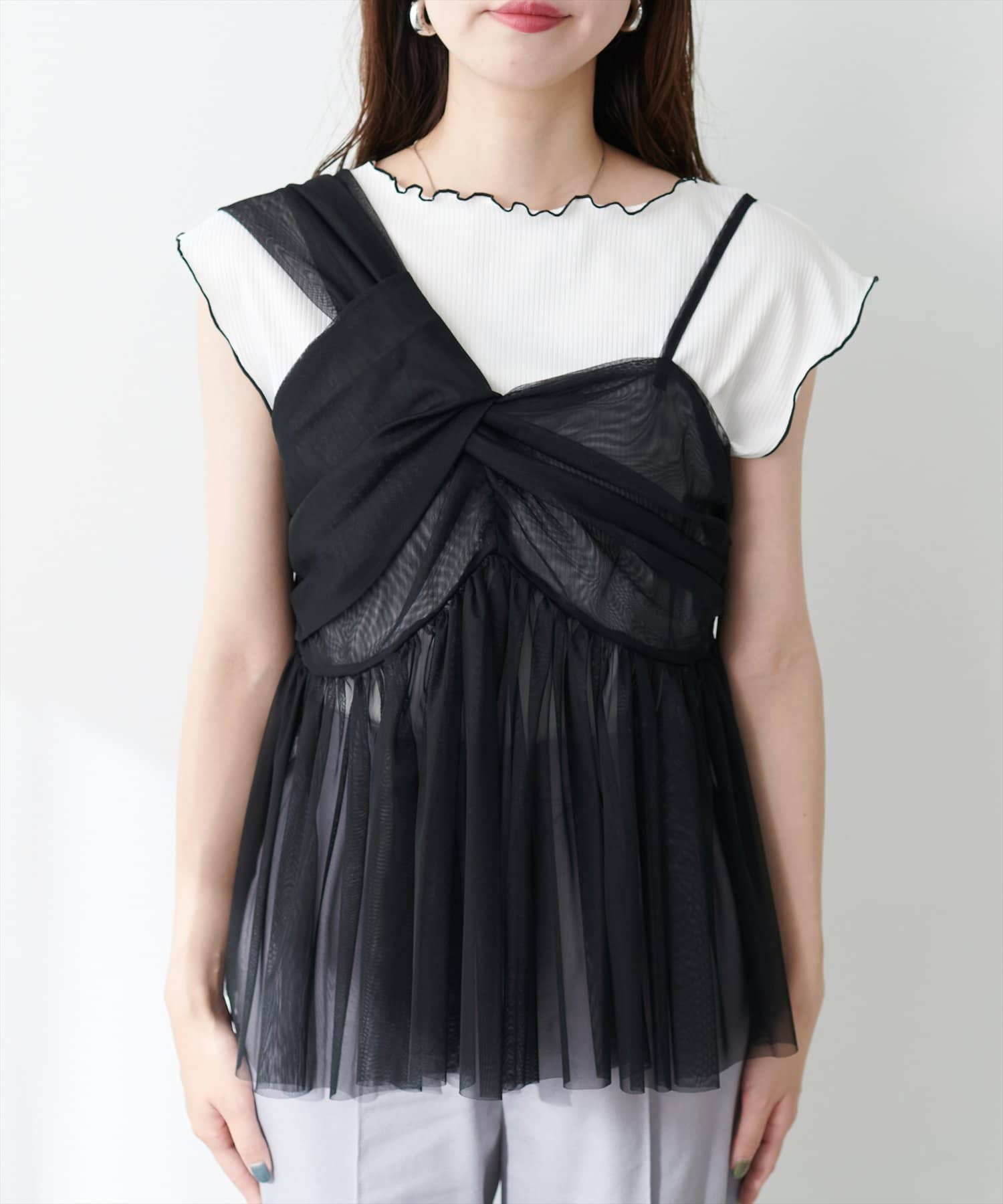 トレンド感たっぷりのチュールキャミとメロートップスがセットになったアイテム。