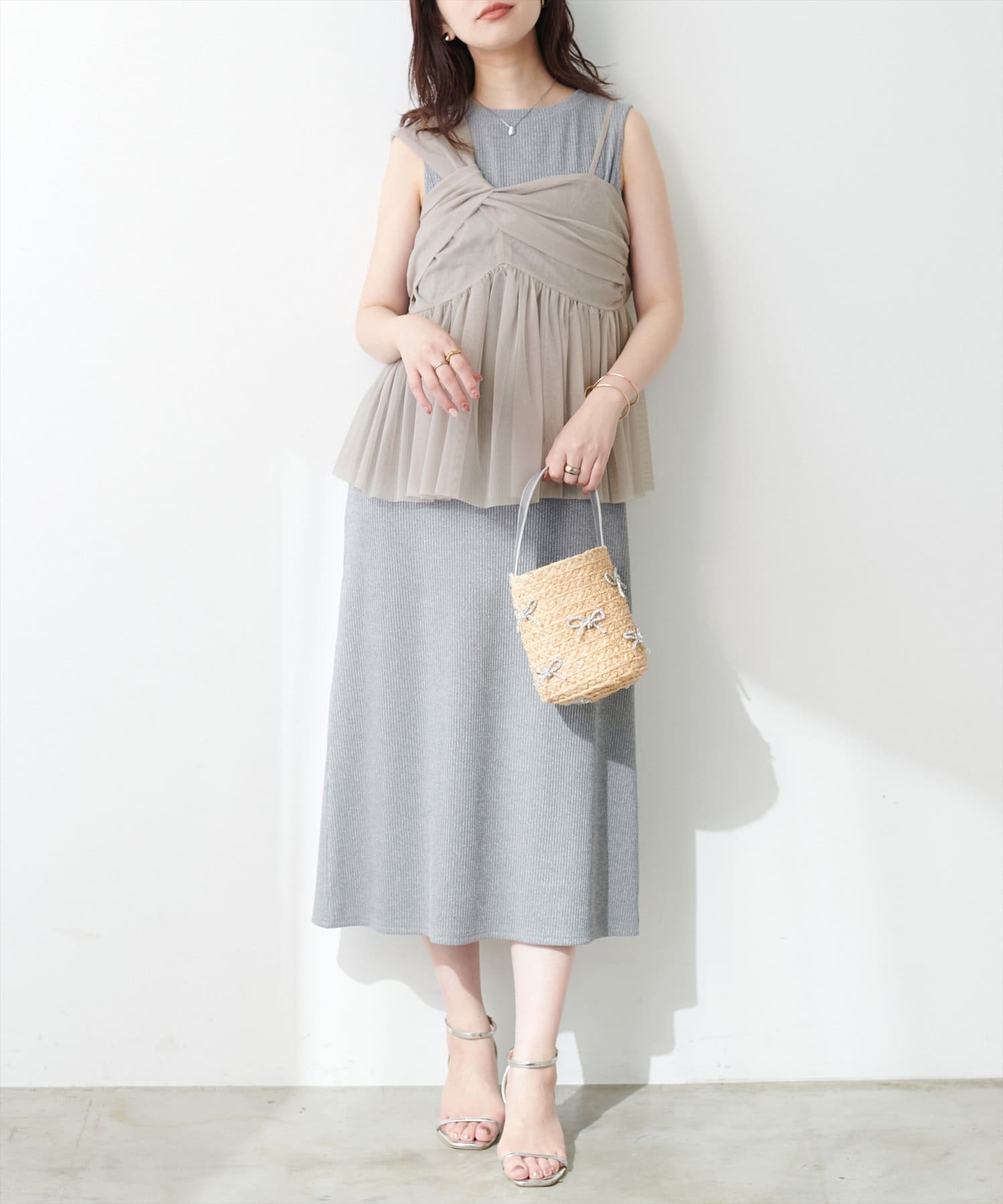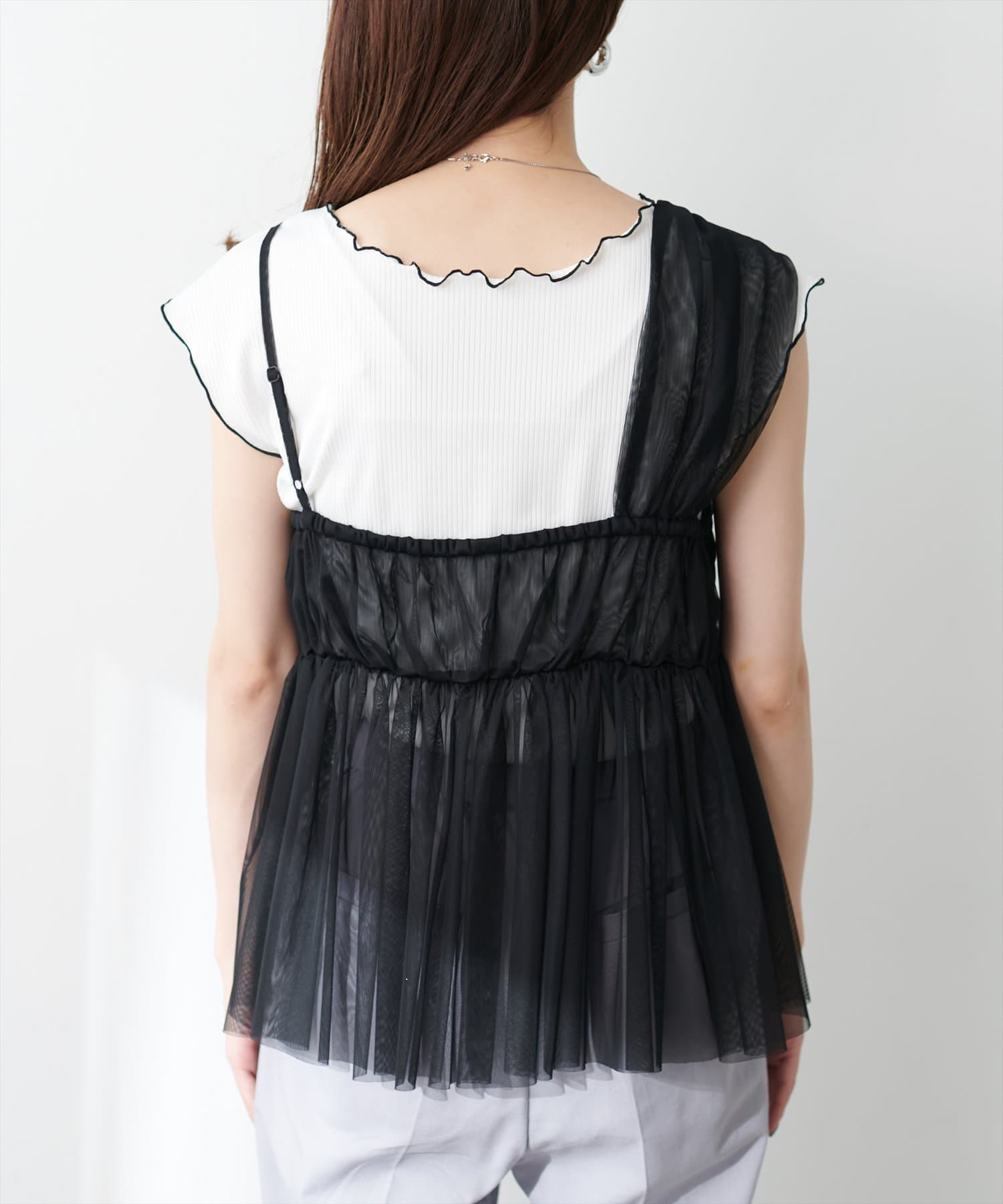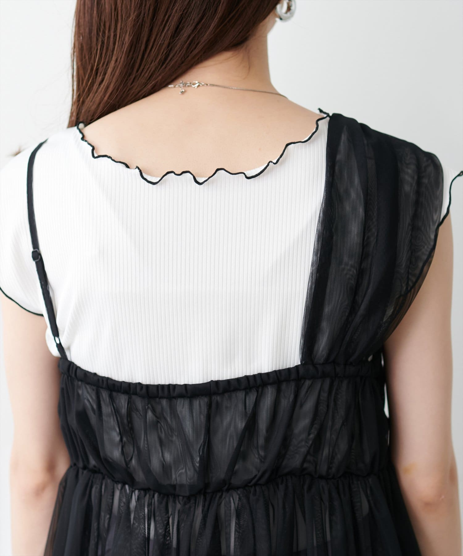 チュールキャミはお手持ちのブラウスやTシャツ、ワンピースなどと合わせても◎
