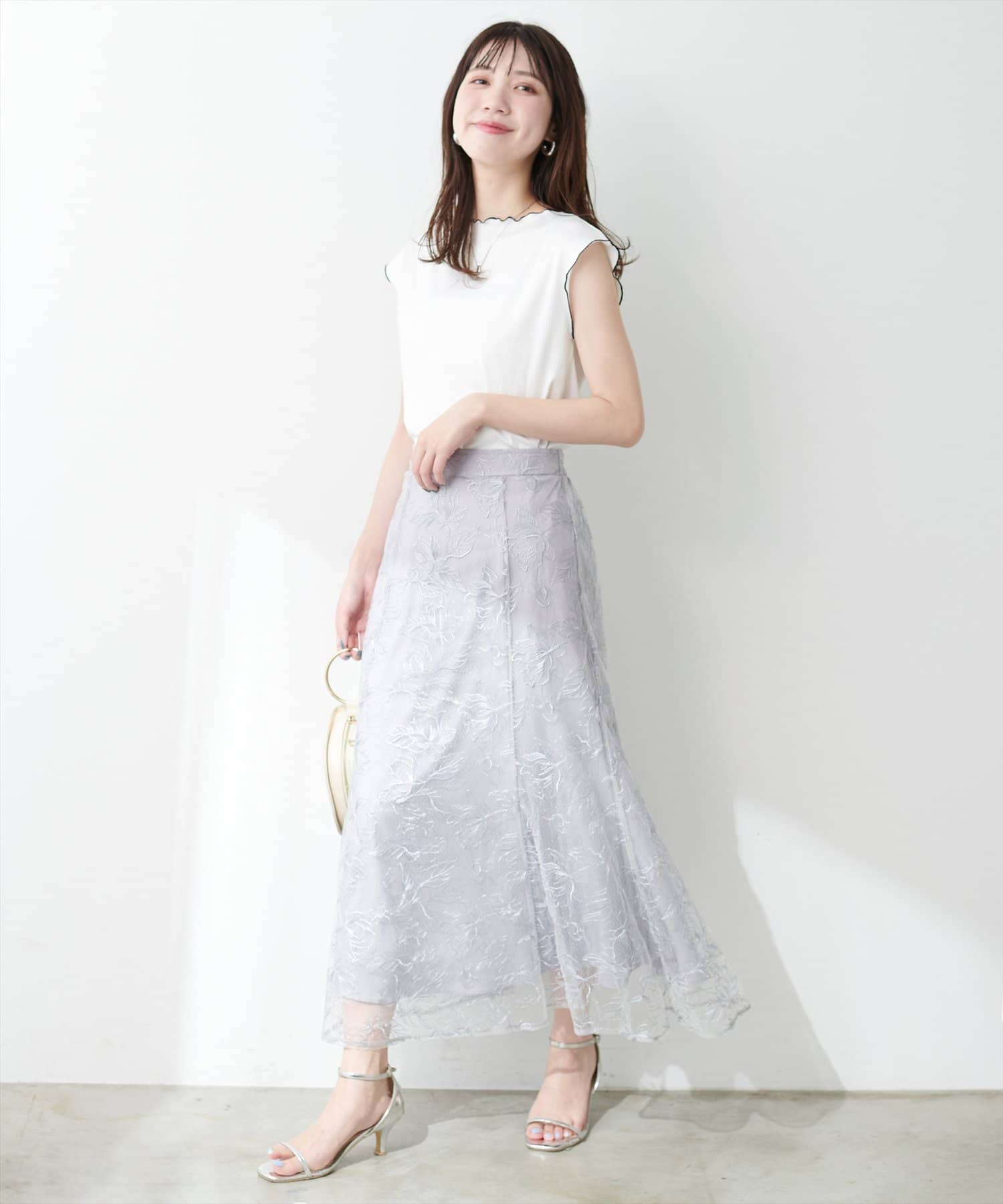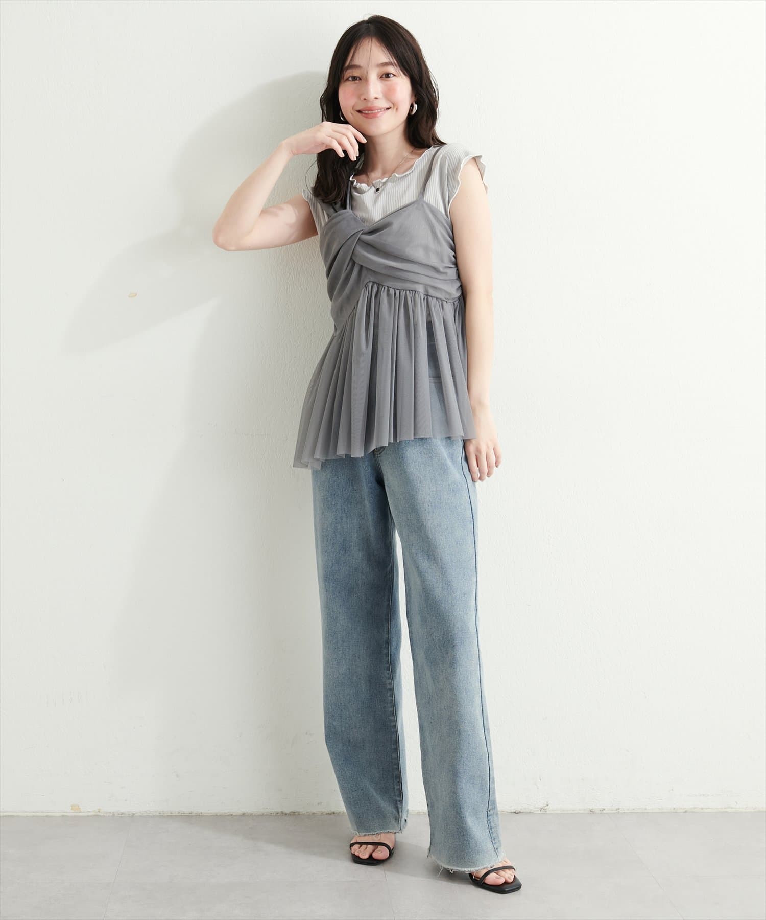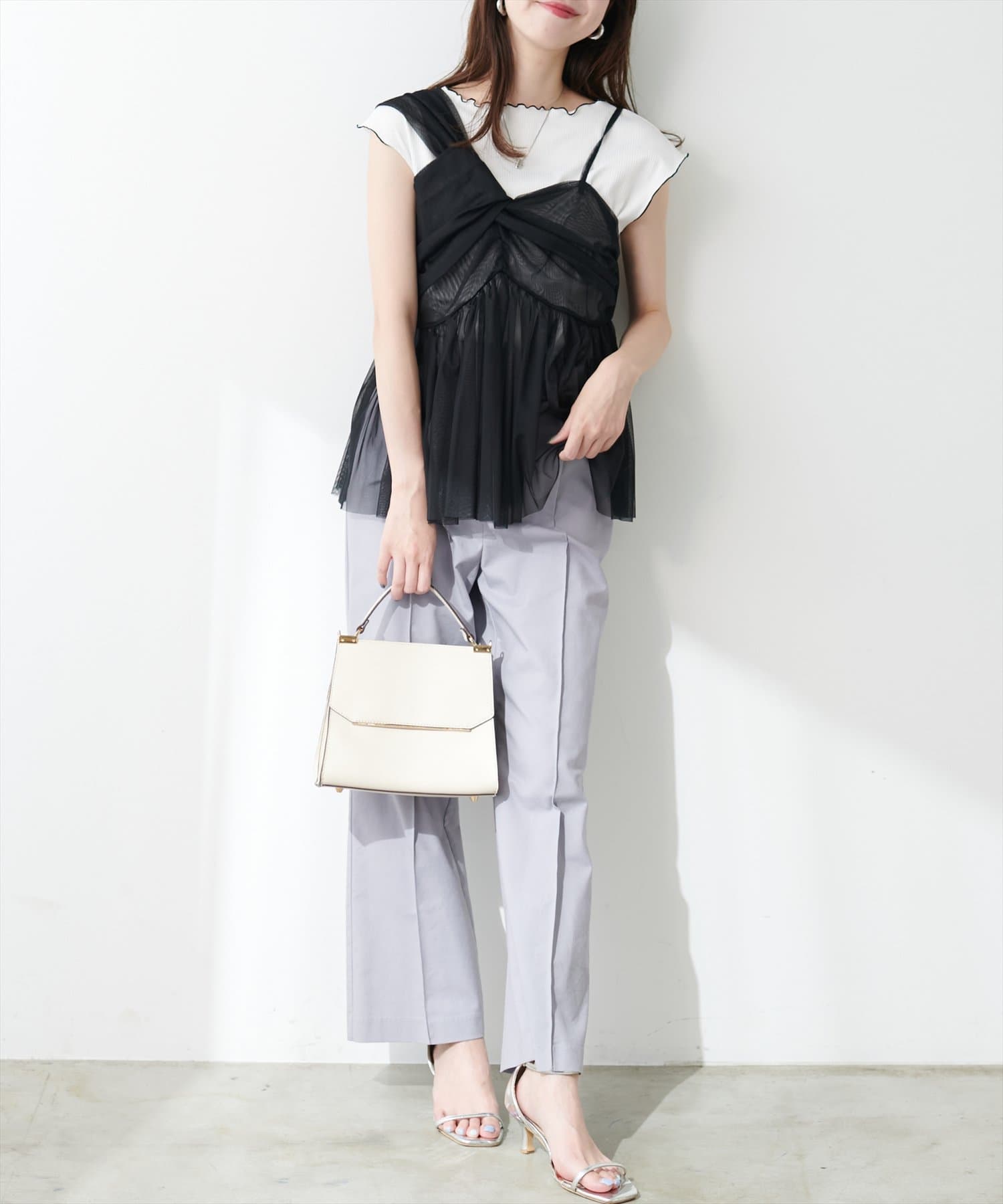 チュールキャミはお手持ちのブラウスやTシャツ、ワンピースなどと合わせても◎