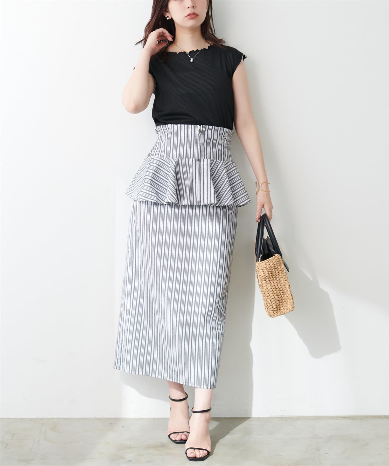 Iラインスカートやナロースカート、ストレートパンツやデニムなどと相性抜群。