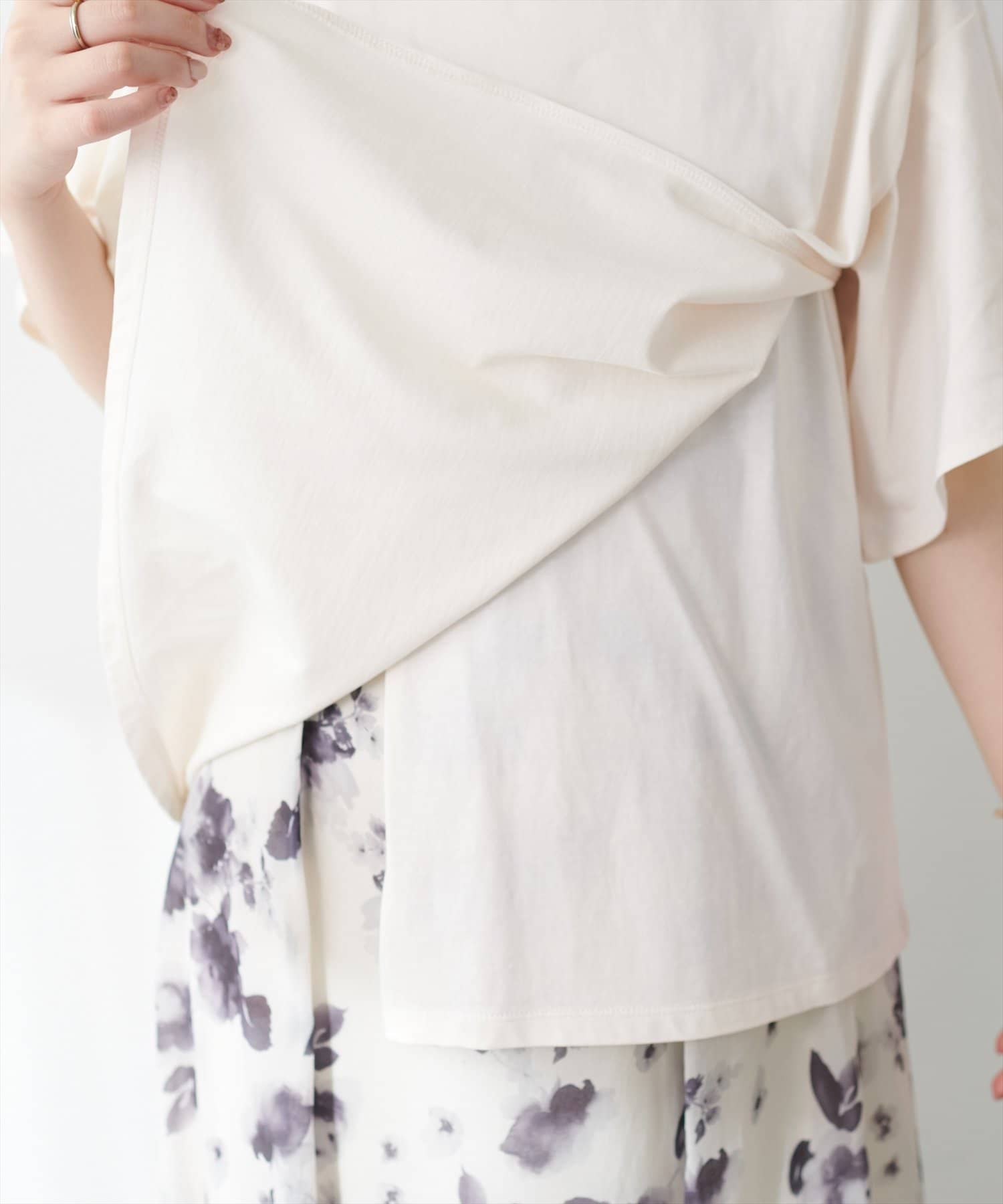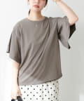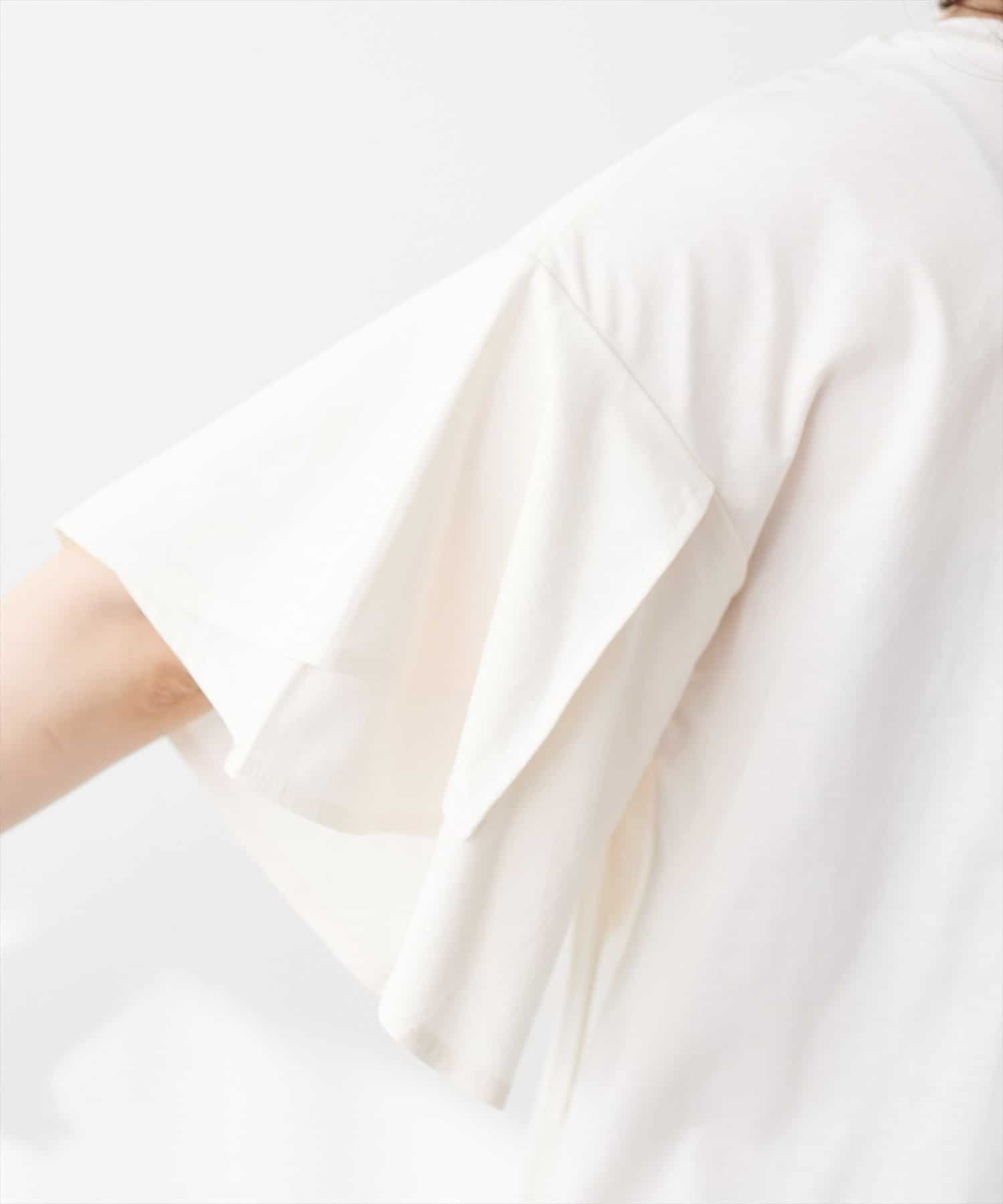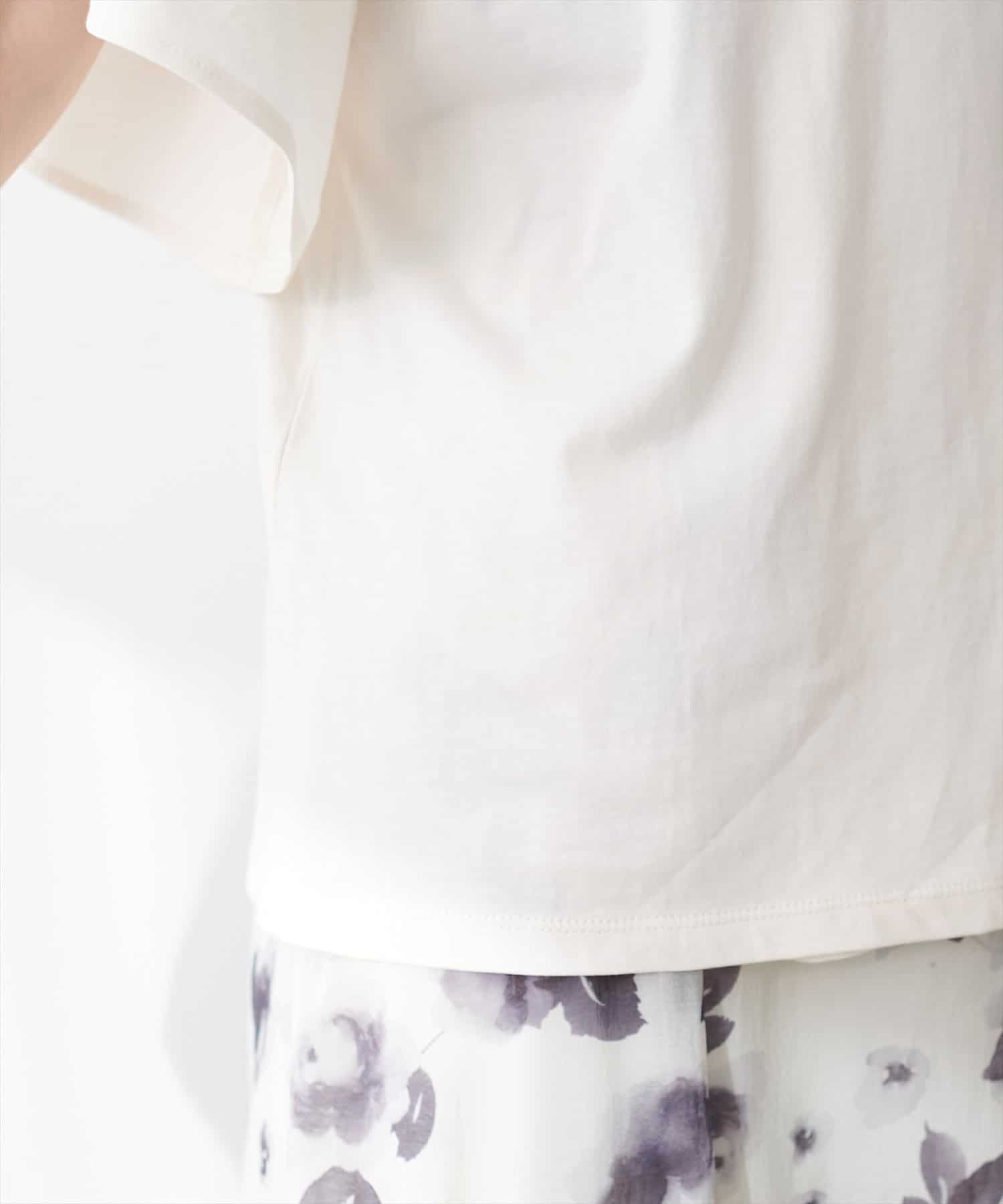 シンプルなカットソーにデザイン性をプラスしてフェミニンに仕上げた1着。