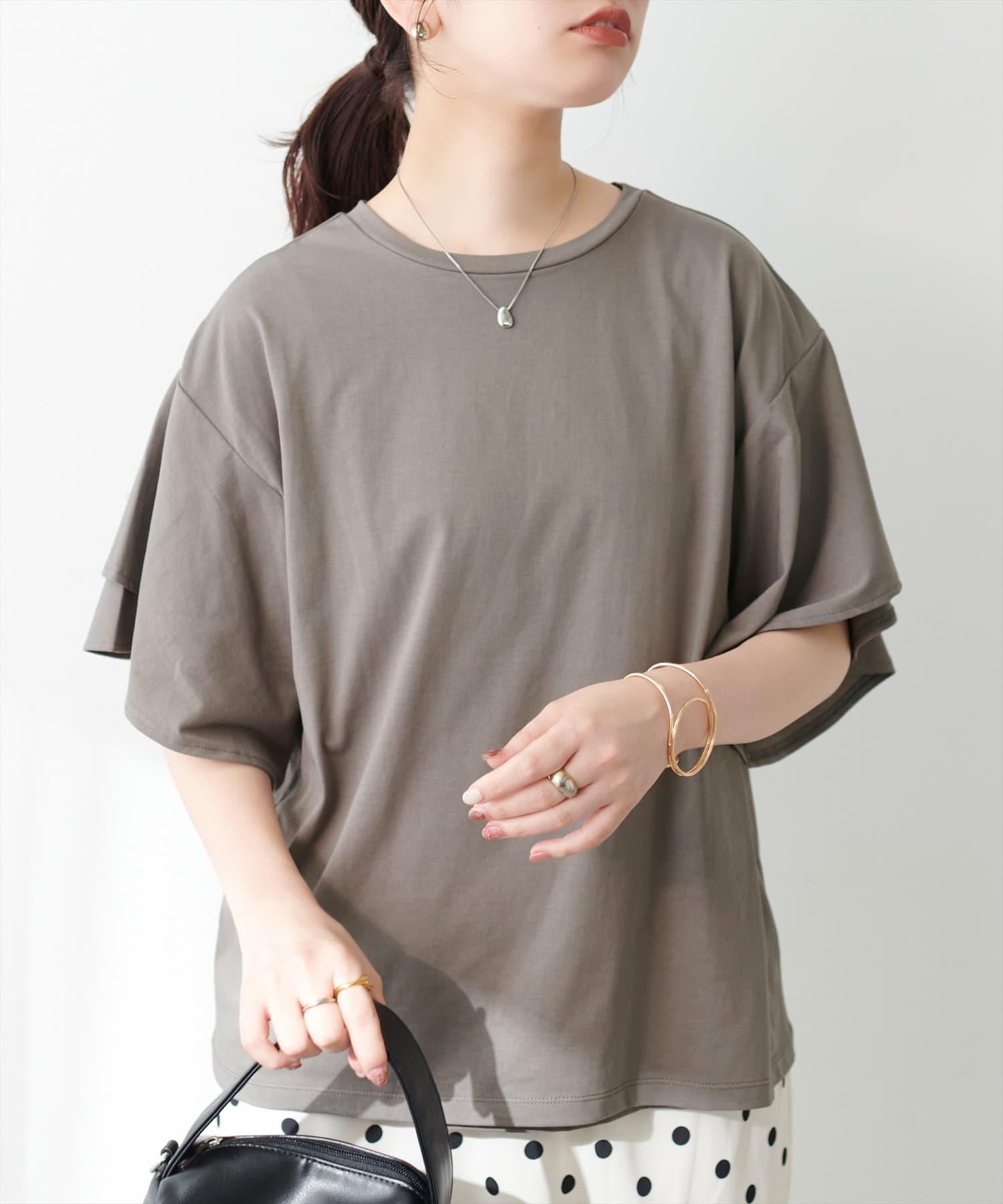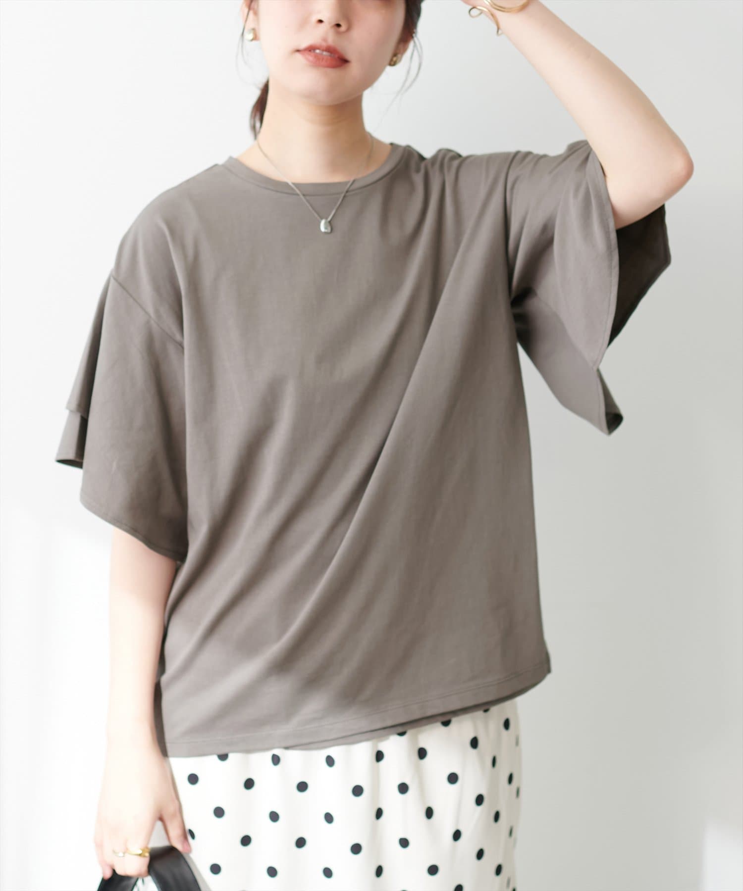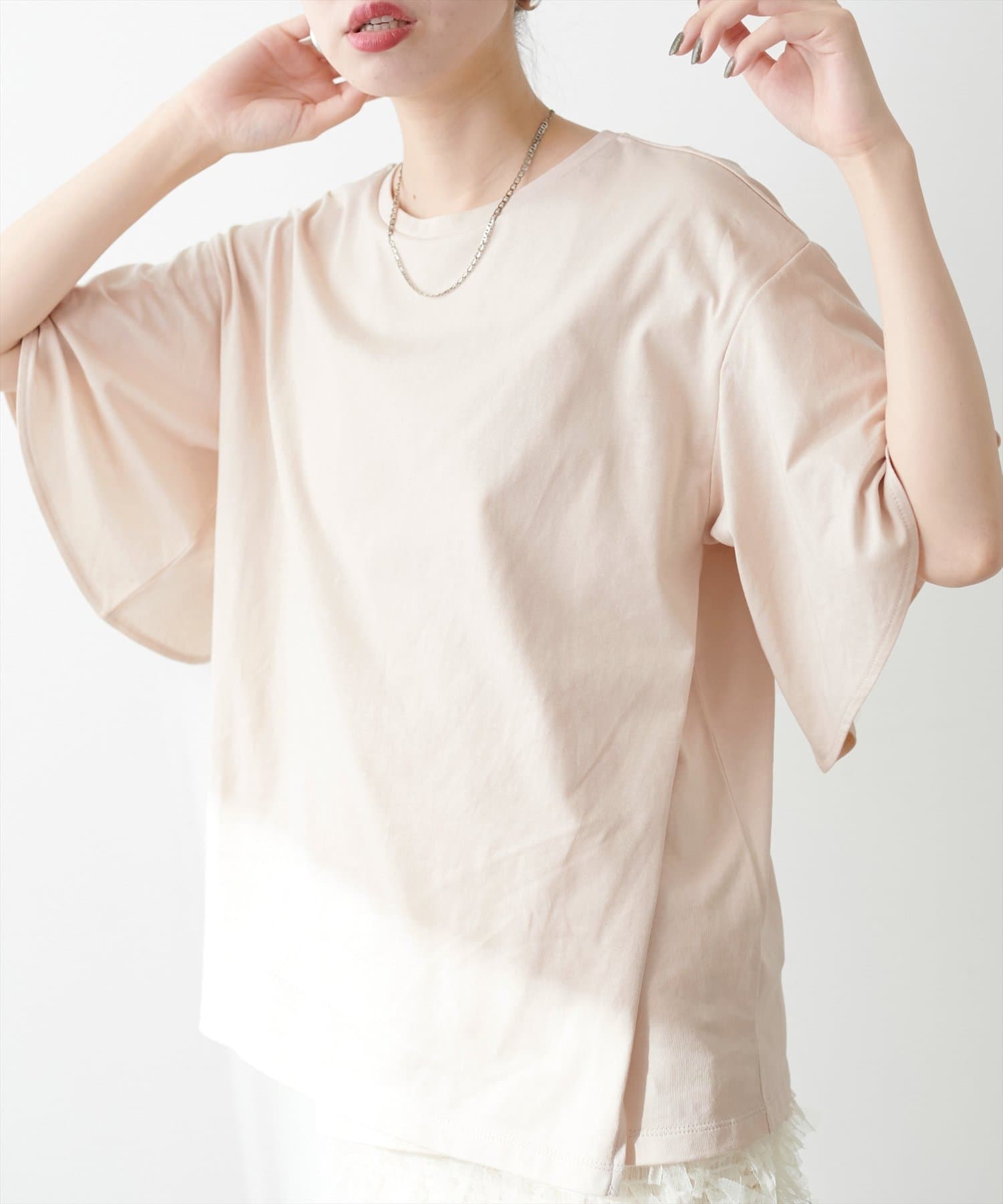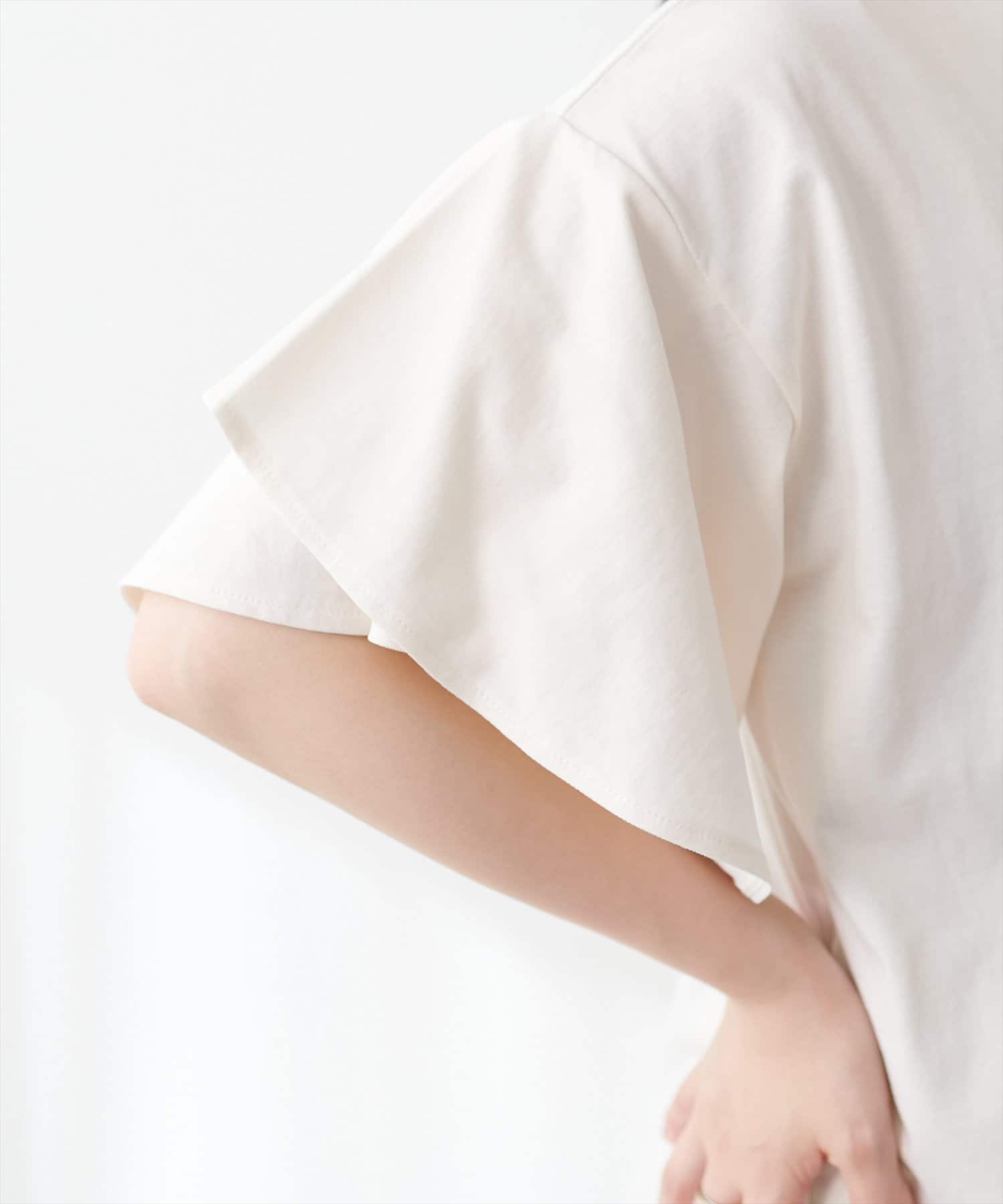 腰回りもカバーできるゆったりシルエットながら、フレア袖デザインで女性らしさをプラス。